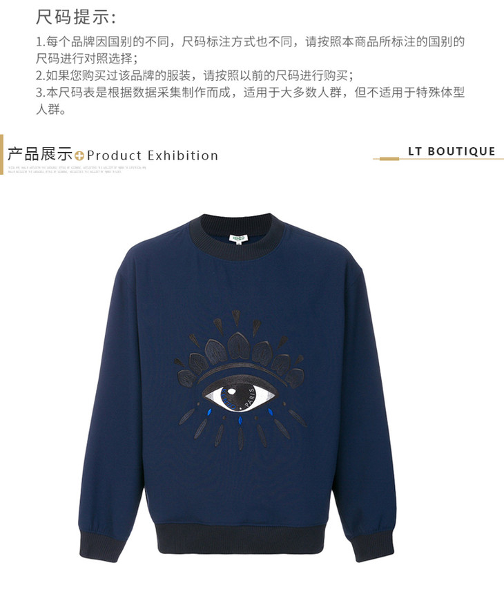 KENZO 高田贤三 男士藏蓝色眼睛套头衫卫衣 F855 SW604 1RN 76