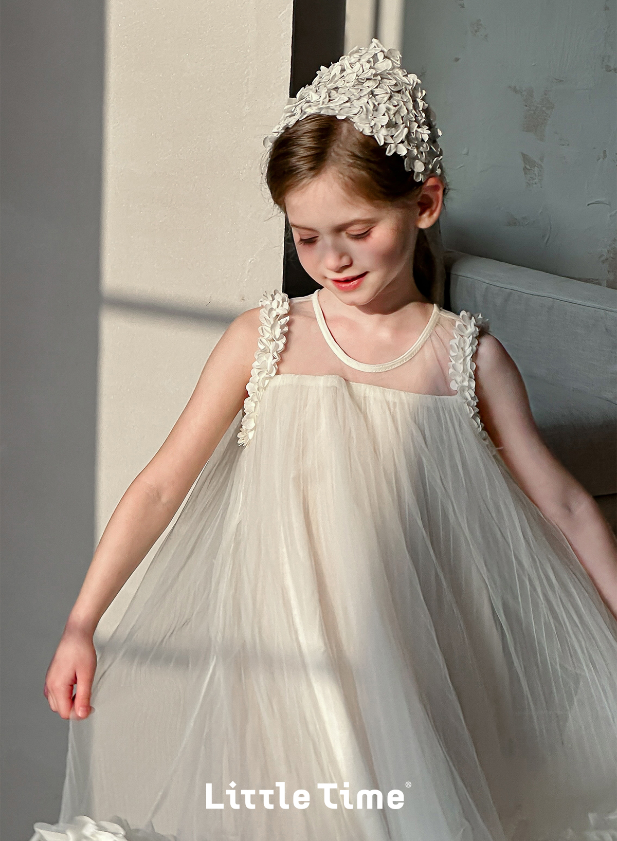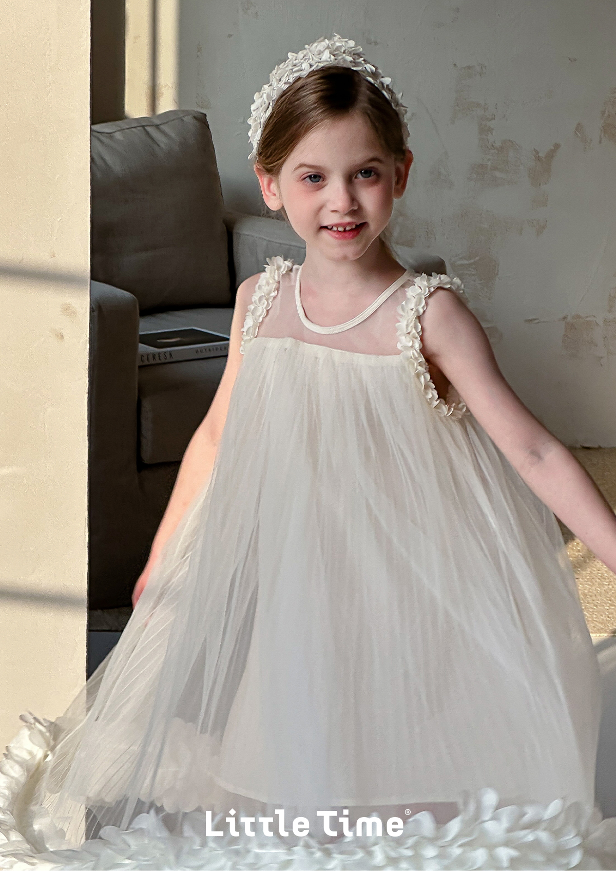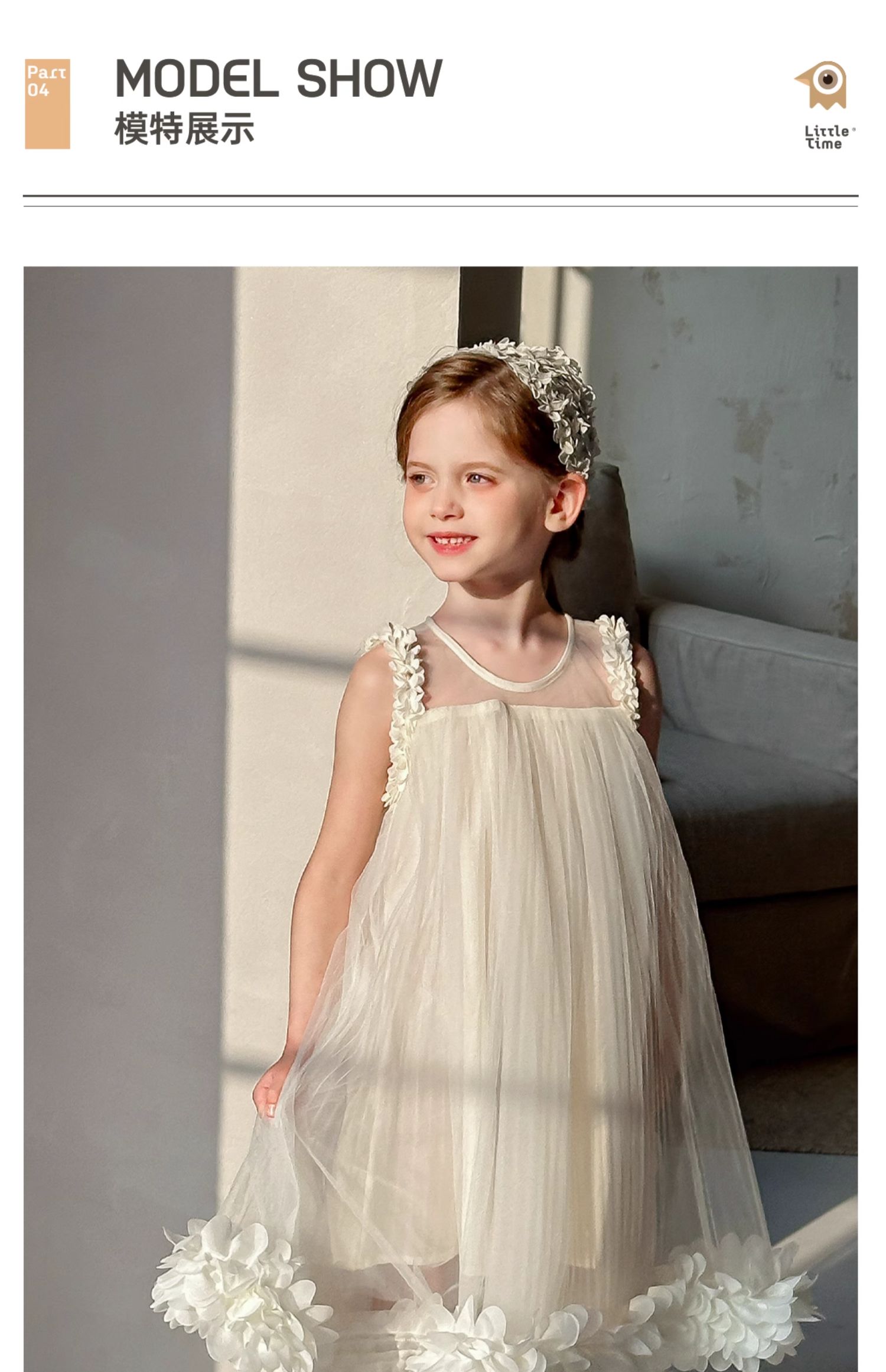 Littletime女童连衣裙夏季小女孩花朵儿童吊带裙纯棉无袖公主纱裙