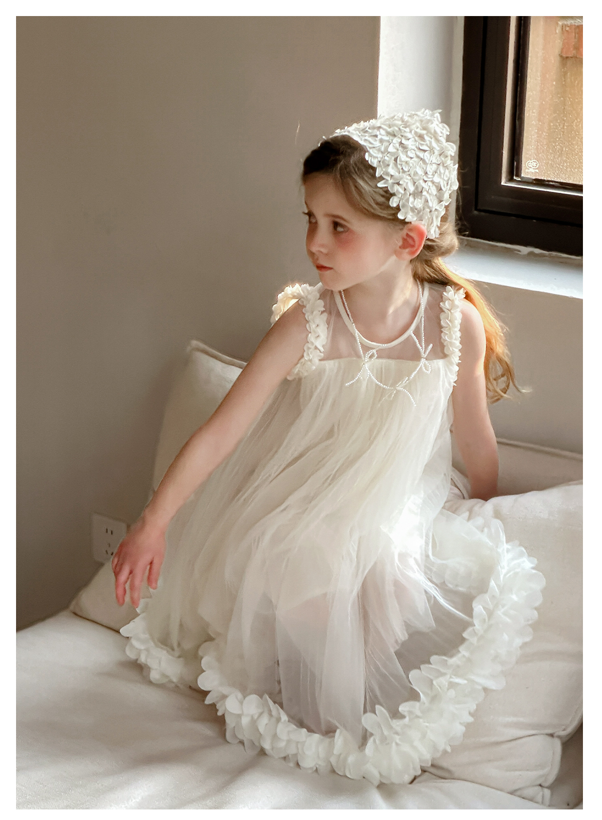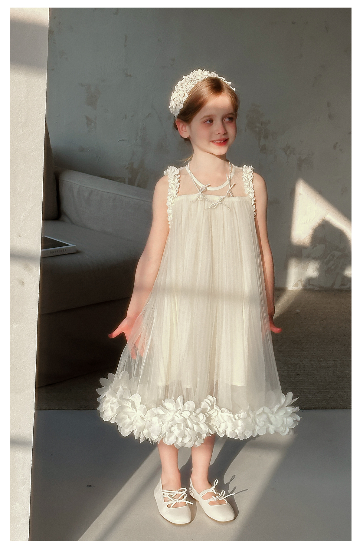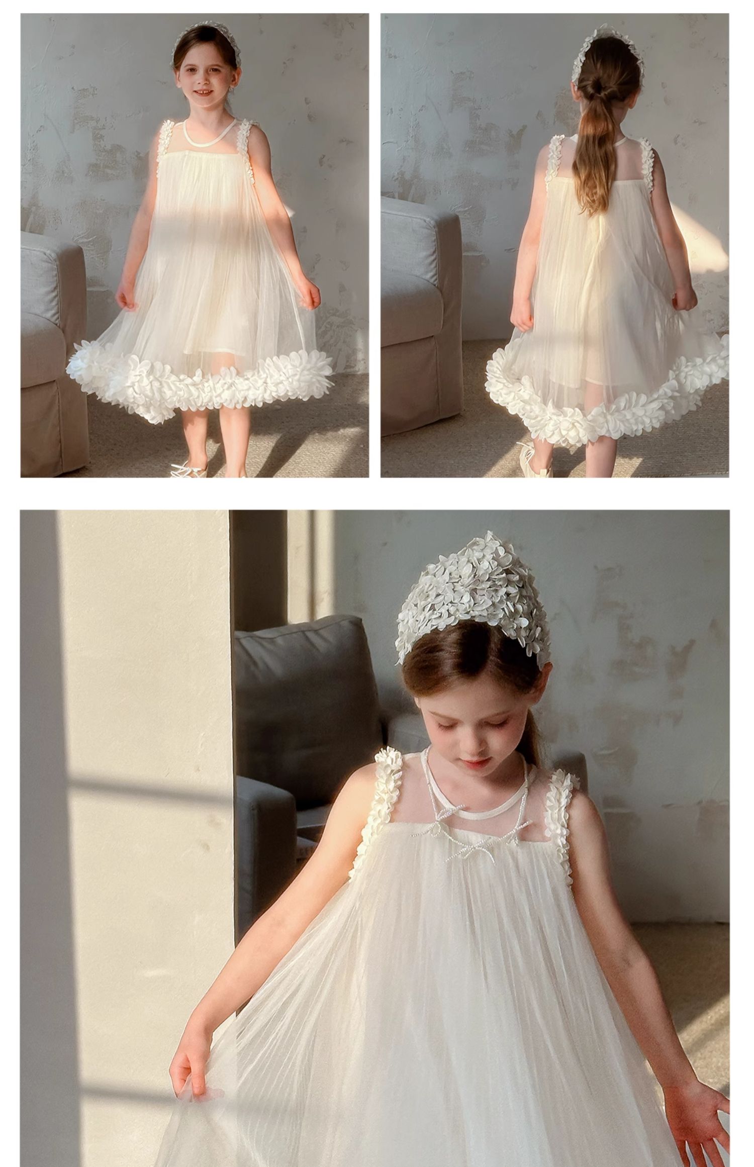 Littletime女童连衣裙夏季小女孩花朵儿童吊带裙纯棉无袖公主纱裙
