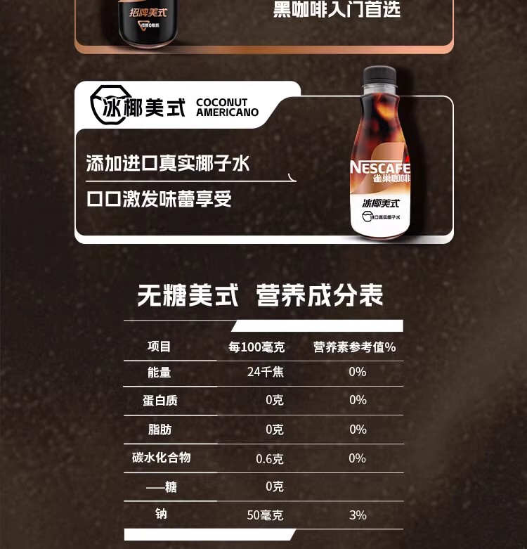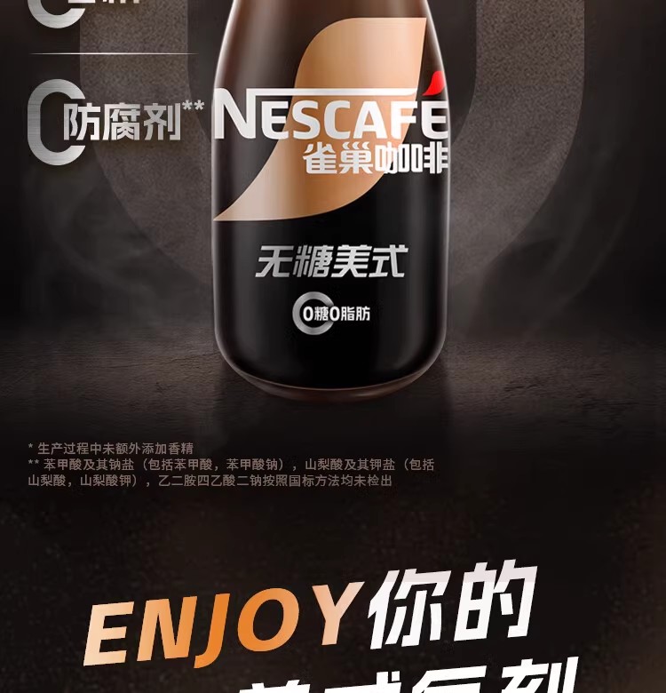 雀巢咖啡瓶装无糖美式拿铁即饮饮料正品268ml*15瓶
