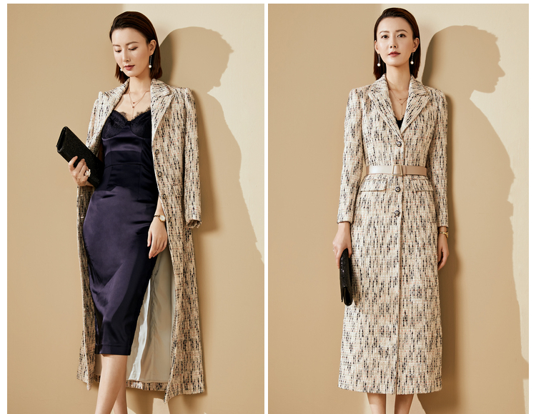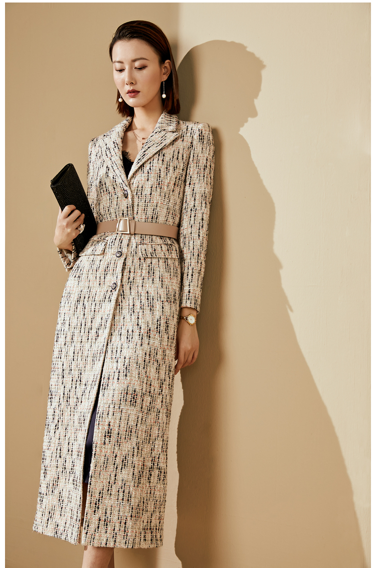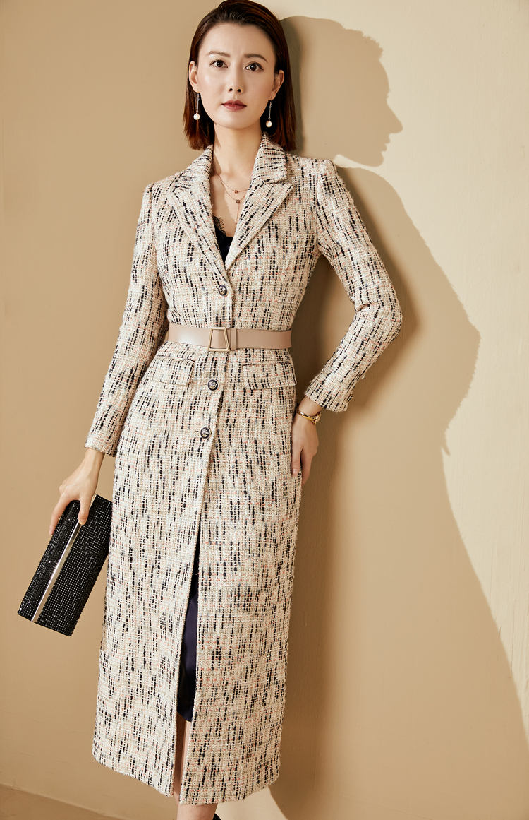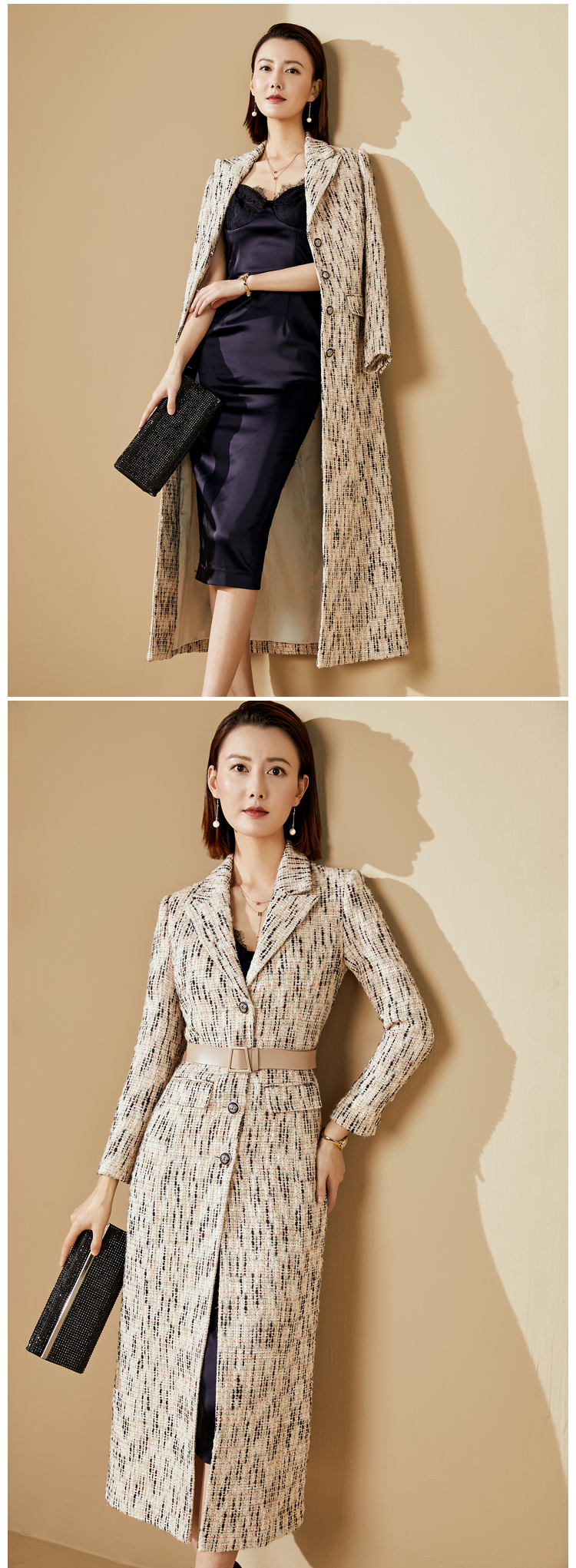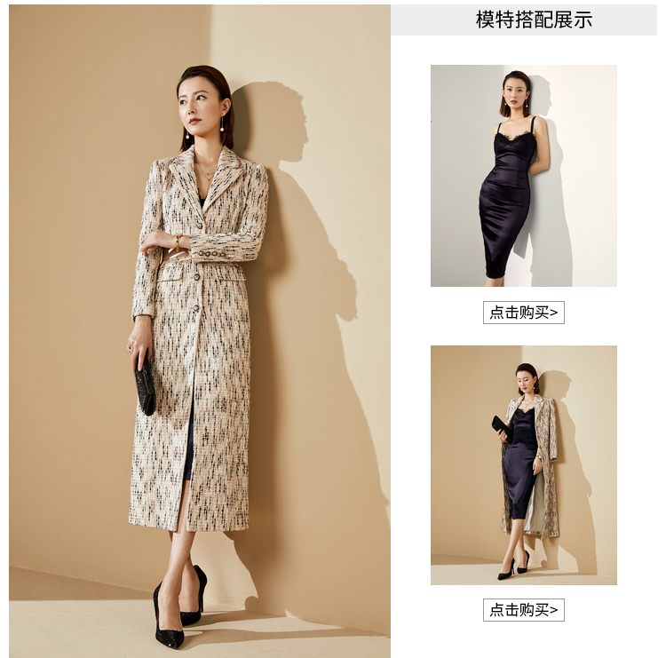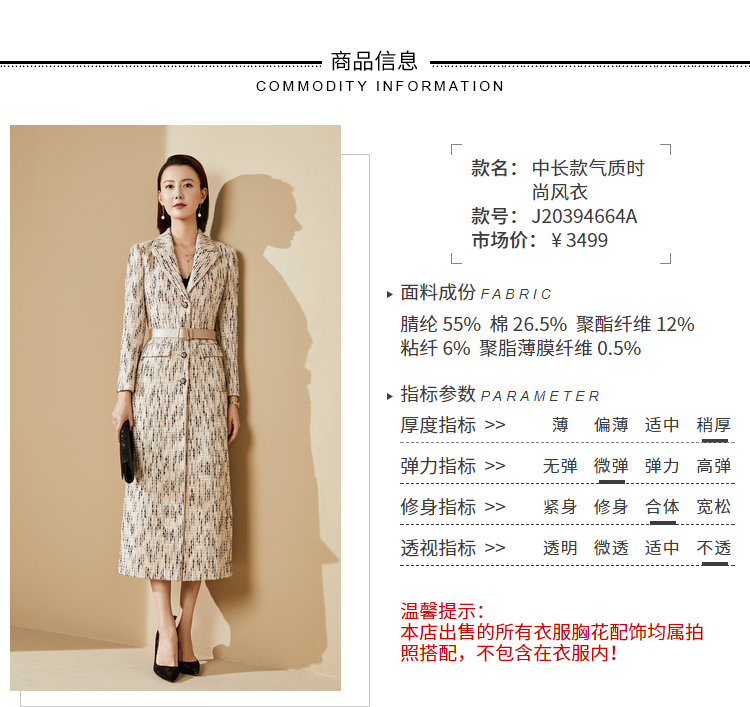 “博物馆”J20394664颈袖添香秋冬季新款女装时尚修身梭织过膝中长款外套风衣
