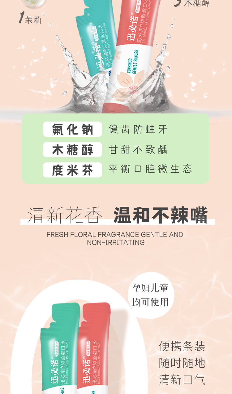 【迅必诺】双口味抑菌漱口水 清新口气 呵护牙龈