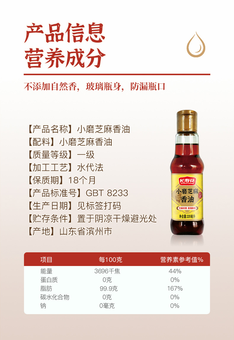 【特价品】长寿花箸下小磨香油220ml白芝麻油农家石磨自榨儿童家用纯正麻油