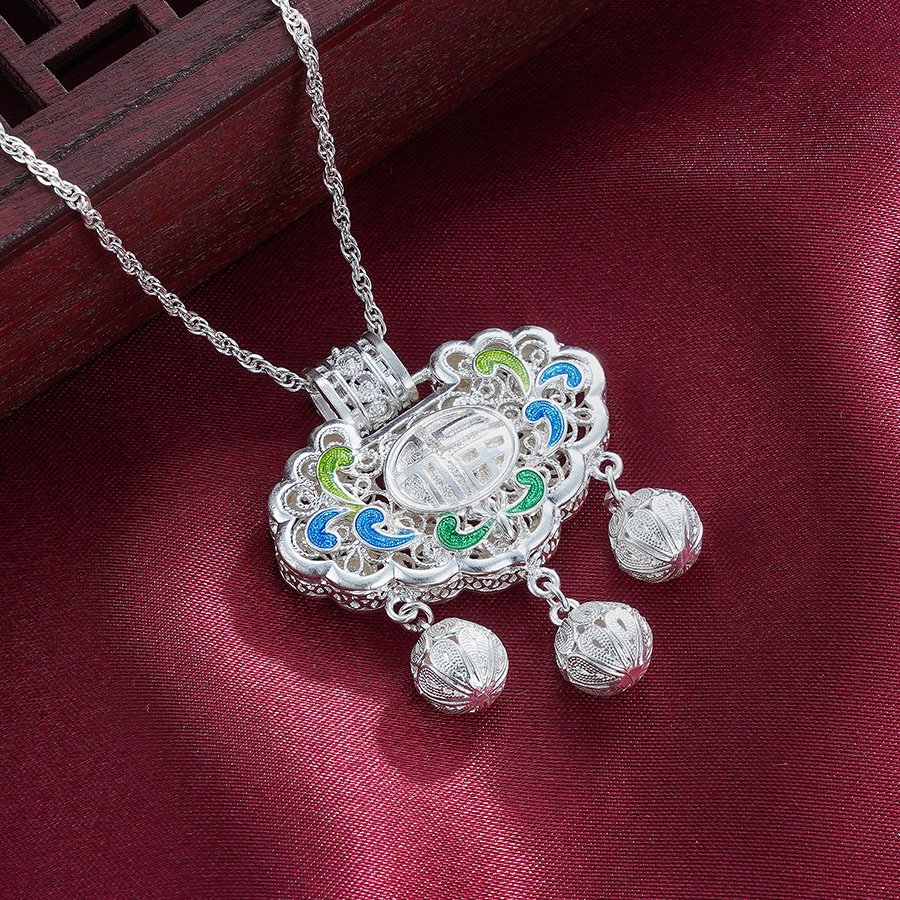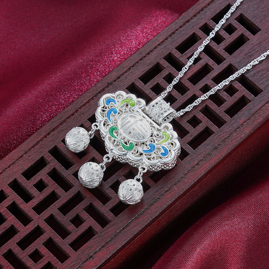 【设计理念】:送人平安锁是古人祝福的表达,不管是孩童或成年人,都可以佩戴。这款平安锁吊坠经过景泰蓝工艺的吊坠,颜色更加丰富多彩。