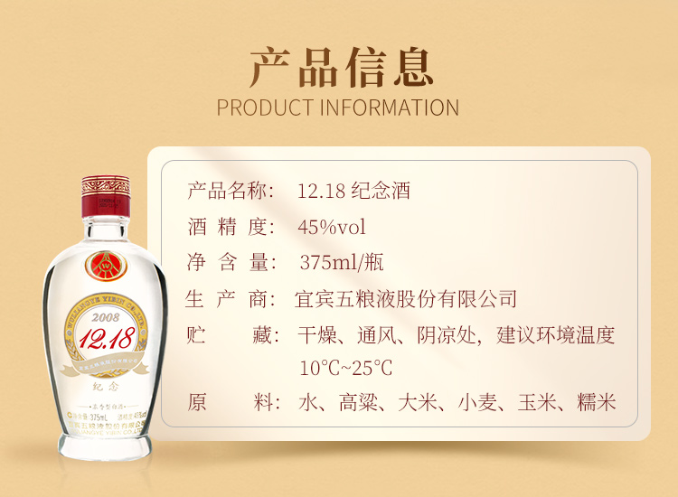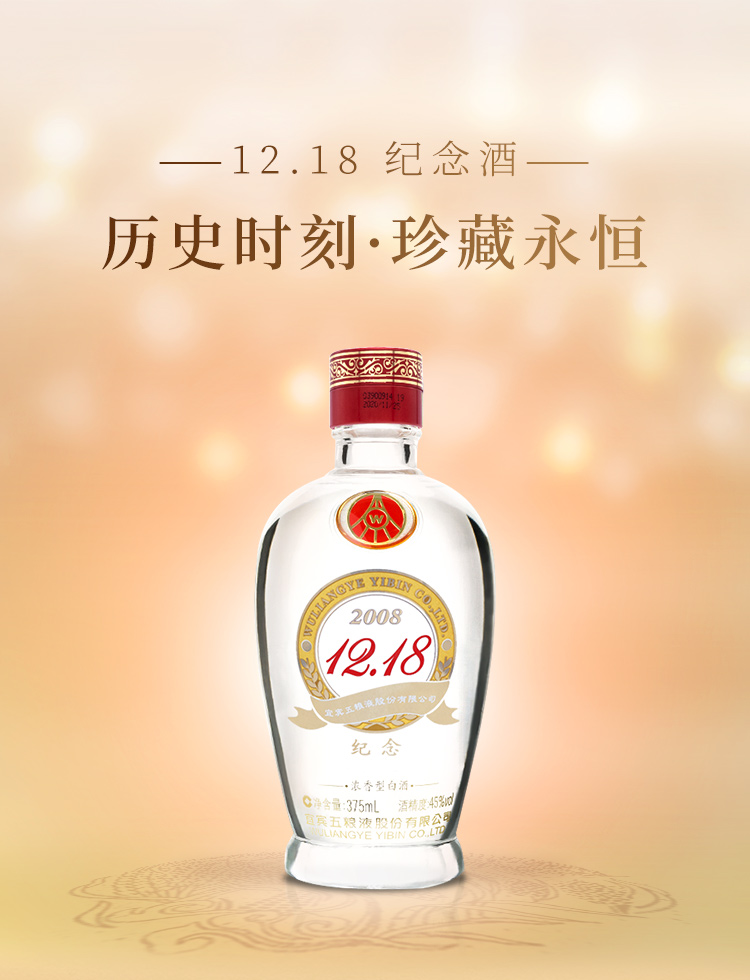 五粮液出品 12.18纪念酒 45°白酒 375ml
