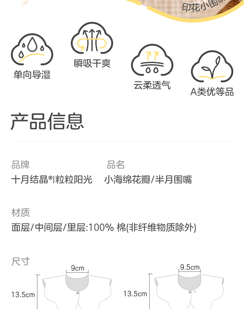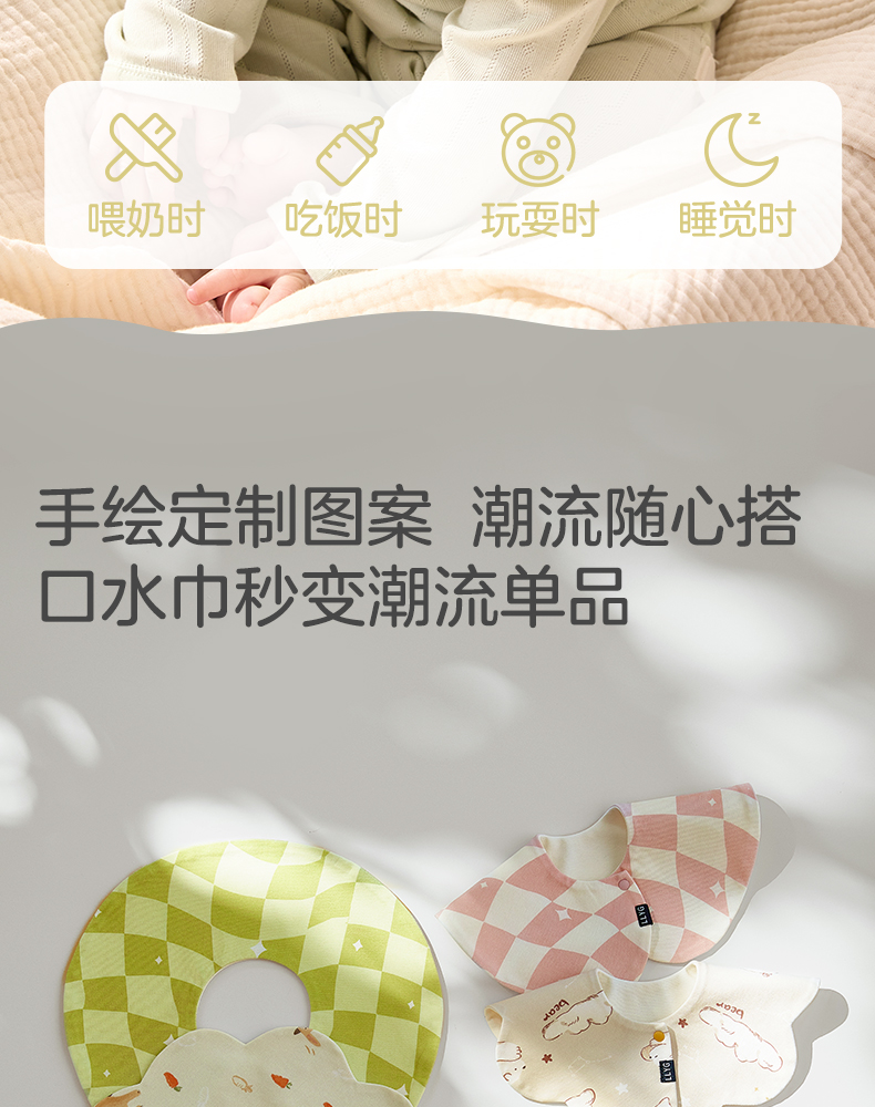 粒粒阳光婴儿围嘴纯棉A类新生幼儿男女宝宝口水巾夏季薄