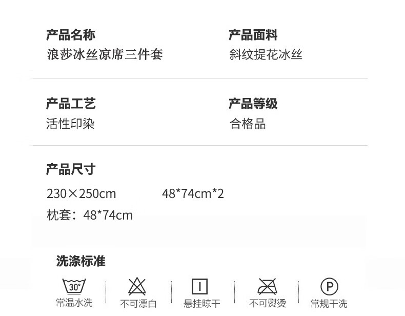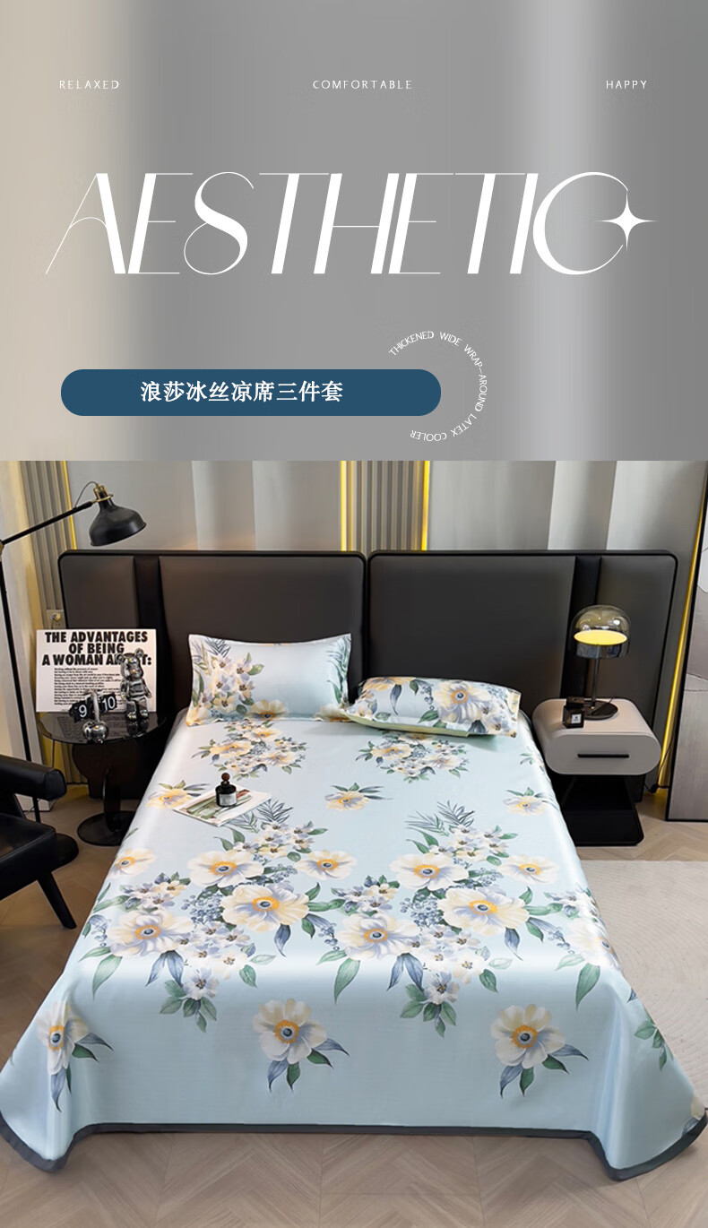 【分仓直发包邮】浪莎冰丝凉席三件套-梦南风LSLX002