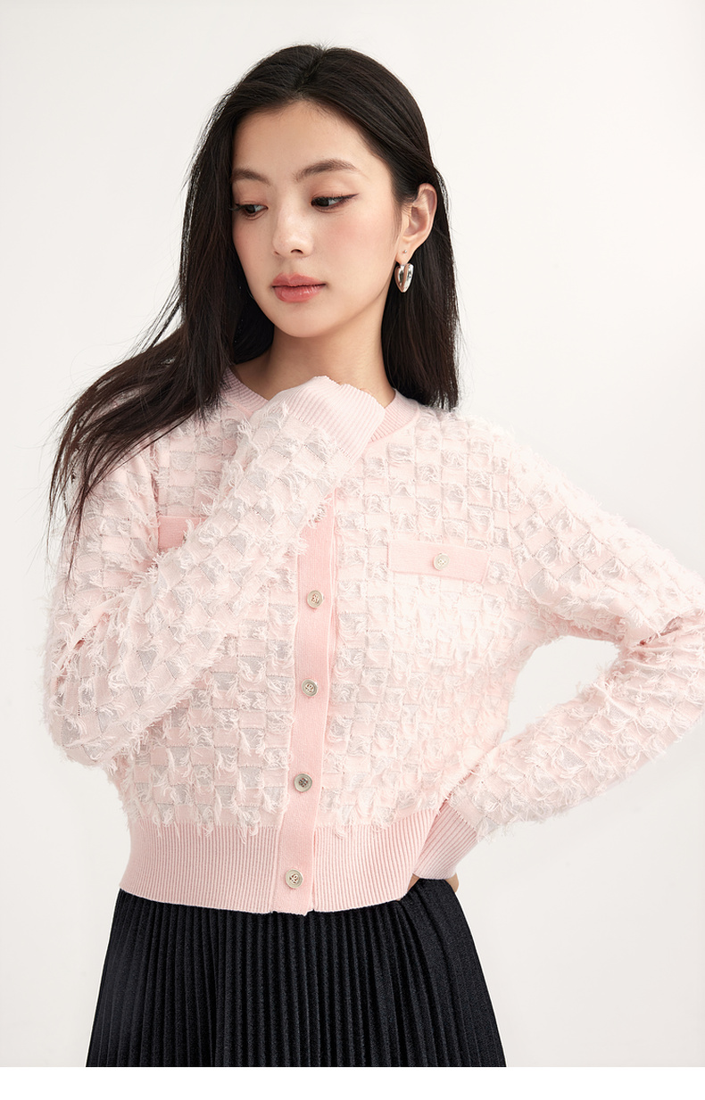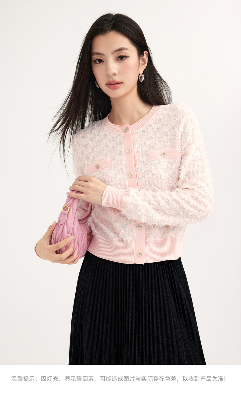 【特惠不退货】诗凡黎粉色小香风针织开衫2024春新款上衣3F2230241