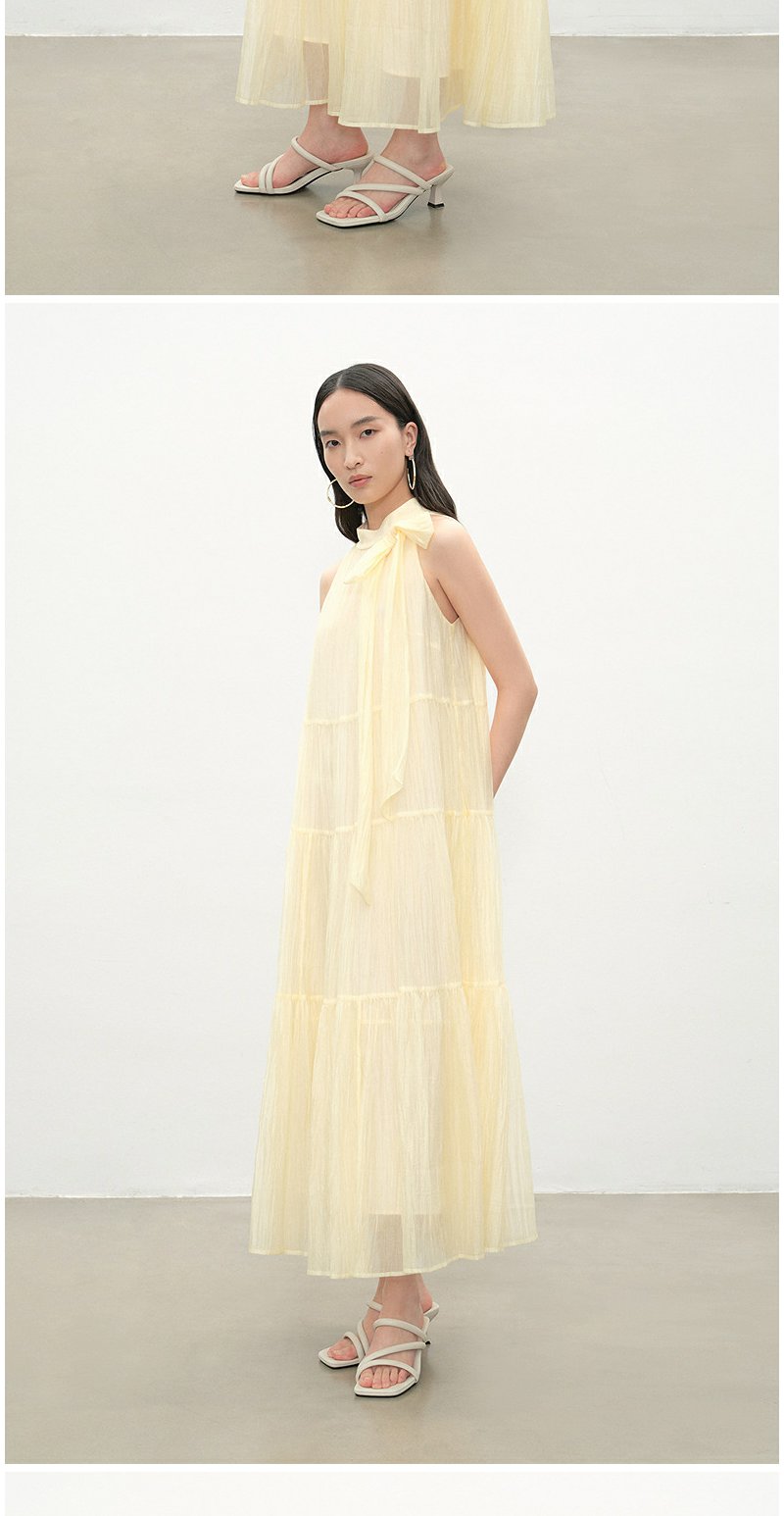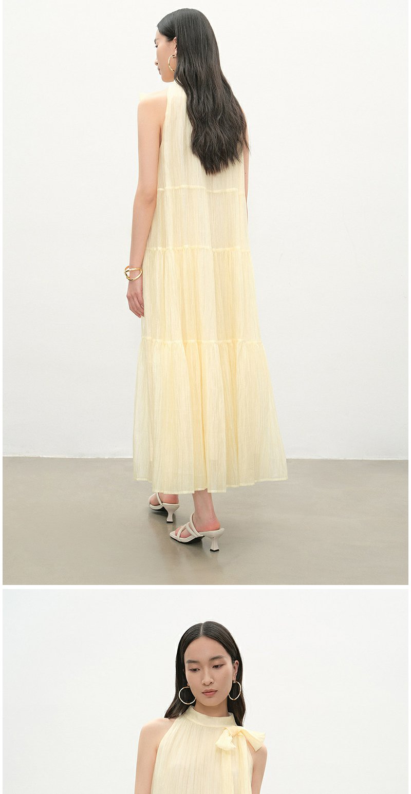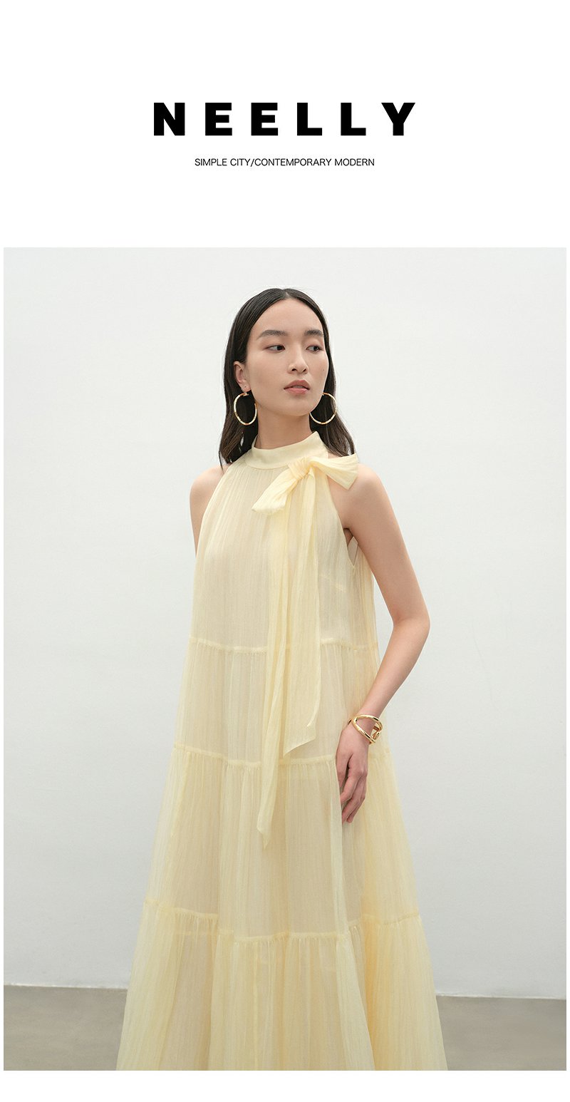 NEELLY纳俪商场同款夏季新款甜美挂脖蛋糕裙女设计感百搭亮眼长裙N25052Y01153