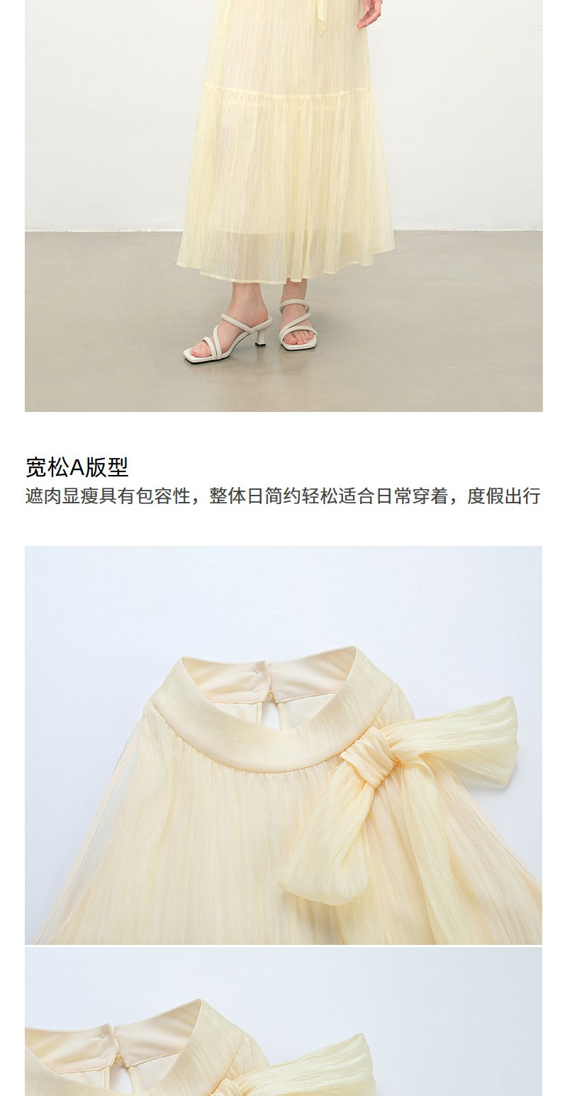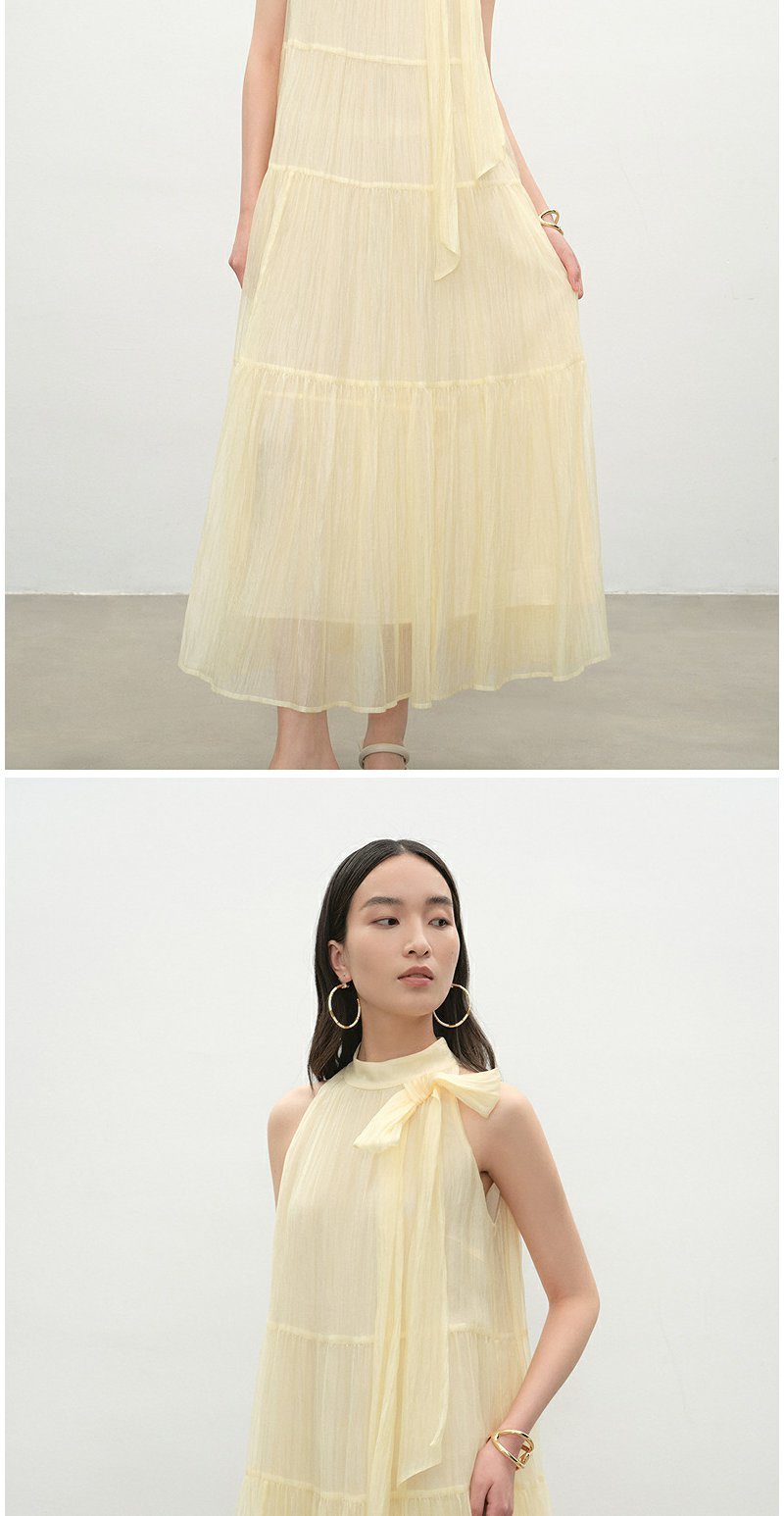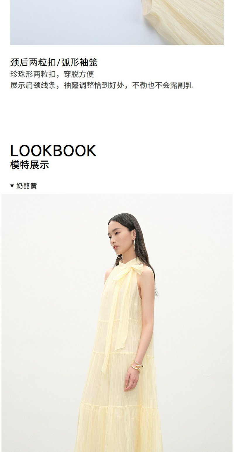 NEELLY纳俪商场同款夏季新款甜美挂脖蛋糕裙女设计感百搭亮眼长裙N25052Y01153