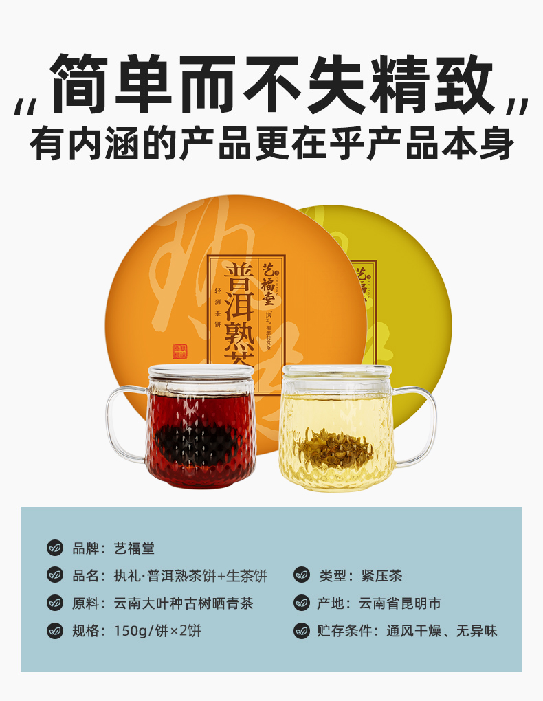 艺福堂执礼普洱熟茶饼150g/饼+艺福堂执礼普洱生茶饼150g/饼