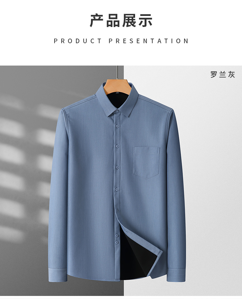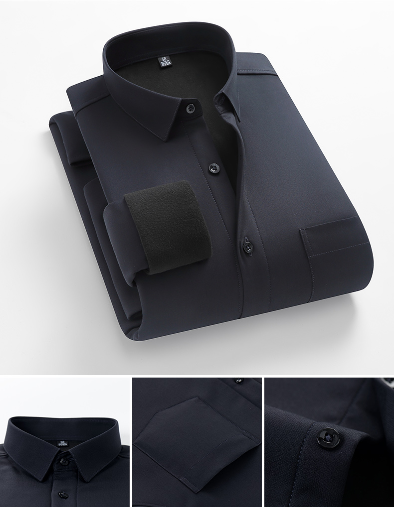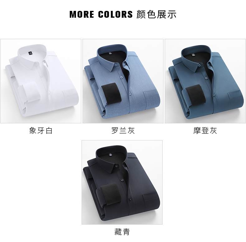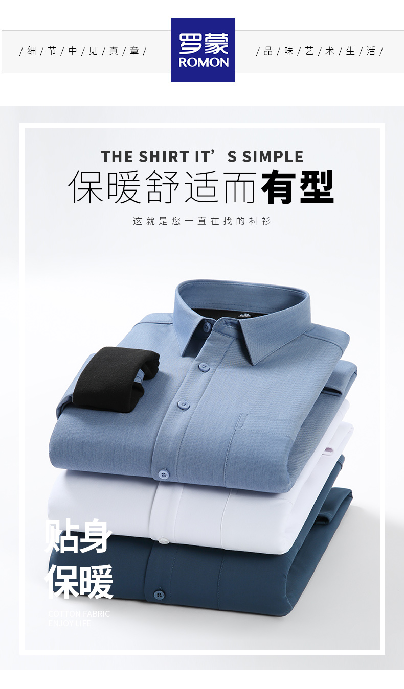 【加绒保暖】罗蒙秋冬男士保暖衬衫加绒加厚纯色百搭职业衬衣厚