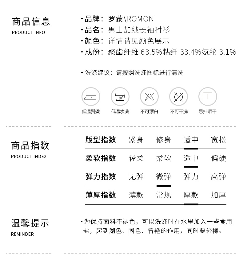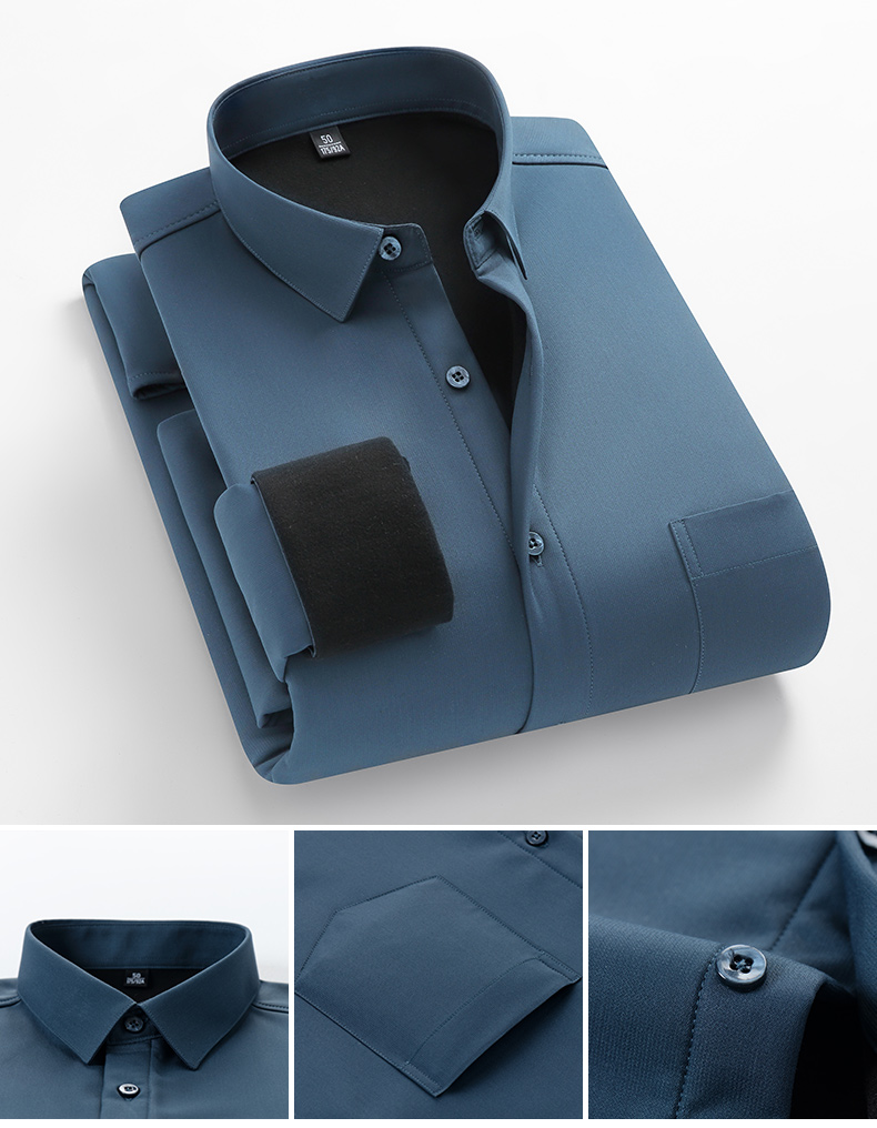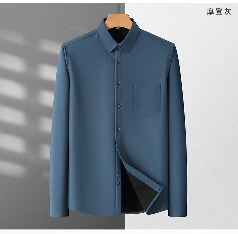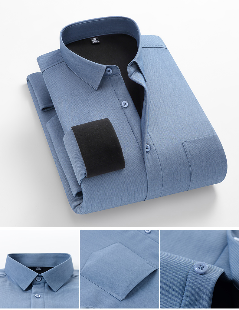 【加绒保暖】罗蒙秋冬男士保暖衬衫加绒加厚纯色百搭职业衬衣厚