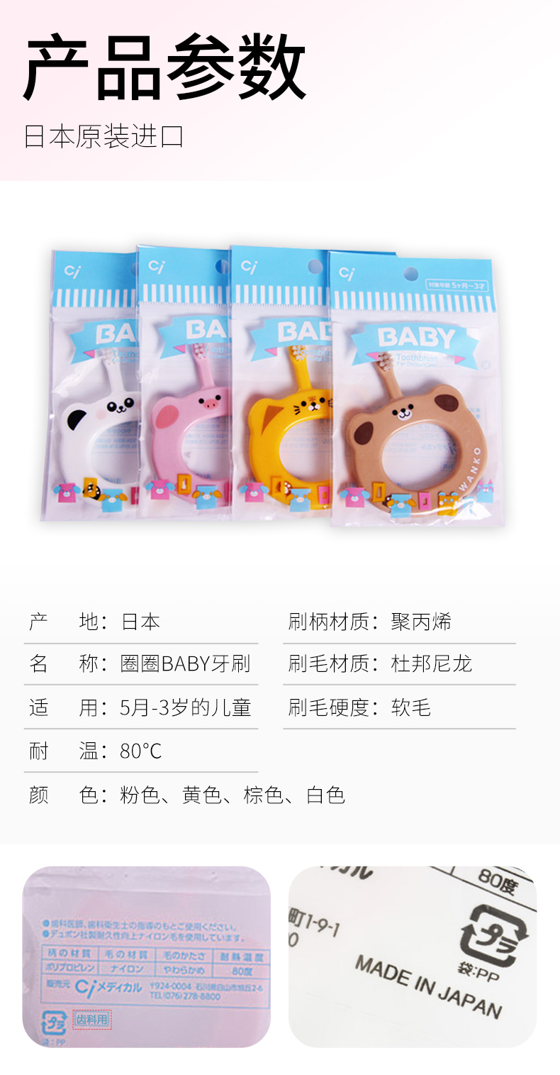 【马泷专享】(3支52元)日本Ci幼儿圈圈辅助训练牙刷适合0-3岁阶段