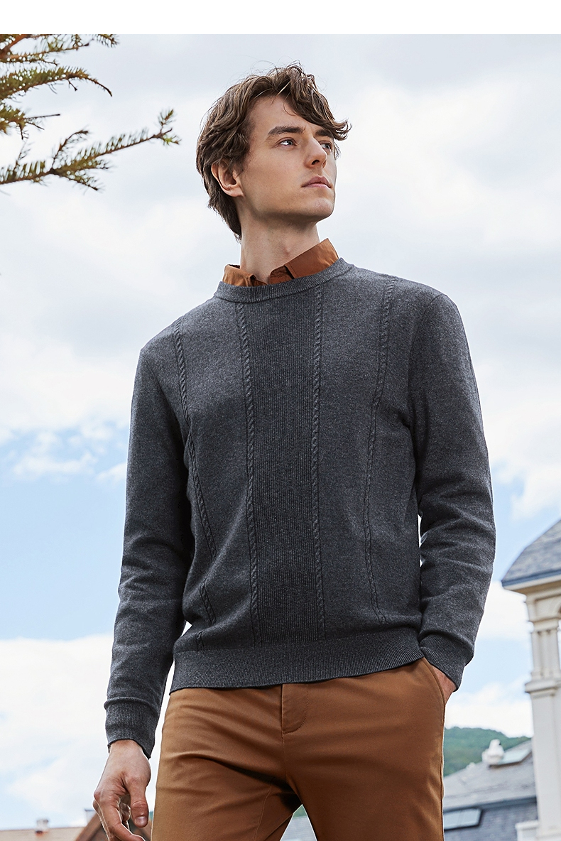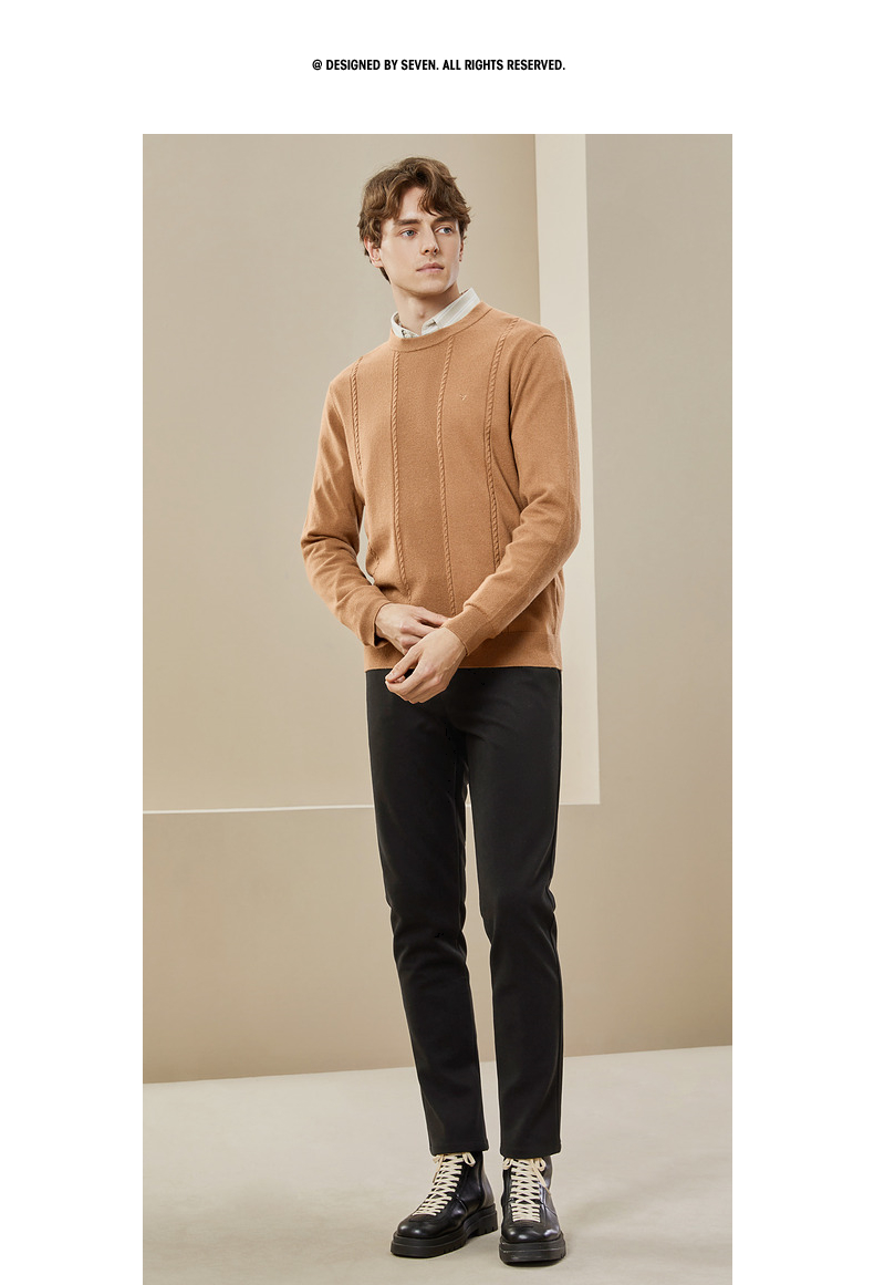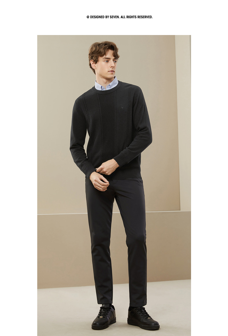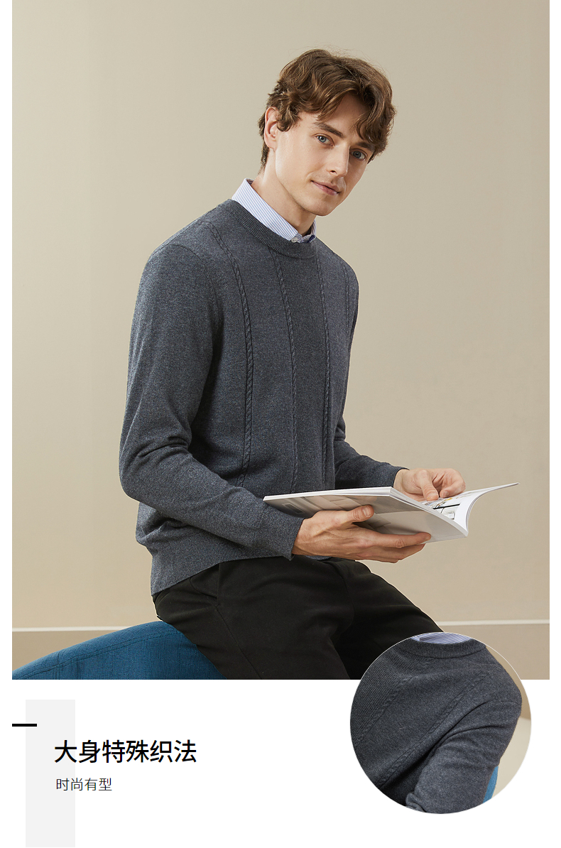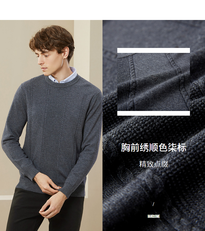 【含羊绒】柒牌男装羊毛衫男秋冬季新款时尚休闲圆领保暖毛衣 125Y70560