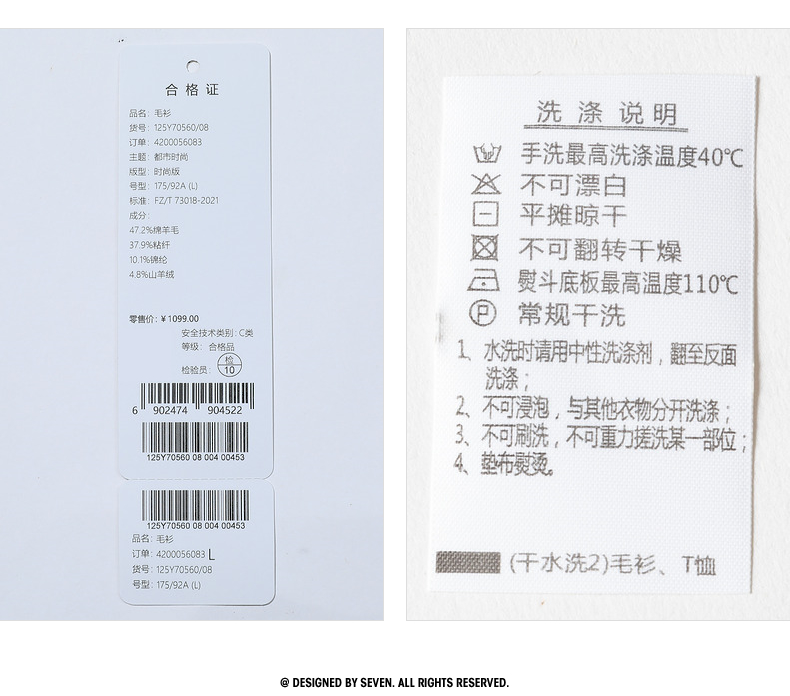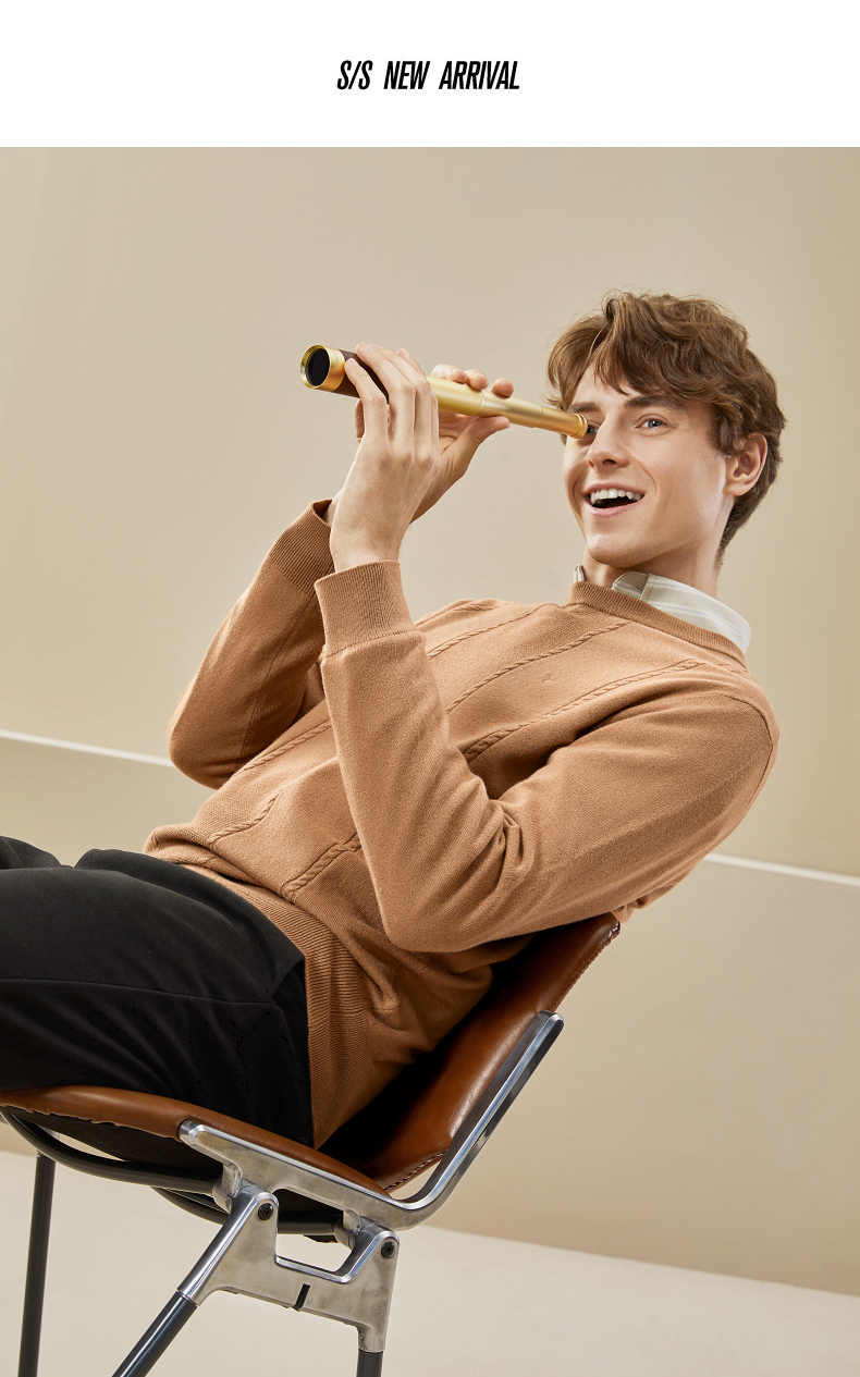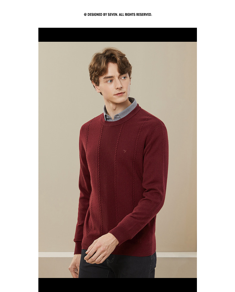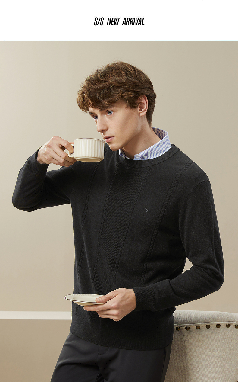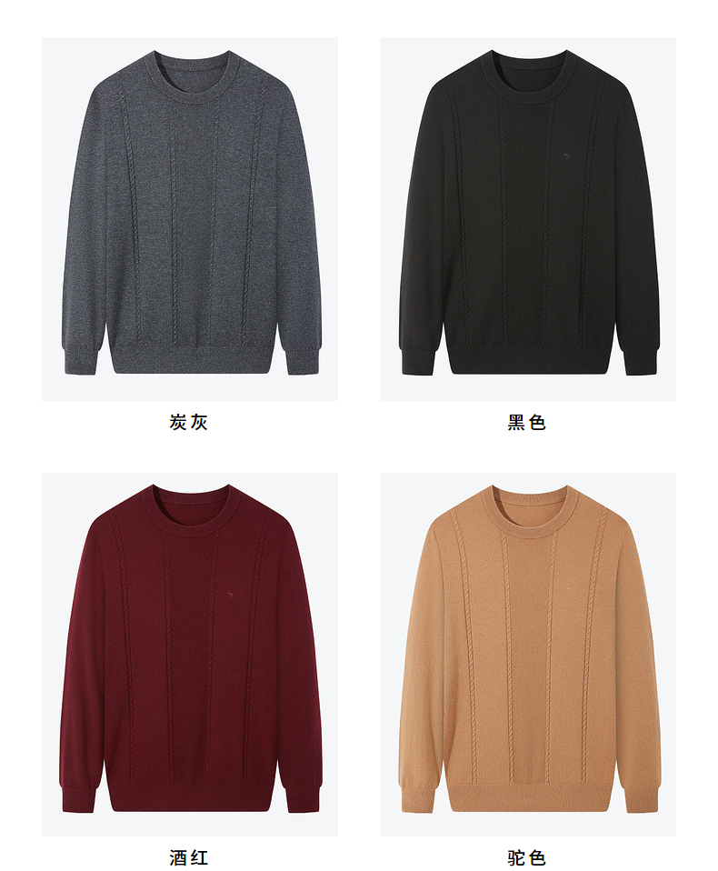 【含羊绒】柒牌男装羊毛衫男秋冬季新款时尚休闲圆领保暖毛衣 125Y70560