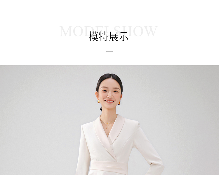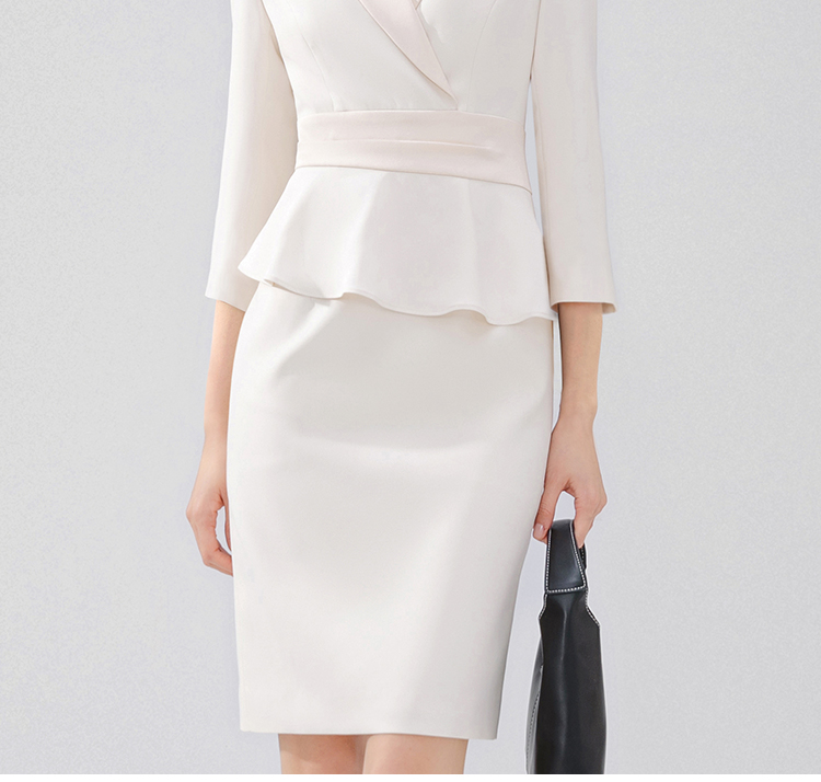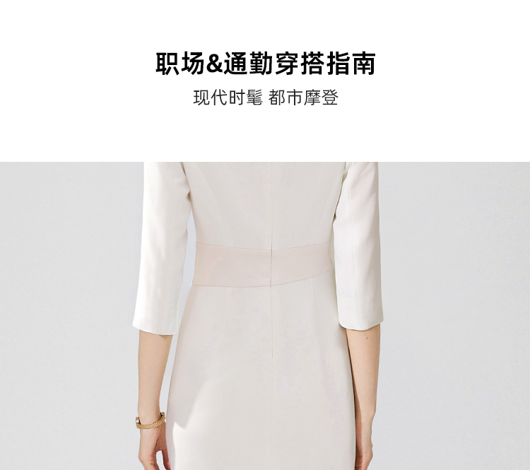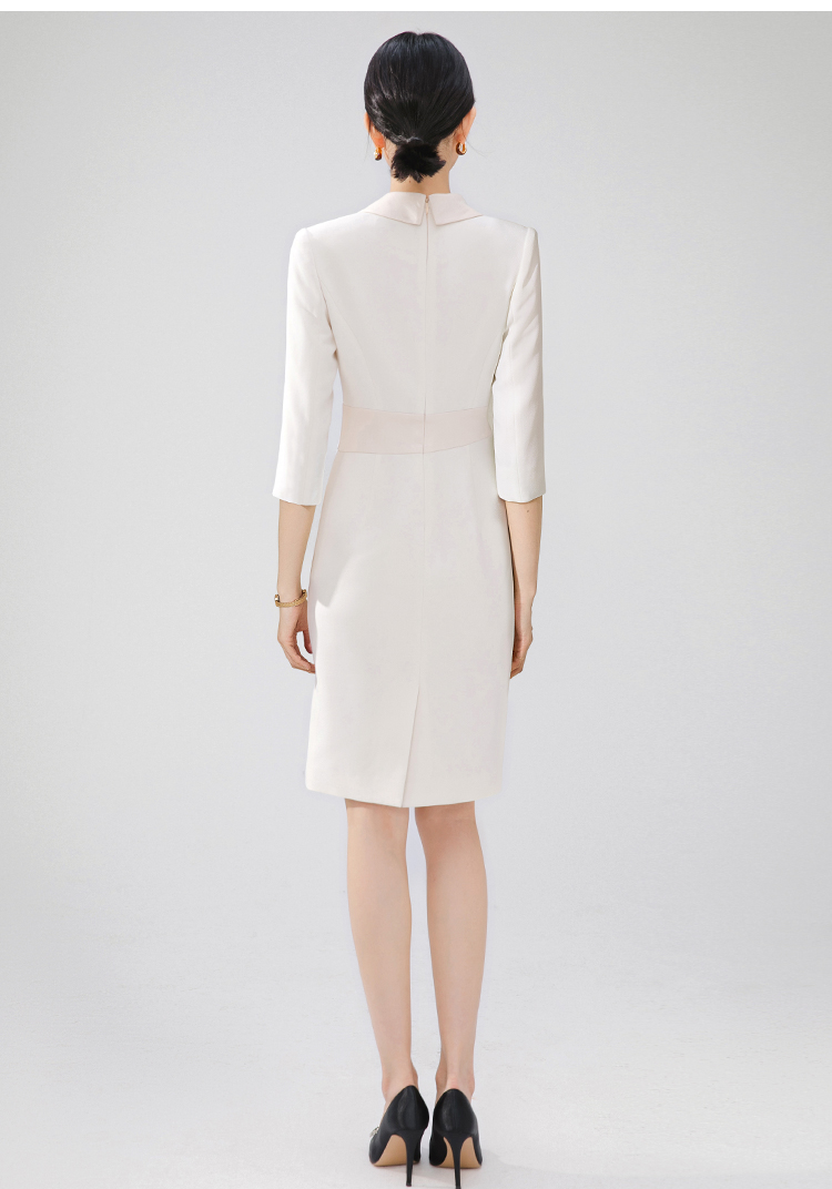 IWY/杏色西装连衣裙七分袖工装裙美容院工装主持人高端ol商务裙子23Q472