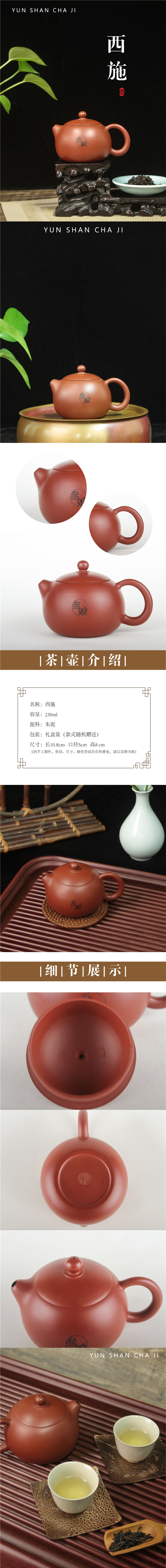 西施紫砂壶叁娘纯手工朱泥功夫茶具230毫升