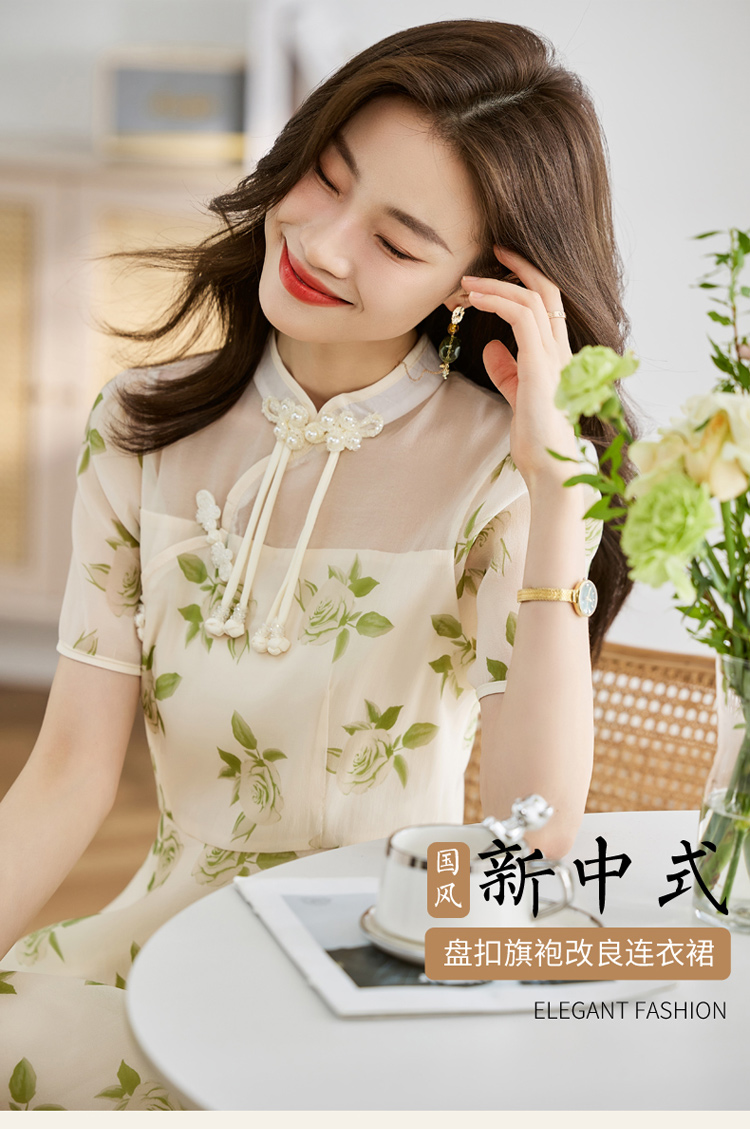 国风新中式,盘扣旗袍改良时尚显瘦连衣裙HR-CPYY2378-1