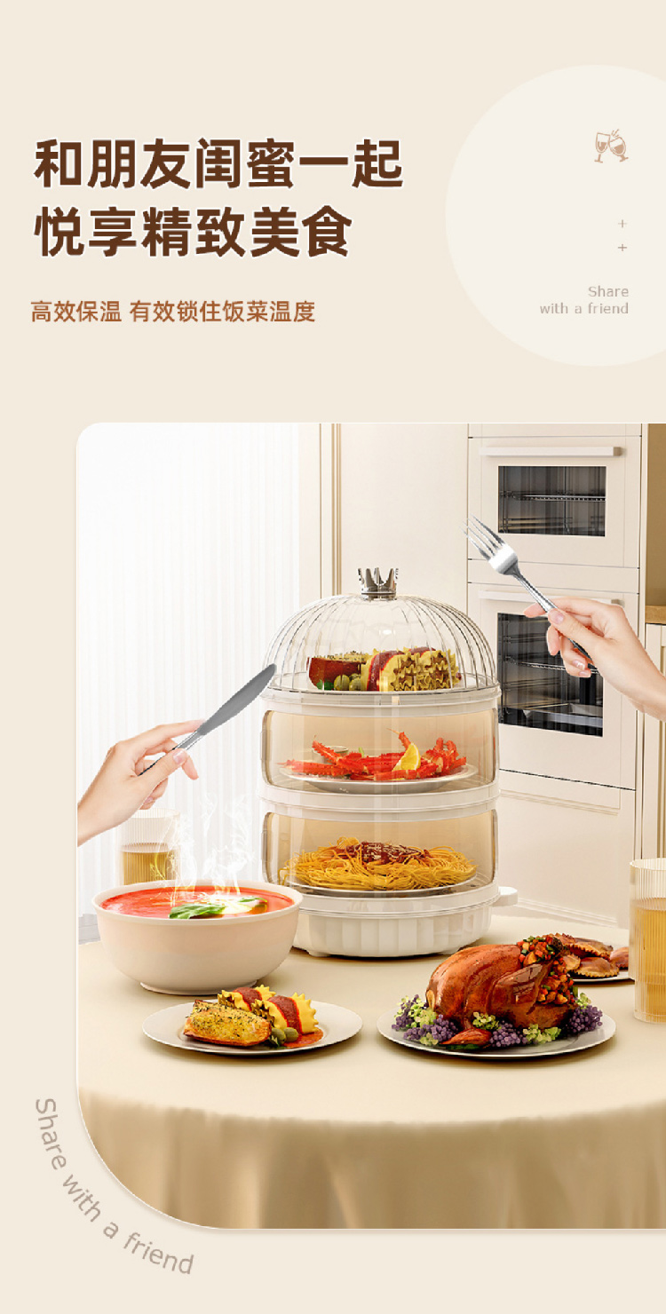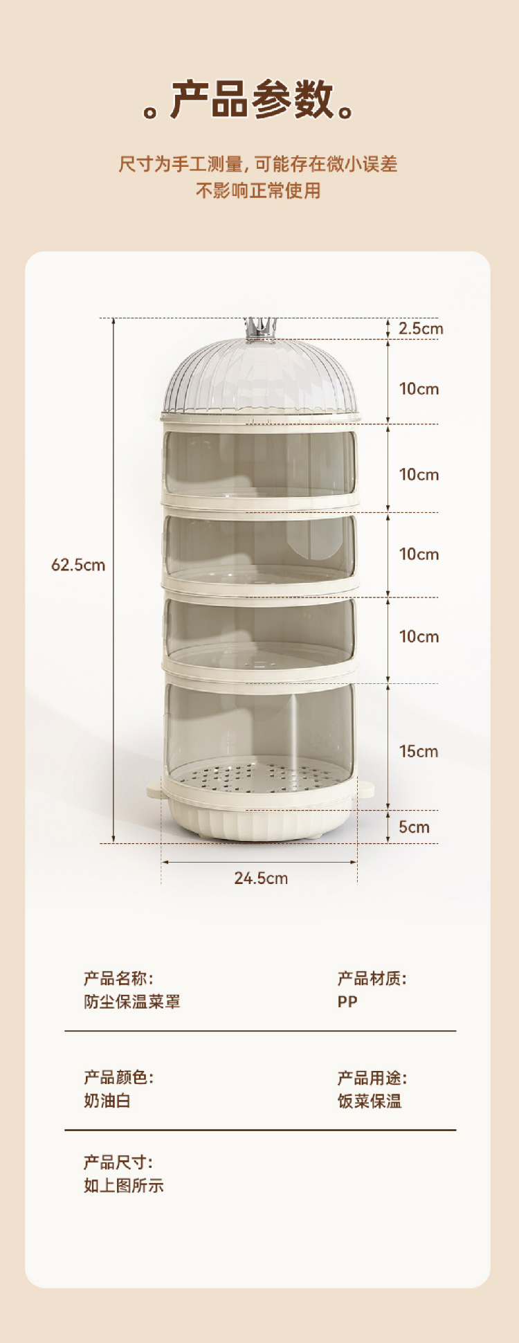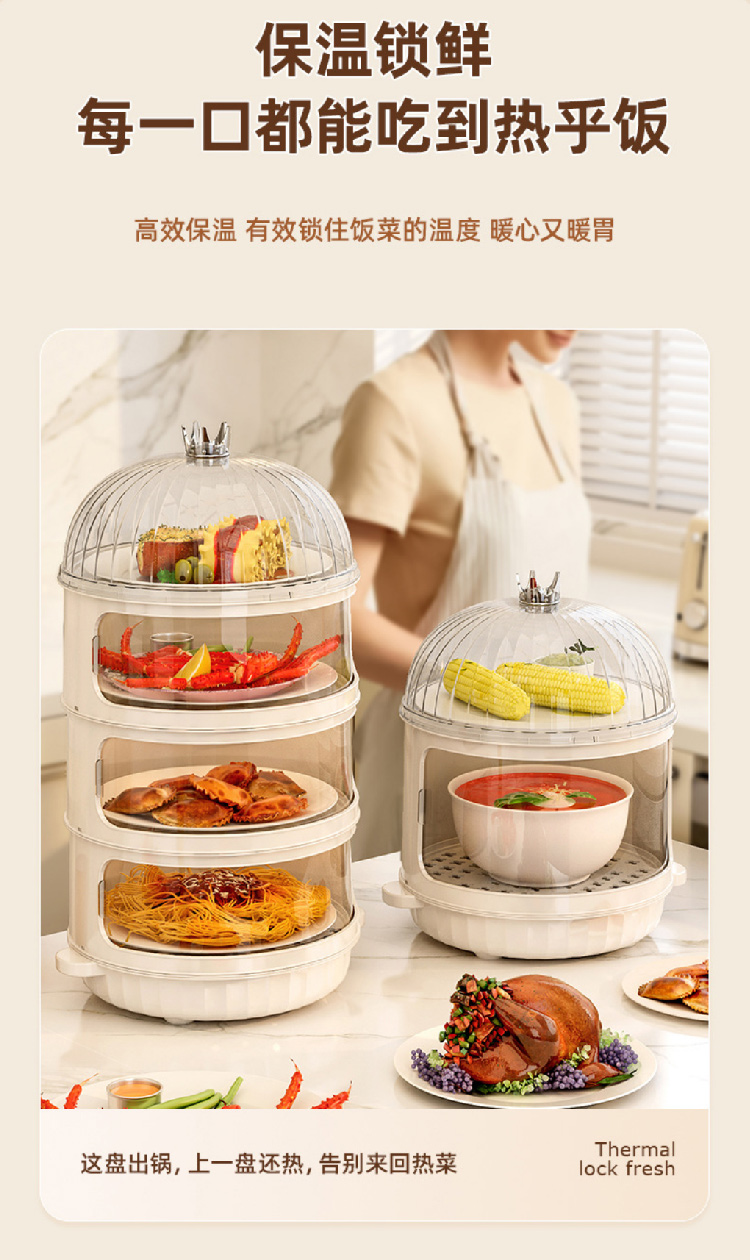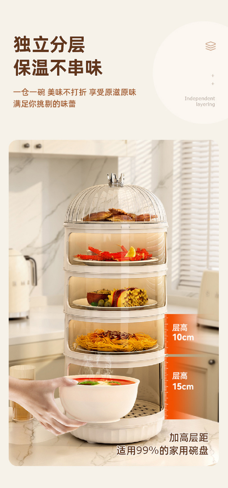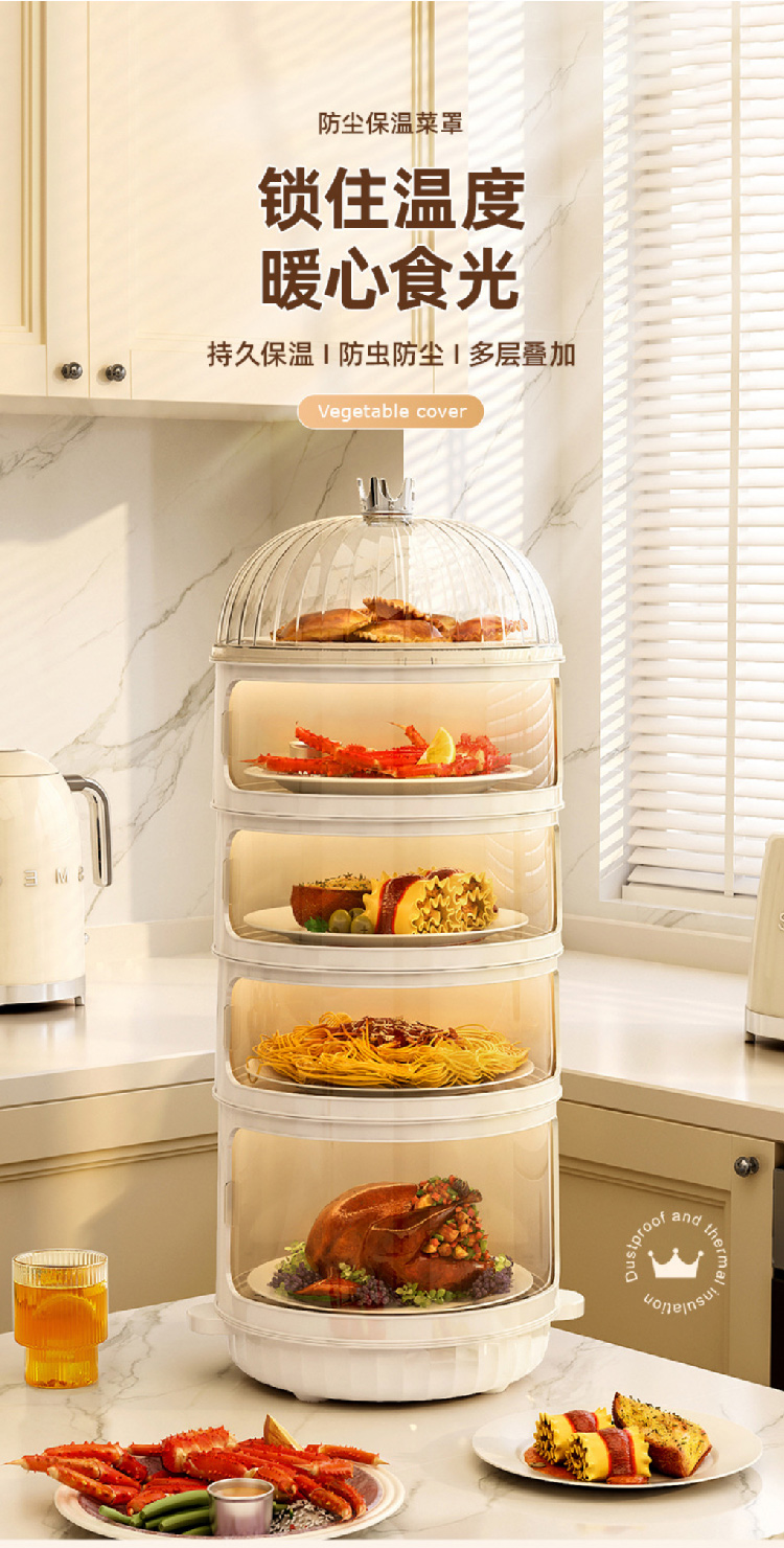 【加高5层防尘蒸罩】家用多层保温菜罩遮尘罩剩菜罩 餐桌物理保温分层保护罩