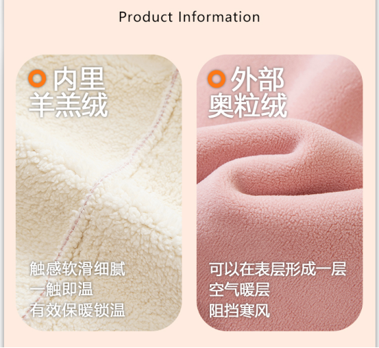 ⚠⚠⚠必须重磅介绍一下面料: 外面高克重奥粒绒,保暖舒适,亲肤柔软,耐磨耐刮,好打理。内面高克重羊羔绒,保暖透气,亲肤自然,风不进来,气出的去。 绒暖奥粒绒设计,超百搭,磨毛触感,细腻舒适的绒毛感,手感就像羊毛一样舒适!而且保暖效果非常好!巨暖,巨好穿,相信我,不暖不要钱👍