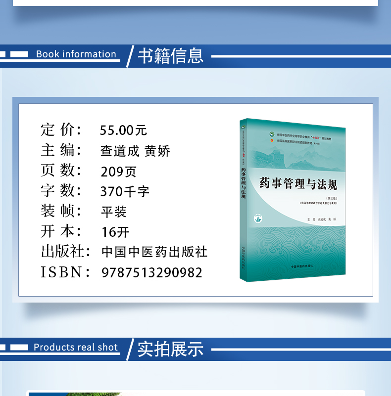 药事管理与法规 第3三版 全国中医药行业高等职业教育十四五规划教材 查道成编 供高等职业教自中药及相关专业用中国中医药出版社