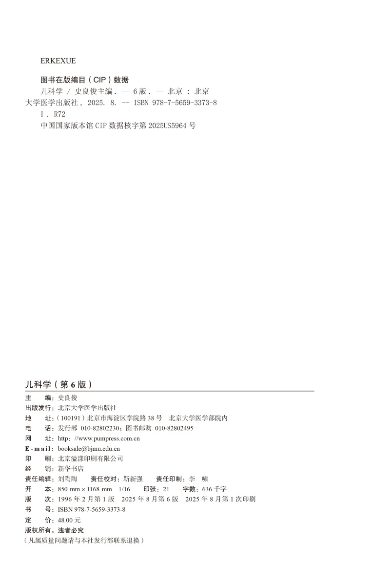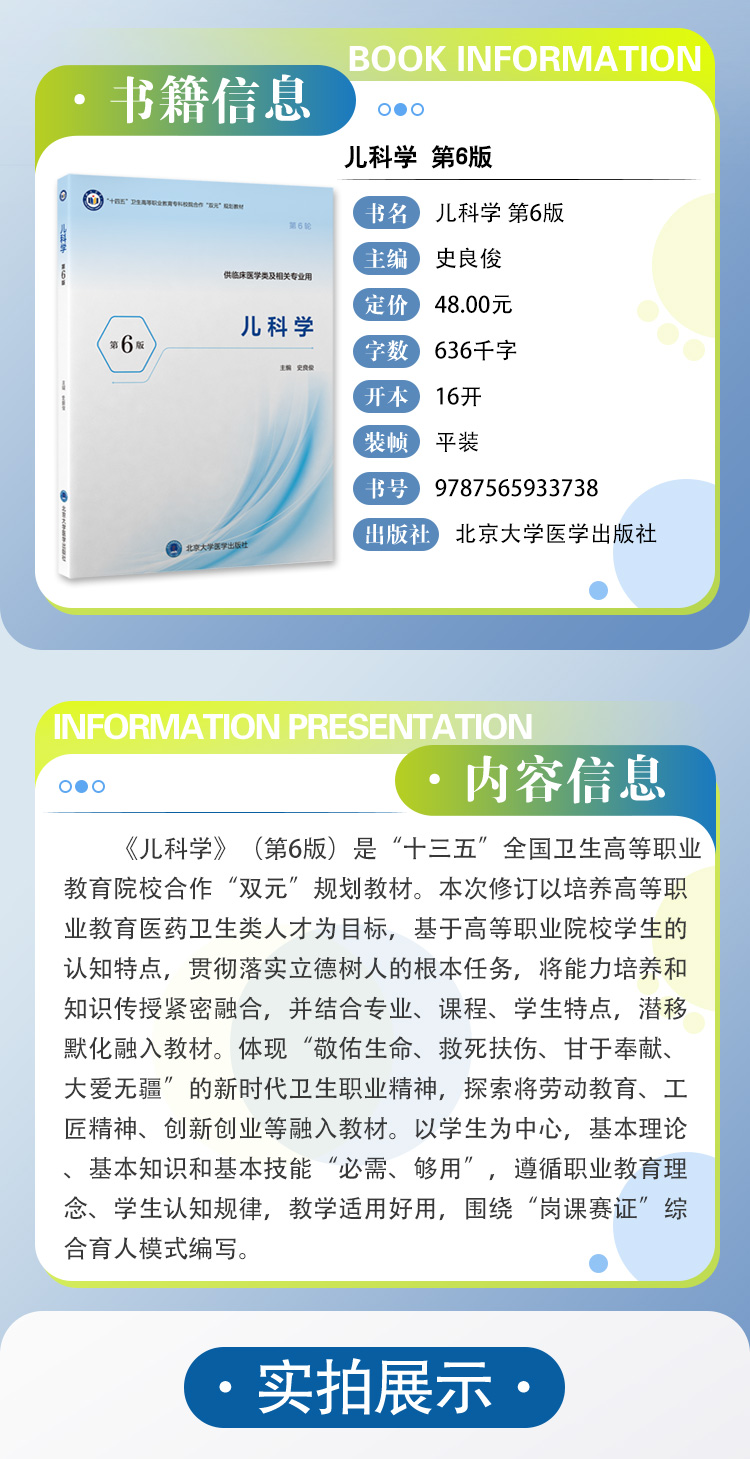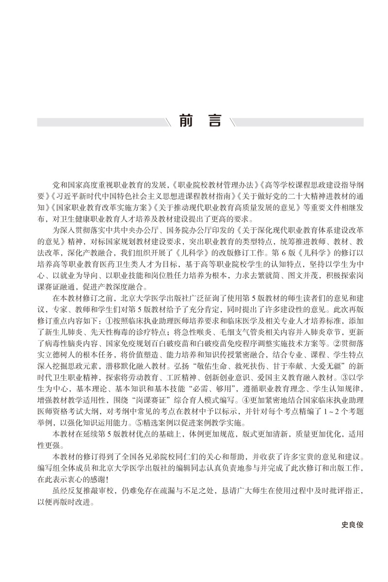 儿科学 第6六版 十四五卫生高等职业教育专科校院合作“双元”规划教材 史良俊 主编 供临床医学类及相关专业用北京大学医学出版社