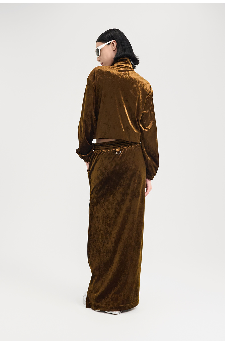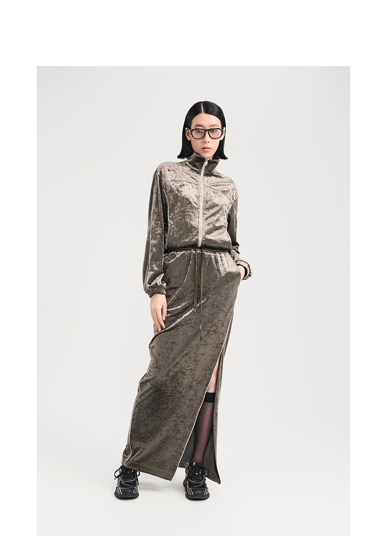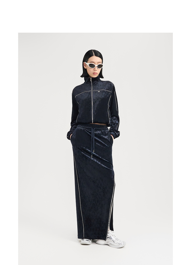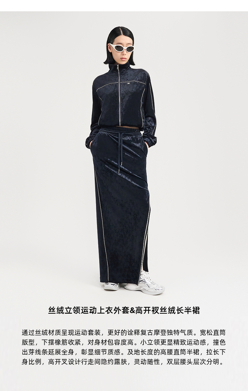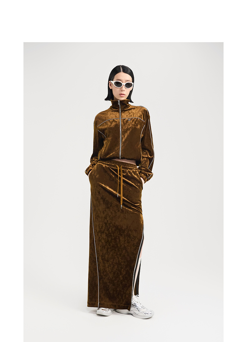 [捡漏价]lost in echo2024秋季新款休闲丝绒立领运动外套开衩半身裙套装女