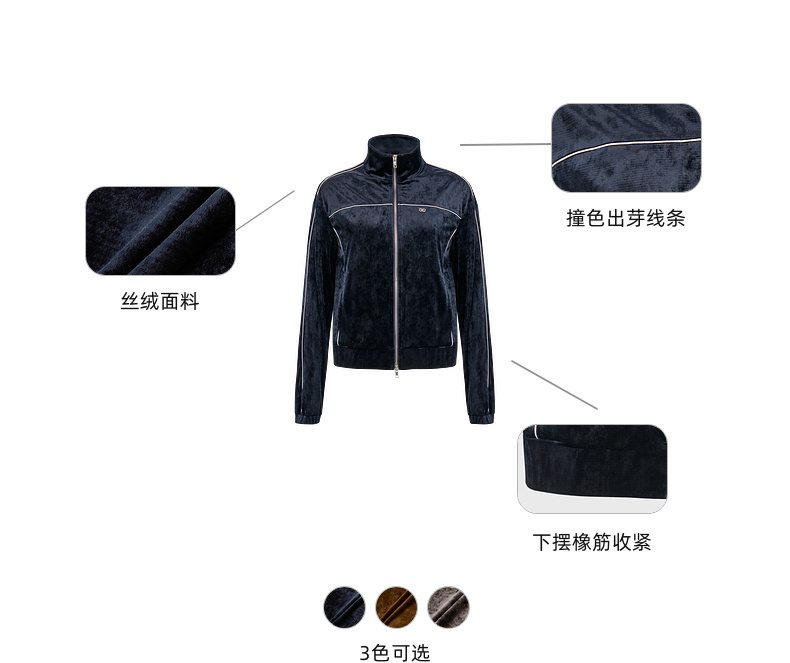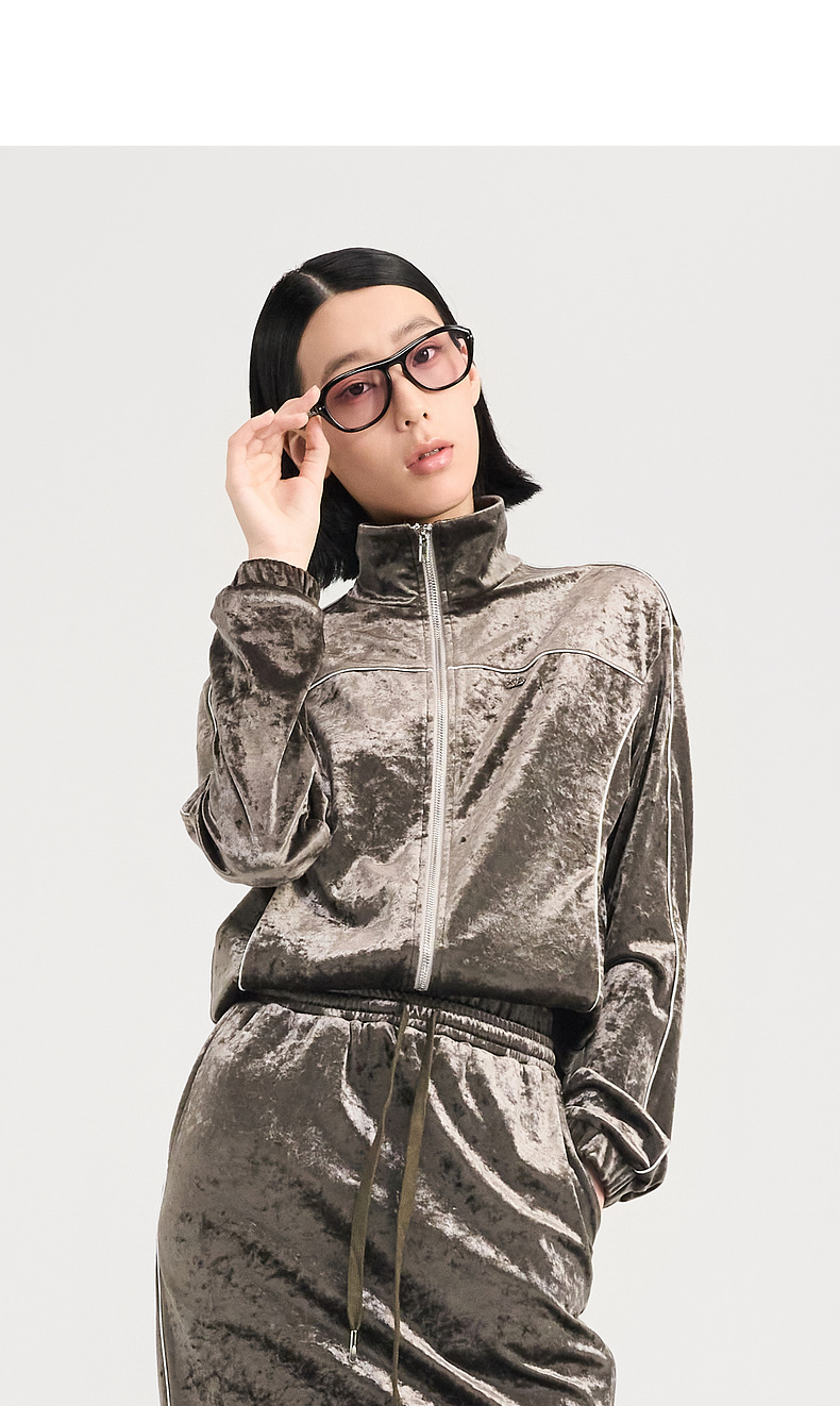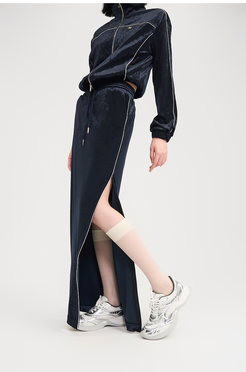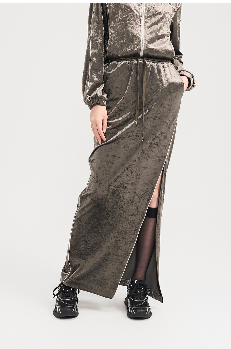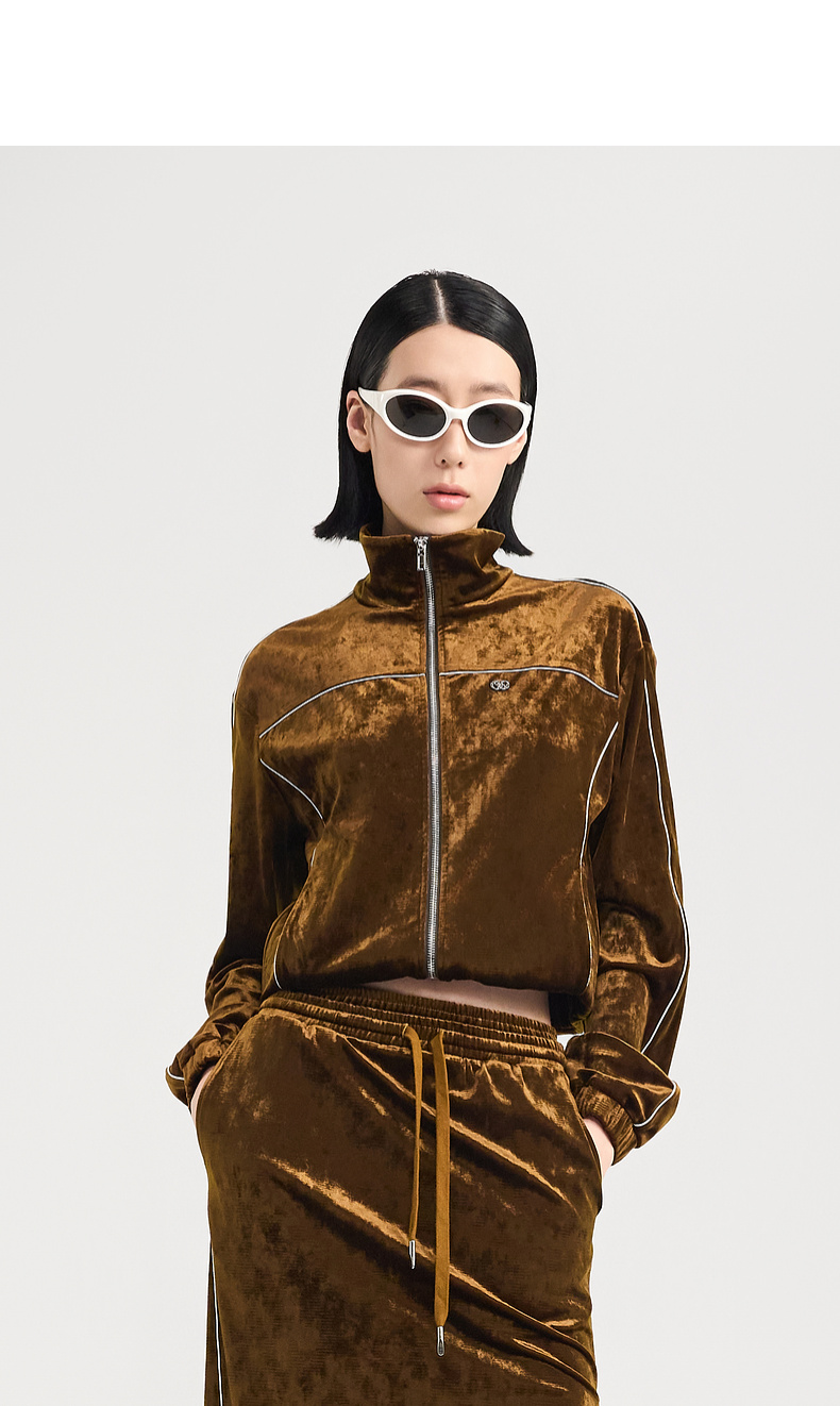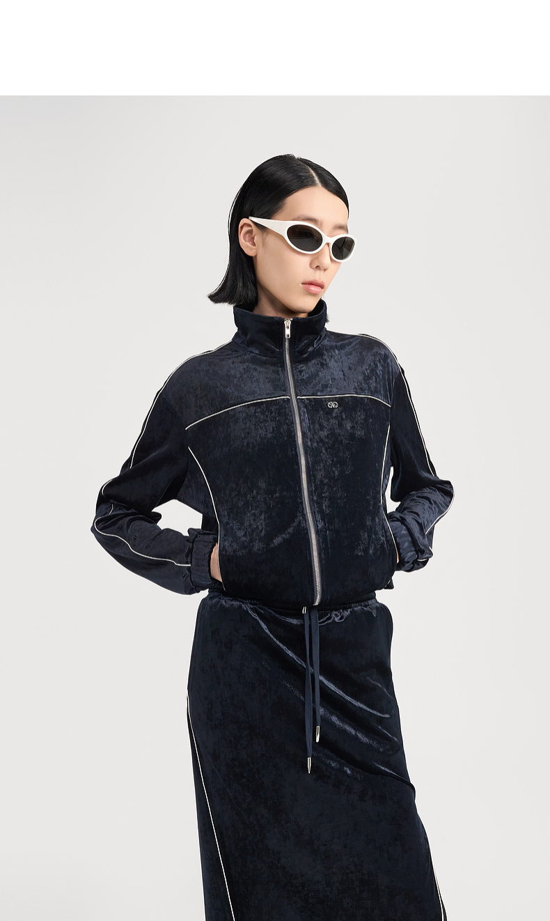 [捡漏价]lost in echo2024秋季新款休闲丝绒立领运动外套开衩半身裙套装女