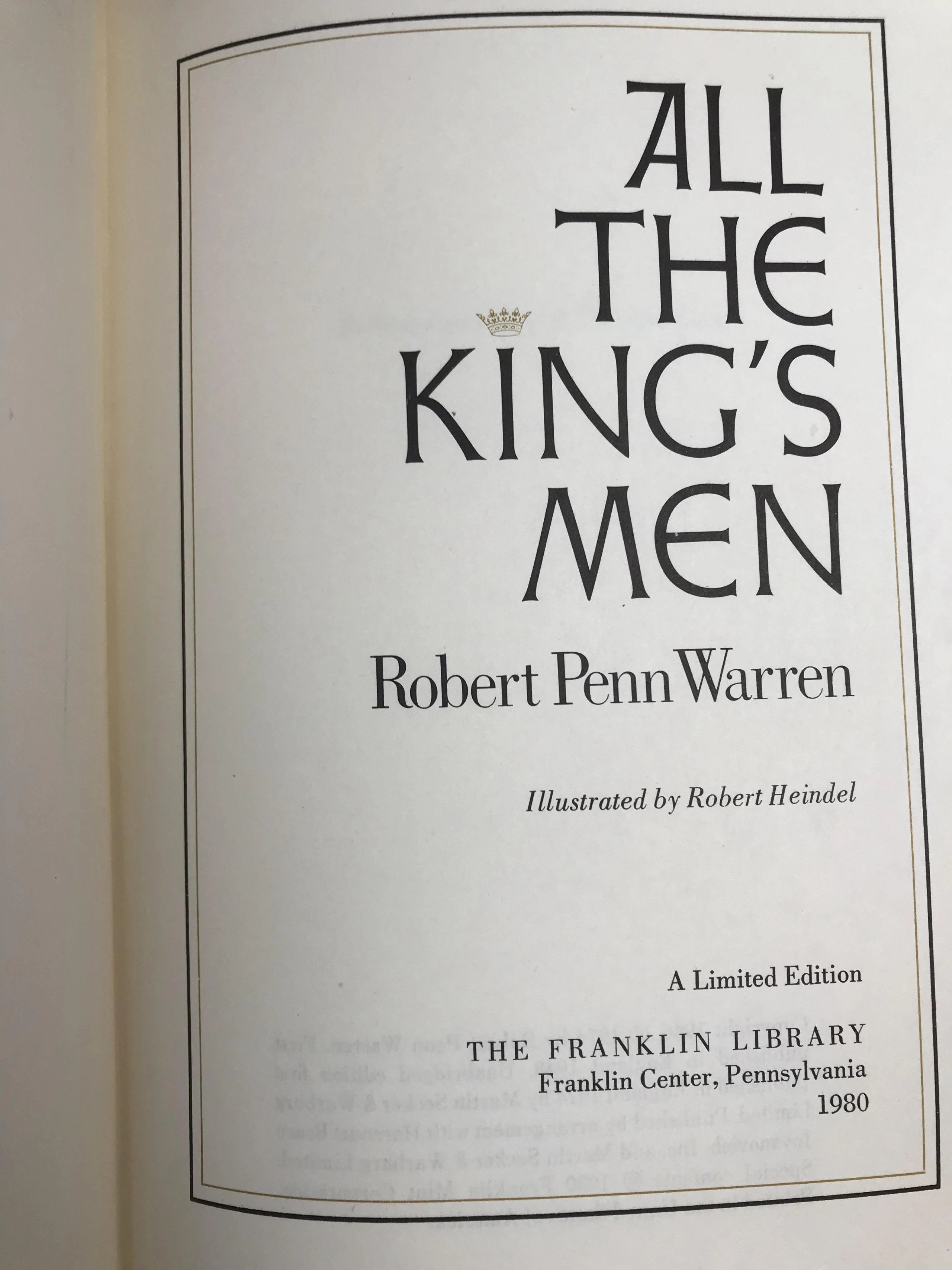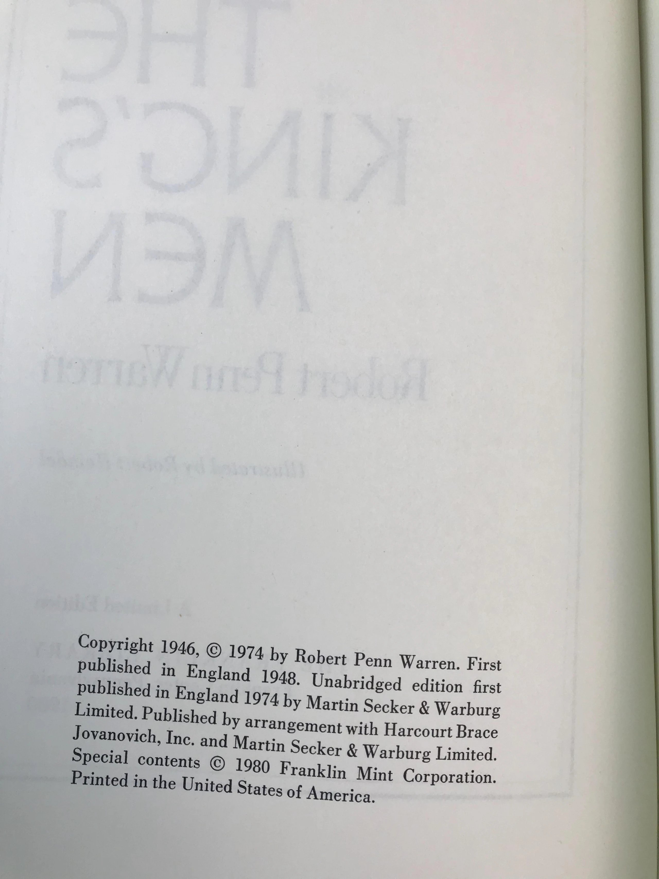 限量版!罗伯特・佩恩・沃伦《国王的人马》 配插图 富兰克林图书馆豪华皮装本