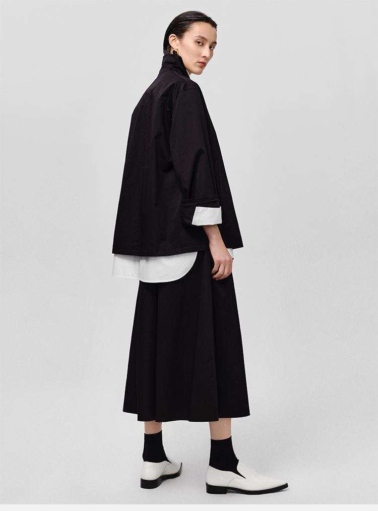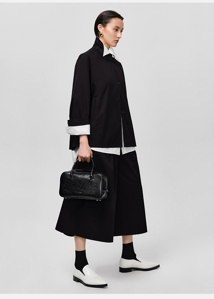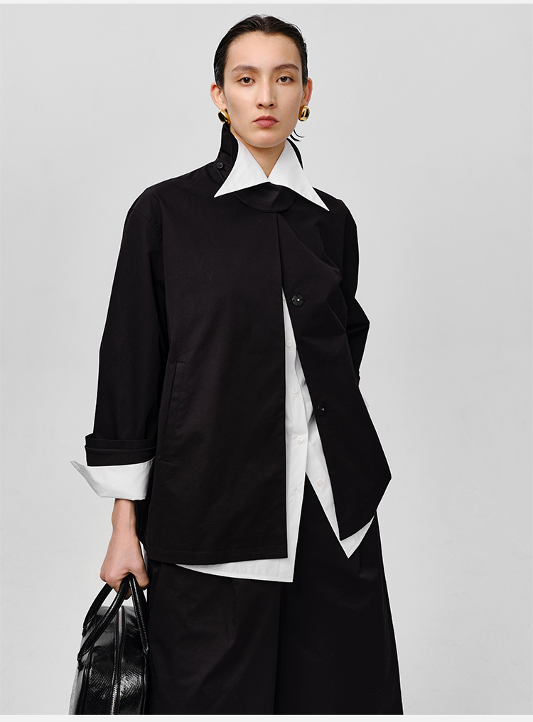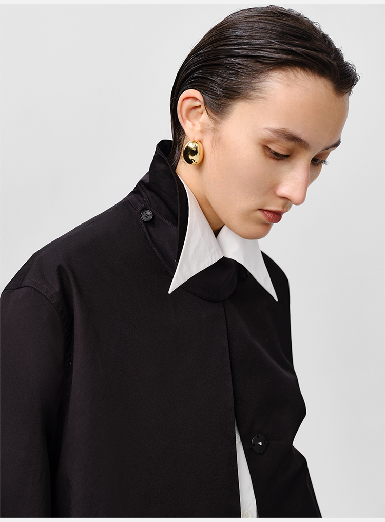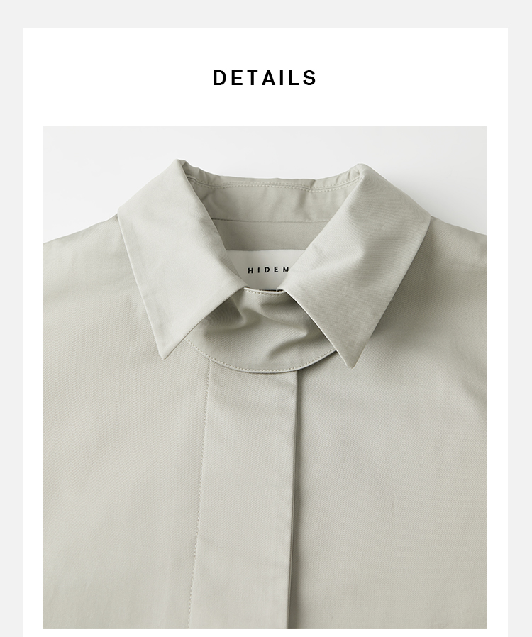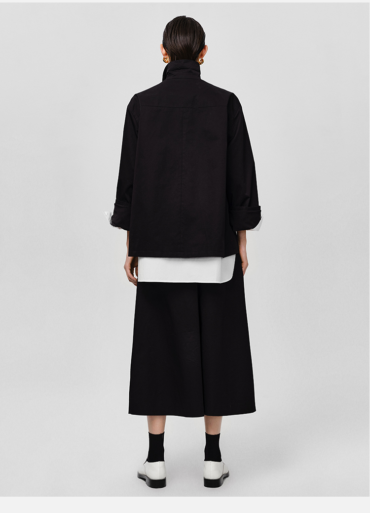 HIDEMI高密自然棉翻领短款风衣套装 外套/阔腿裤 黑色 海鸥灰绿