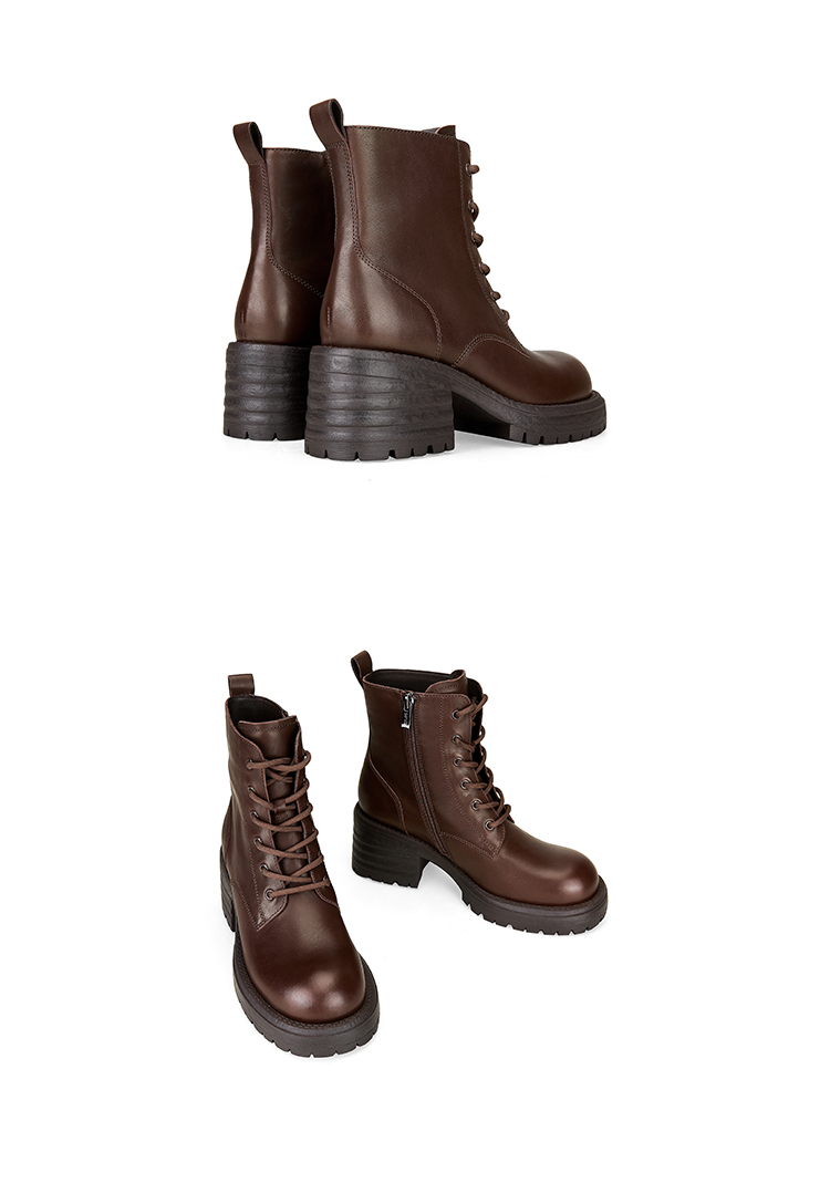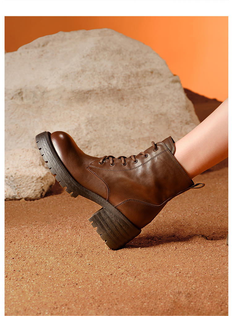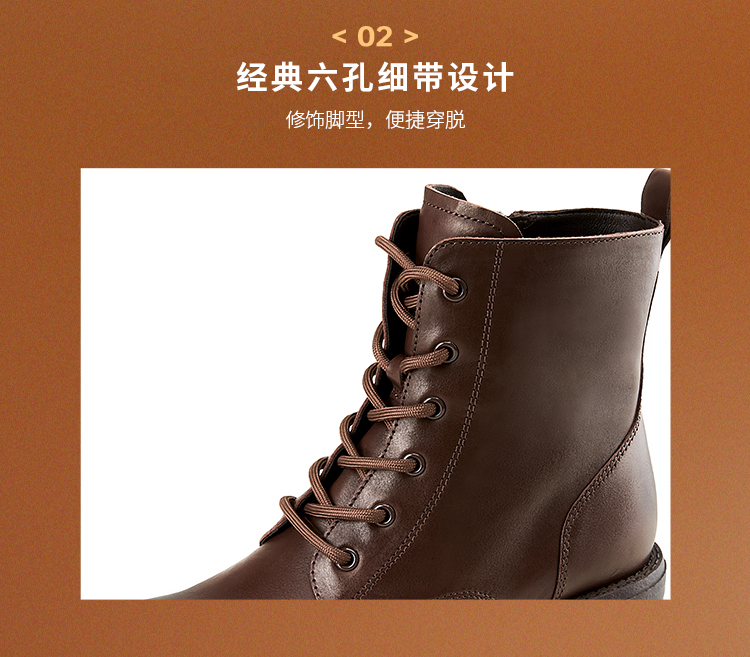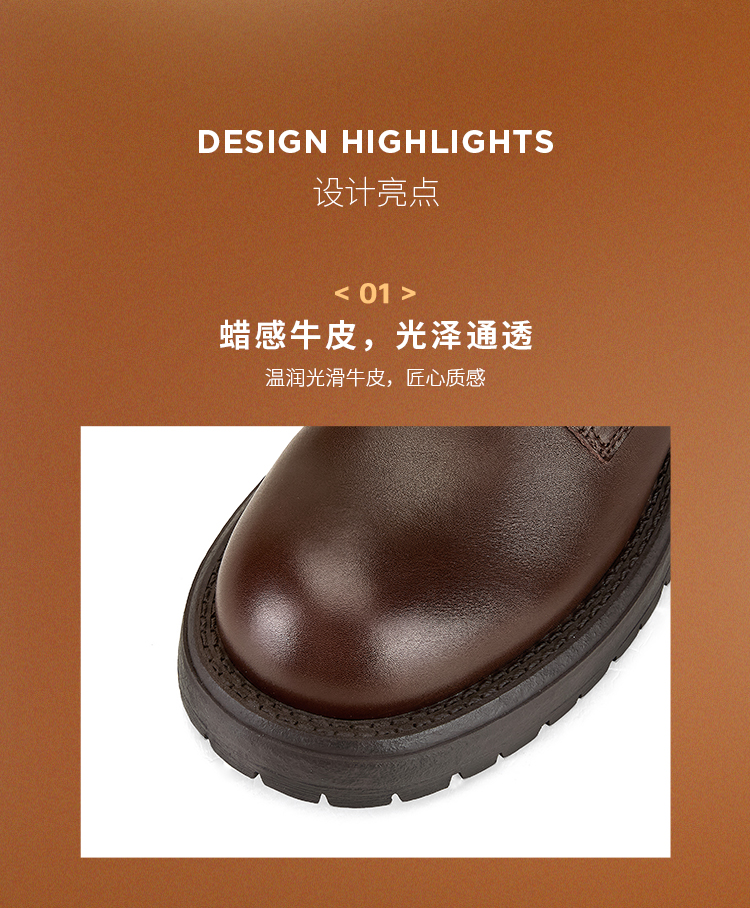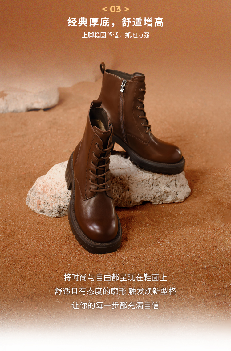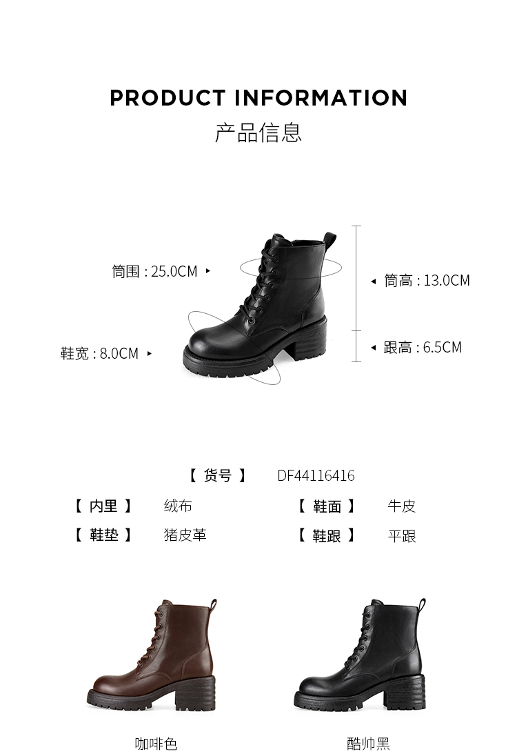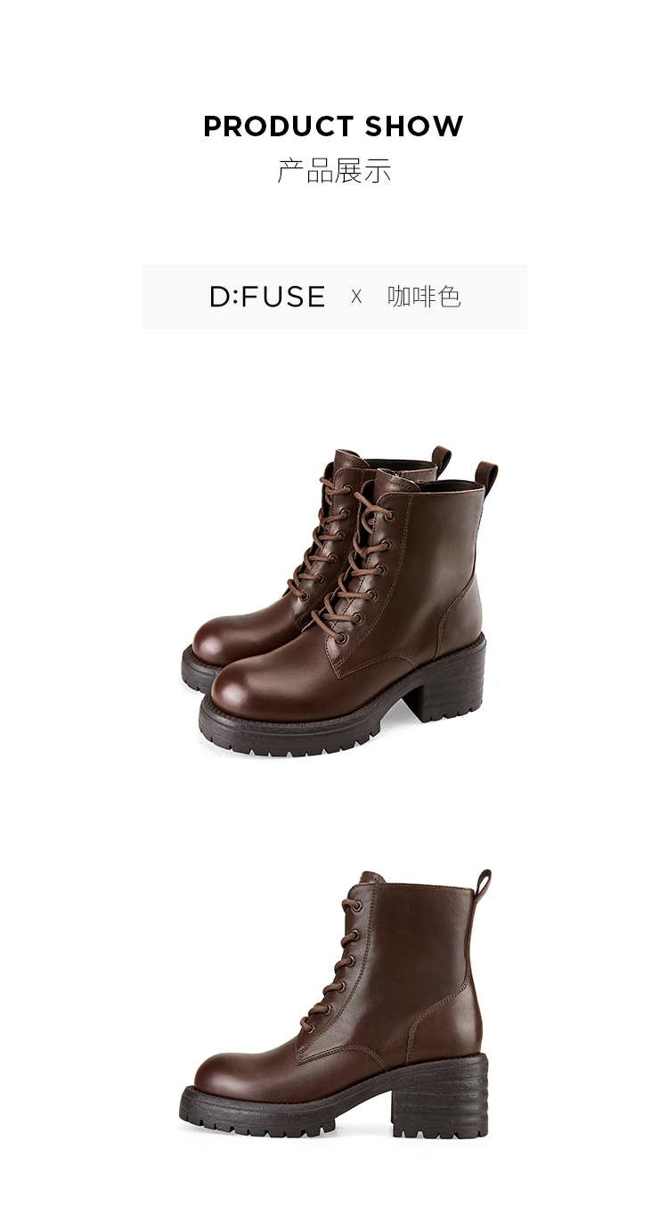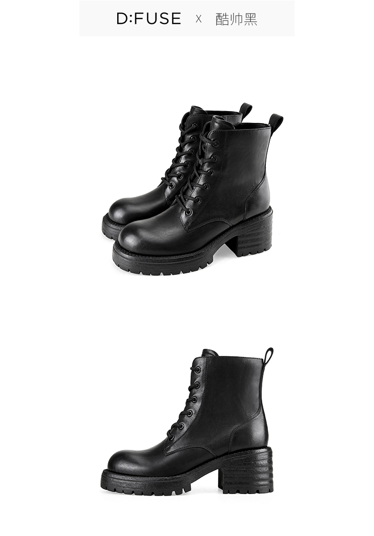 D:FUSE迪芙斯冬季新款轻量短靴复古蜡感牛皮时装靴厚底粗跟马丁靴DF44116416