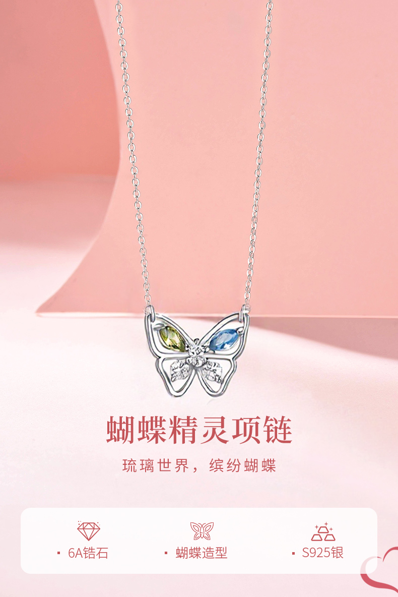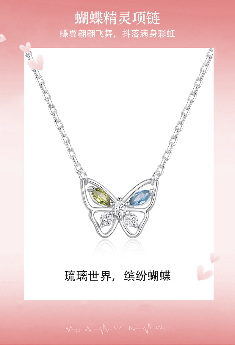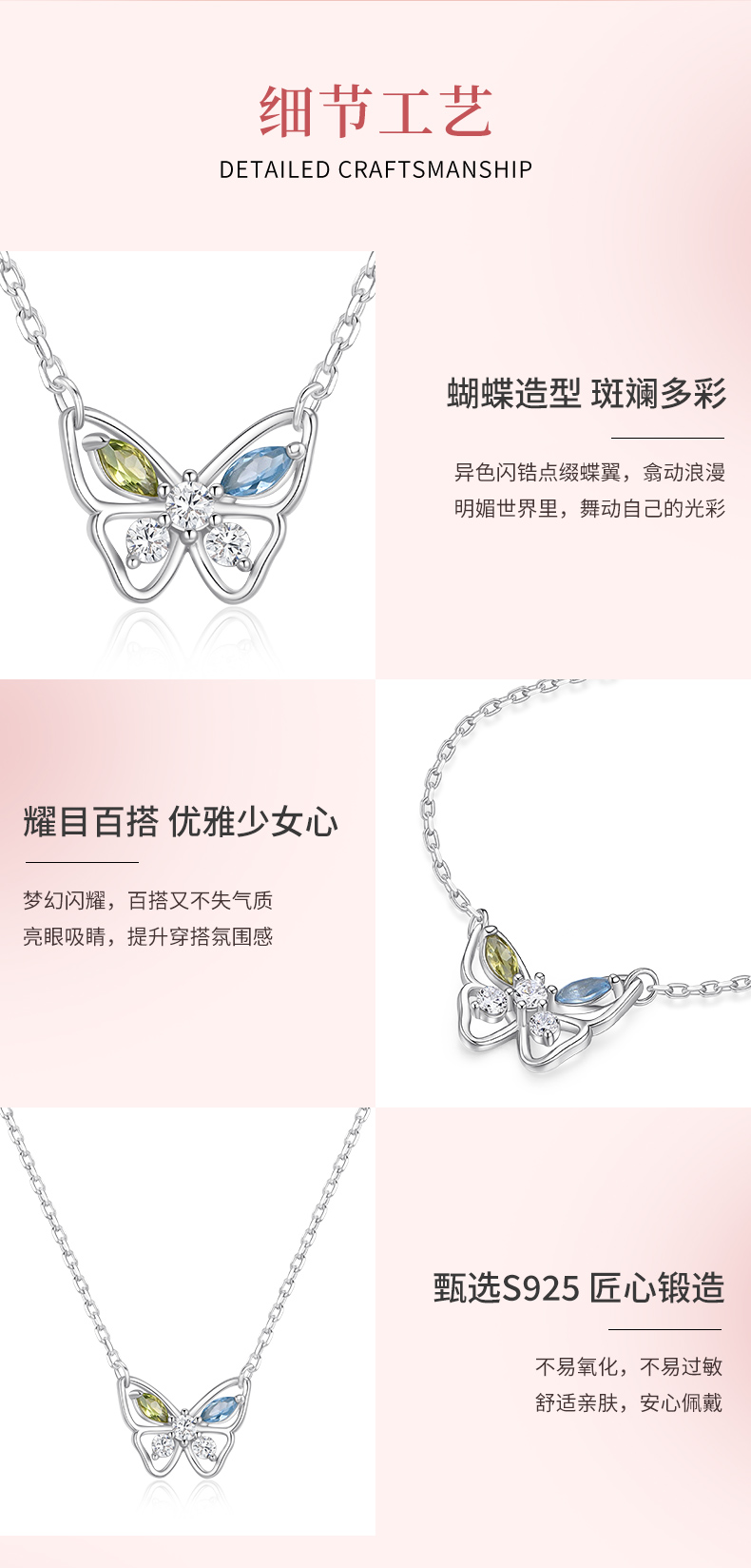 卡蒂罗KADER 蝴蝶精灵项链 925银镶嵌彩锆轻奢小众高级感镂空蝴蝶设计百搭锁骨链 纪念日告白可调节闺蜜女友