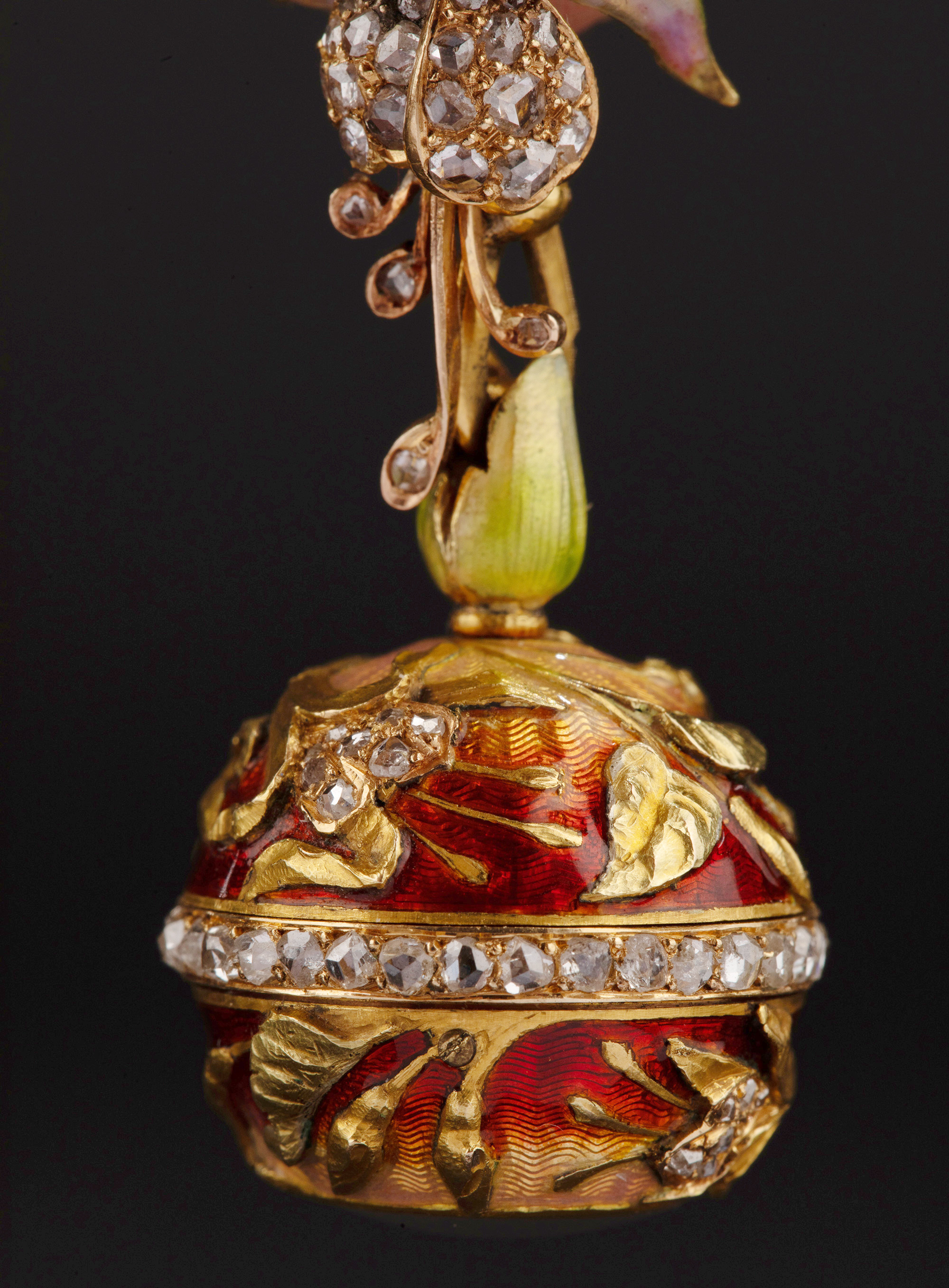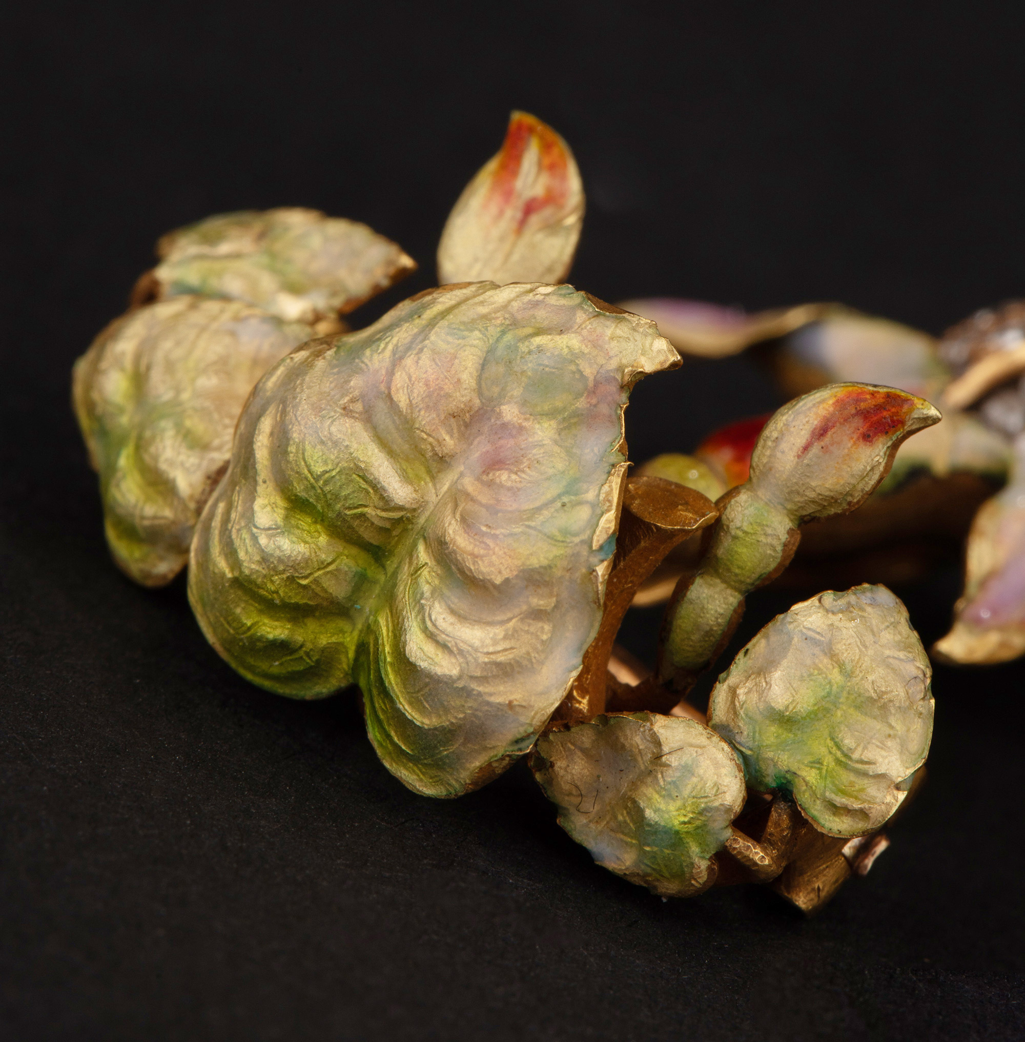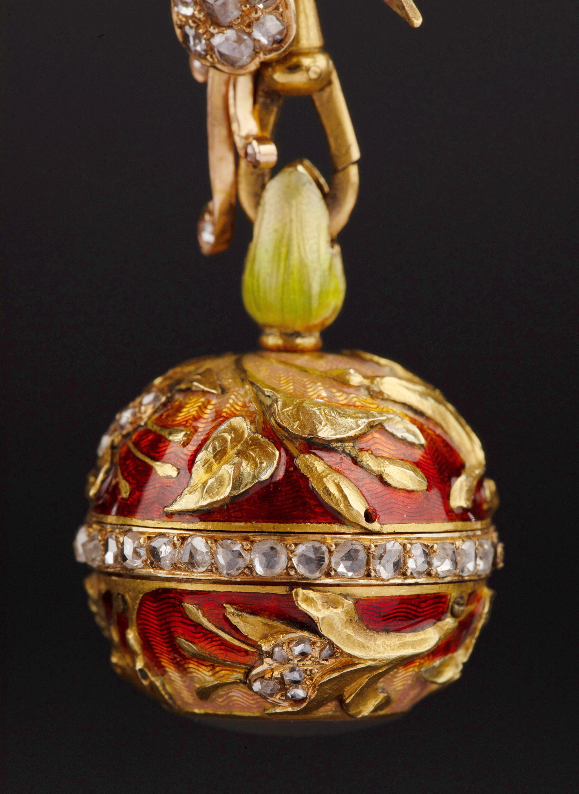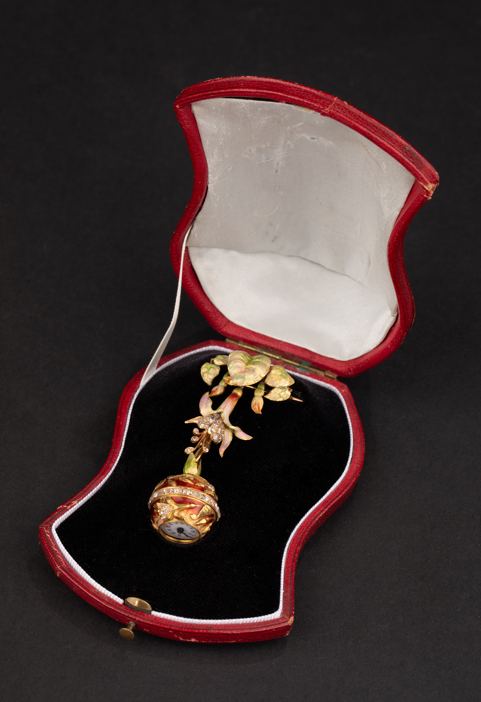 19世纪晚期瑞士出品黄金镶嵌钻石苹果主题珐琅表盘怀表及胸针
