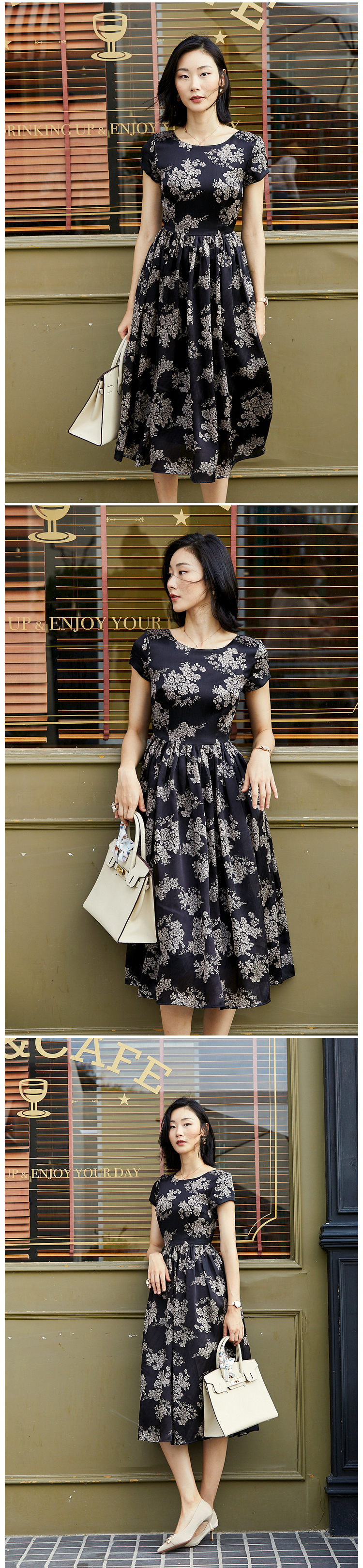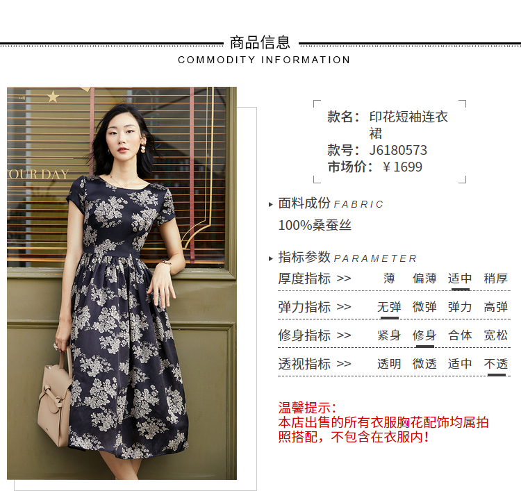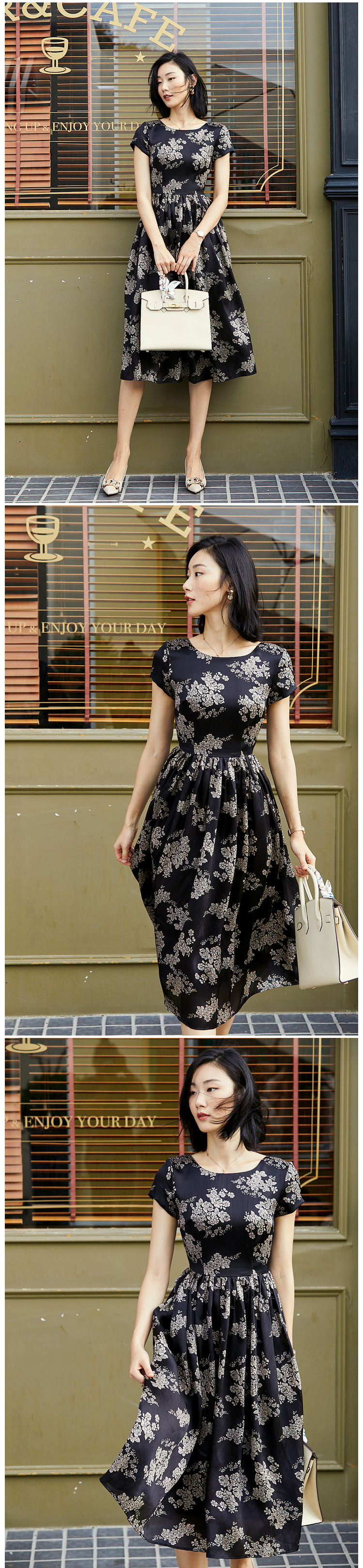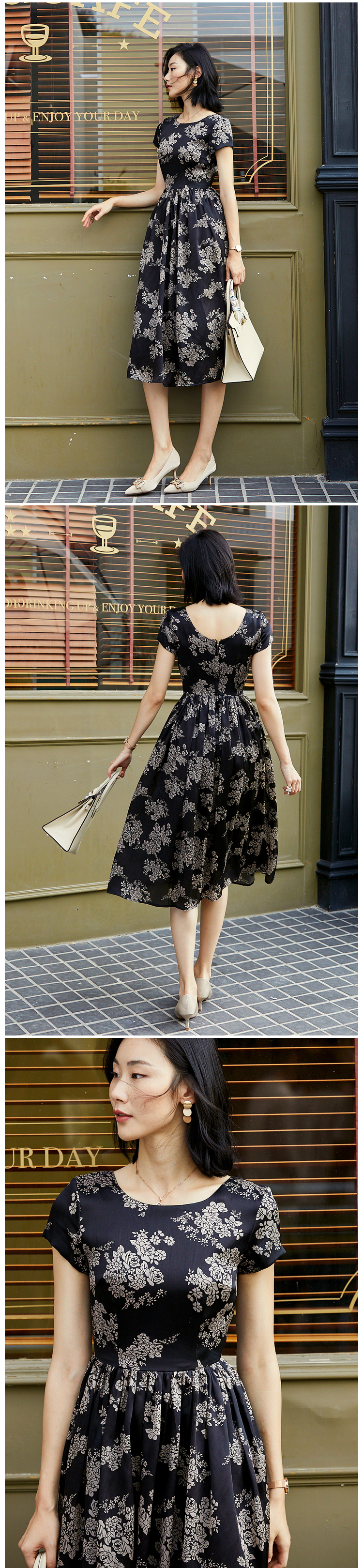 孤品-“西西里的美丽传说”6180573C颈袖添香季新款时尚气质显瘦印花长裙中长款女士真丝连衣裙J6180573C不退可换