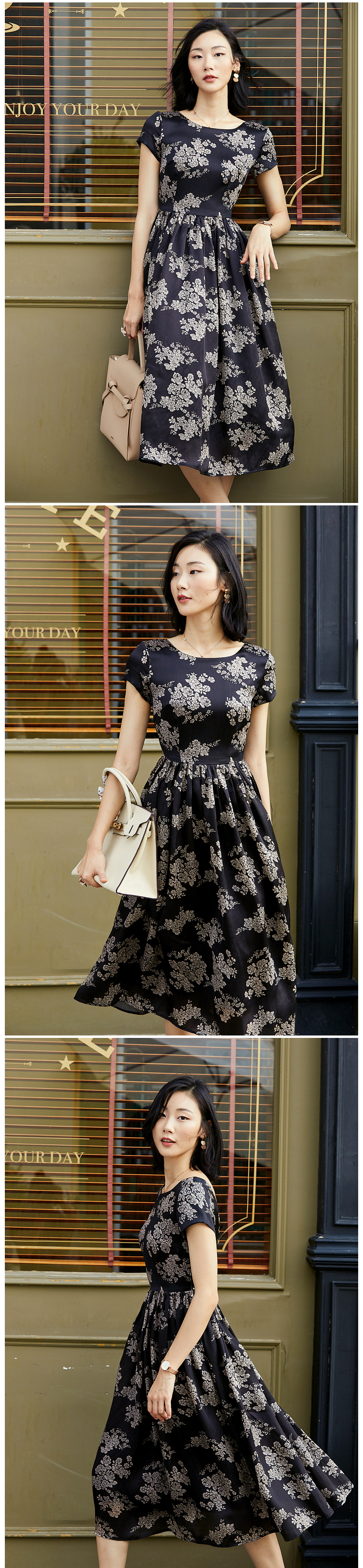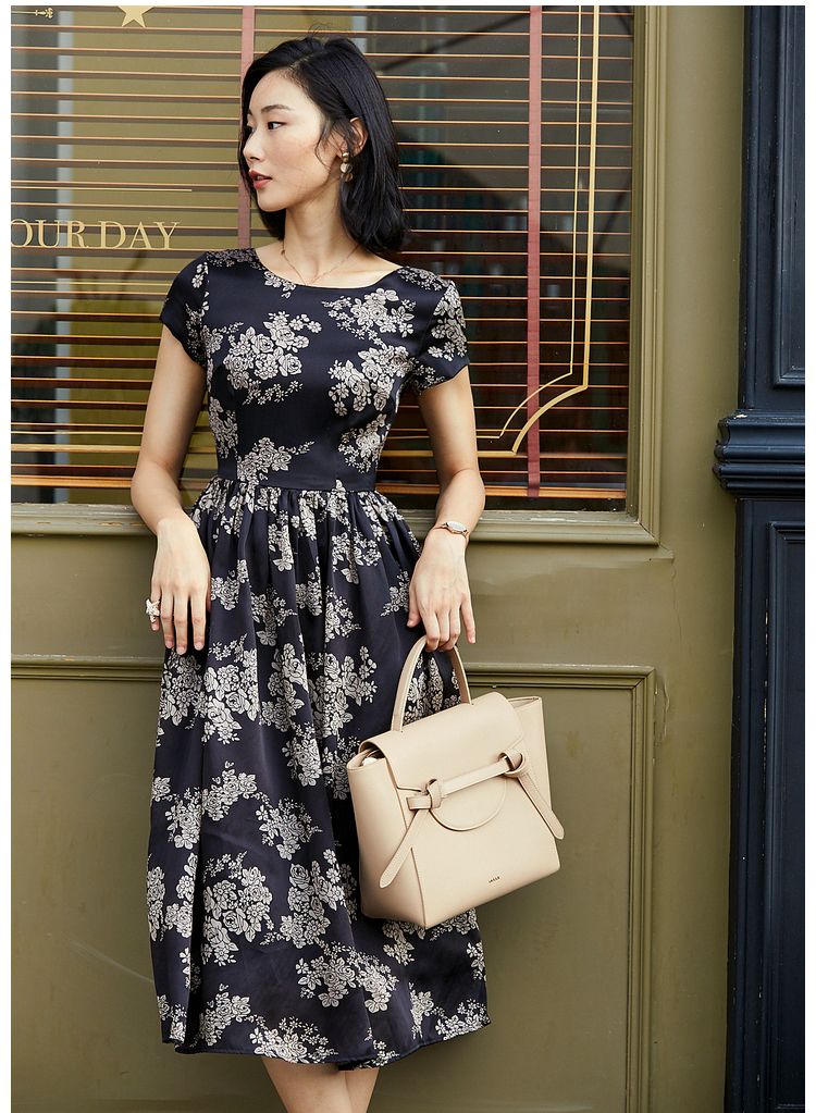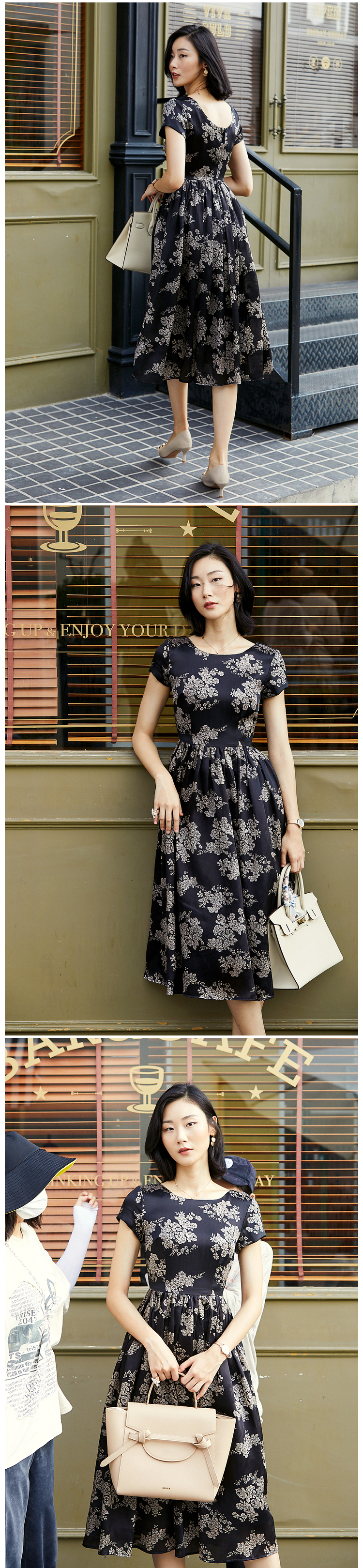 孤品-“西西里的美丽传说”6180573C颈袖添香季新款时尚气质显瘦印花长裙中长款女士真丝连衣裙J6180573C不退可换