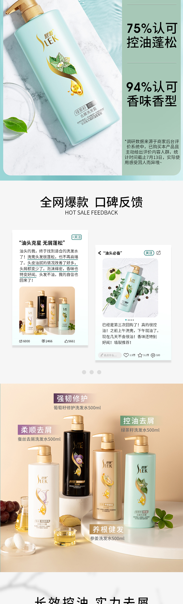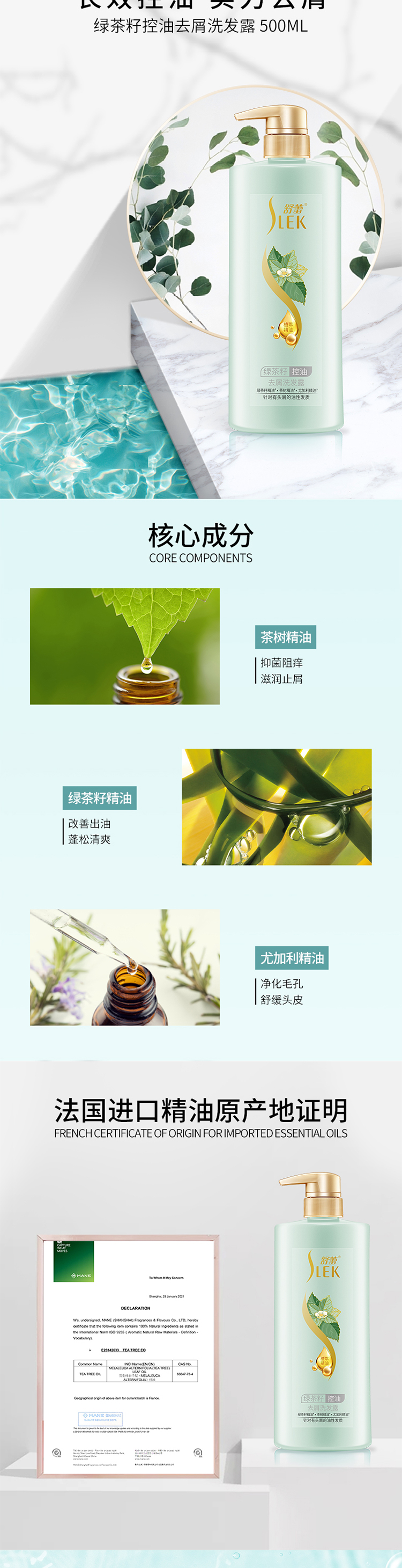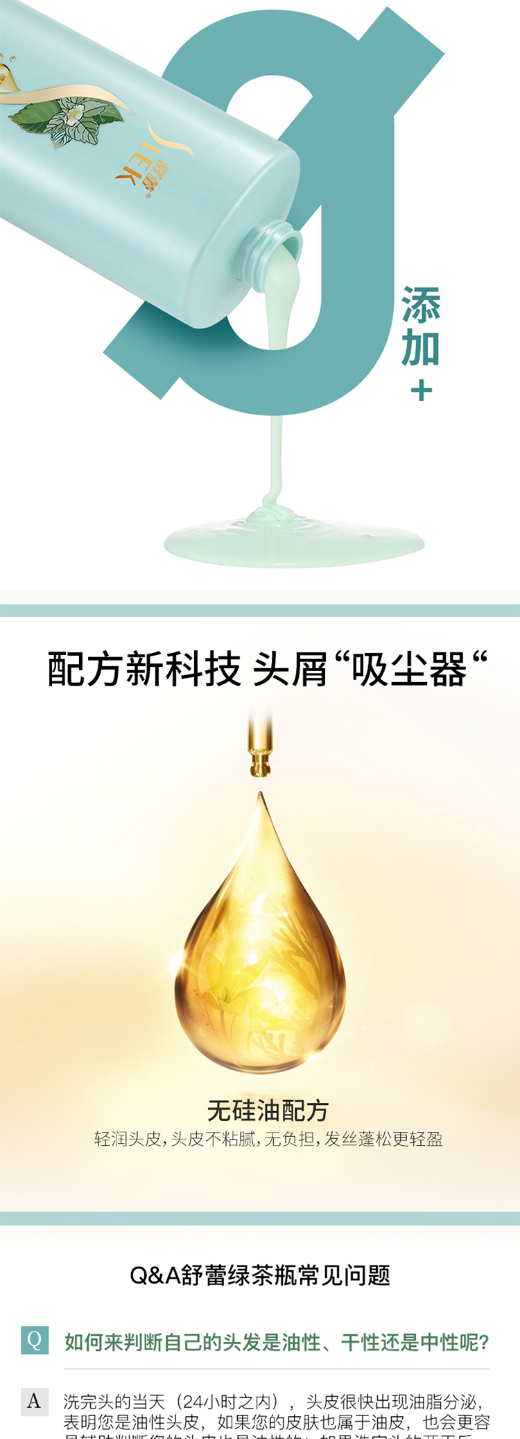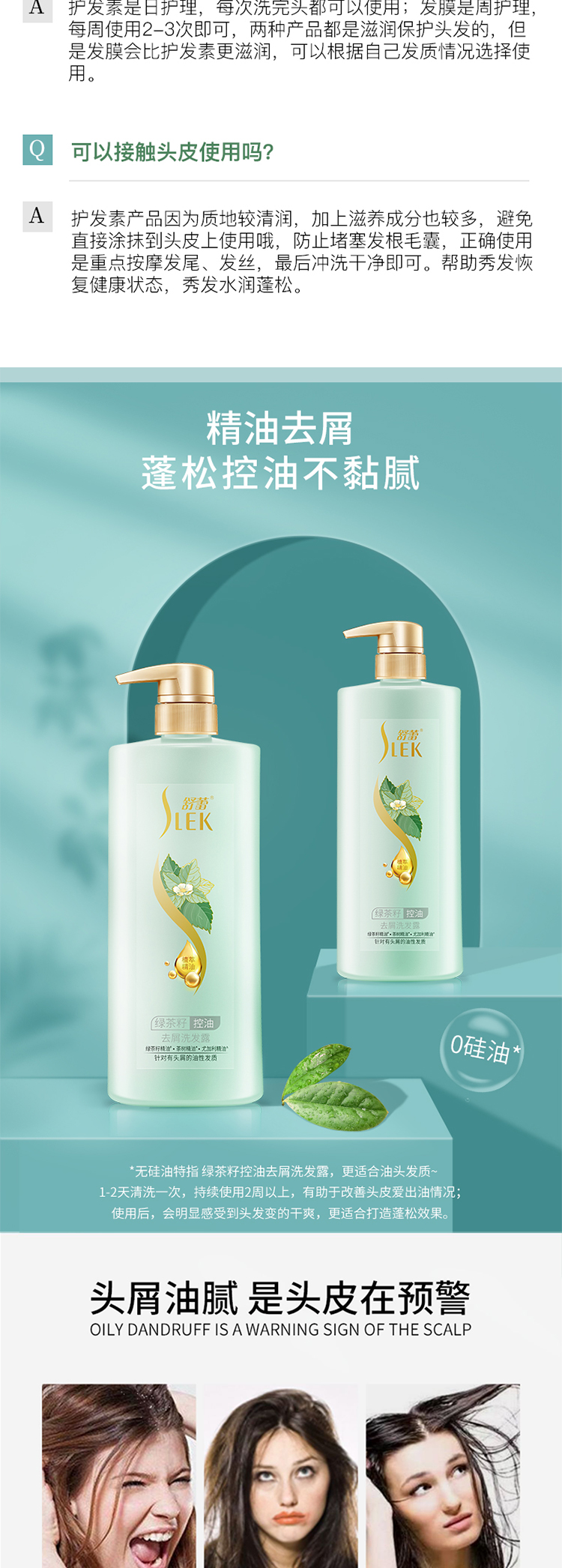舒蕾绿茶籽控油去屑洗发水500ml+蚕丝保湿顺滑护发素500ml