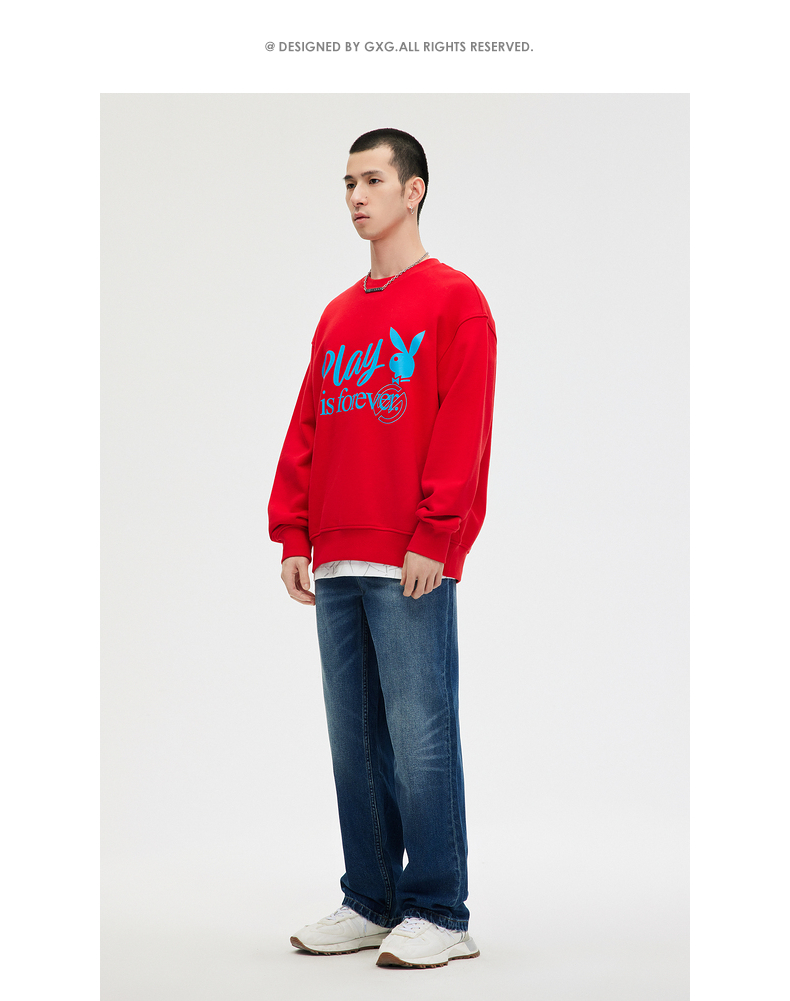 GXG男装红色撞色印花卫衣 圆领舒适休闲春季热卖时尚卫衣 GE1310196L