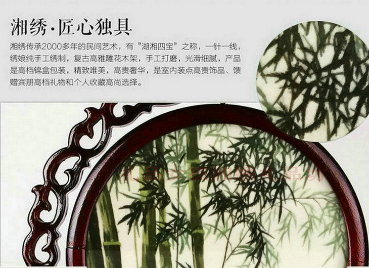凯崎湘绣 纯手工双面绣 竹子精品摆件刺绣家居 客厅 办公室 出国送老外
