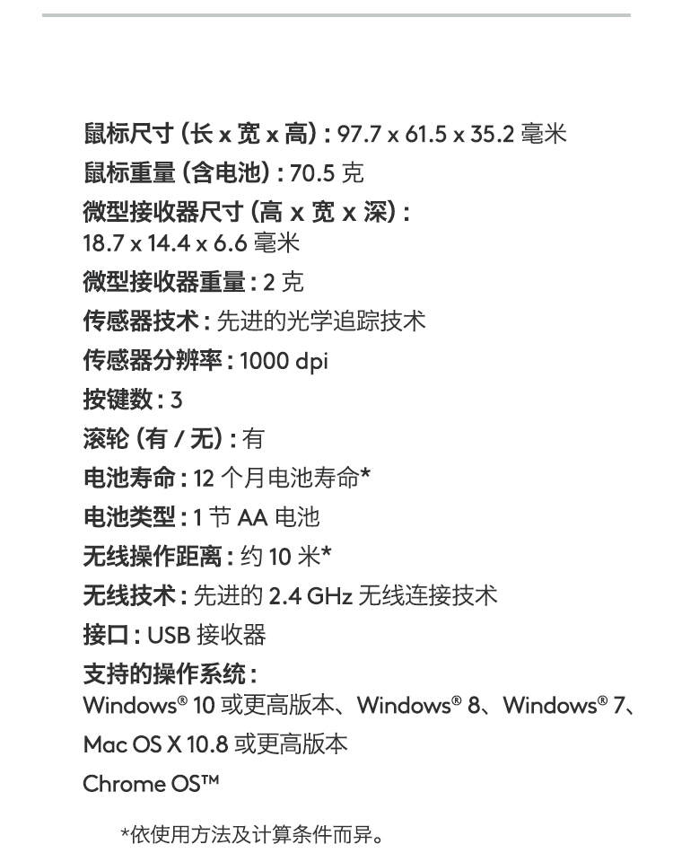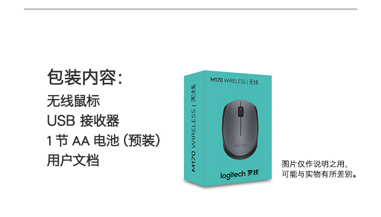 罗技(Logitech)M170(M171) 鼠标 无线鼠标 办公鼠标 对称鼠标 灰色 带无线2.4G接收器
