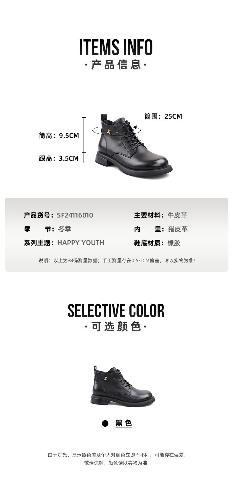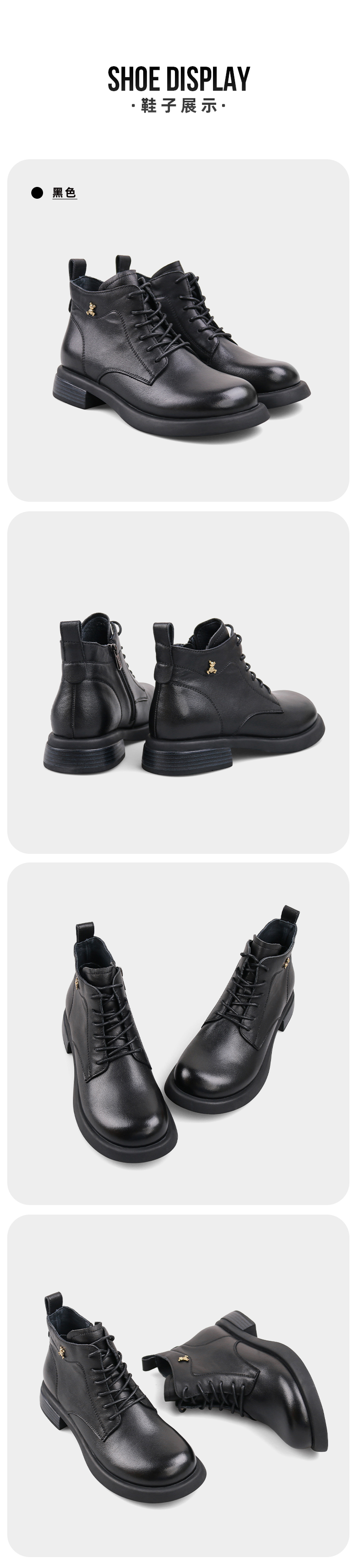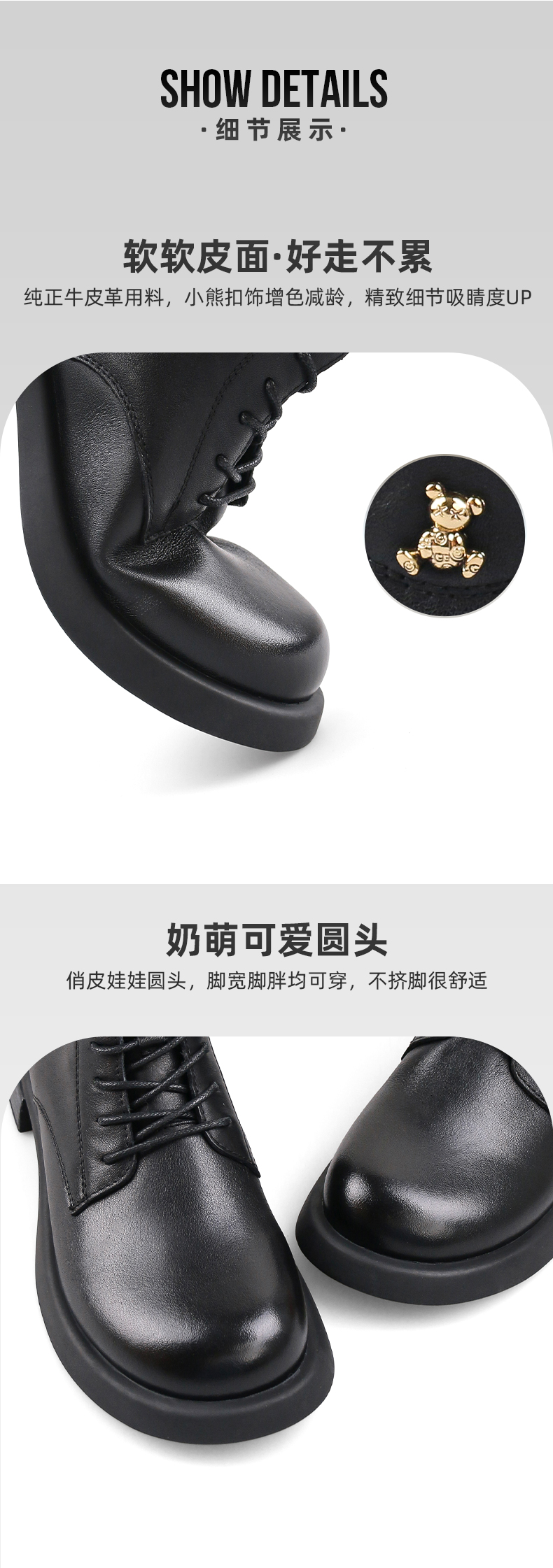 【春节不打烊】Safiya/索菲娅短靴女2022冬季新款学院风奶萌小熊扣饰娃娃圆头瘦瘦靴 SF24116010
