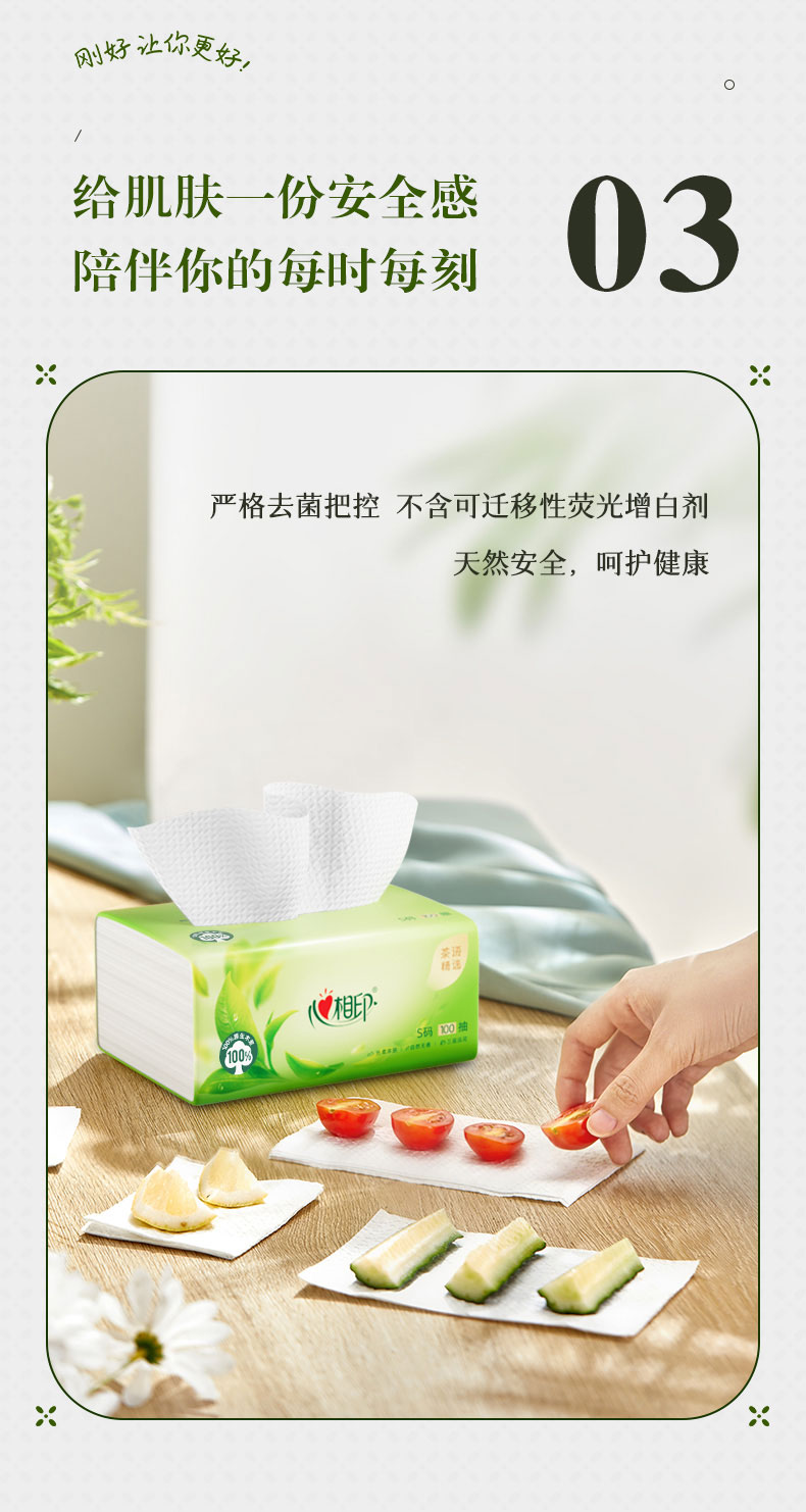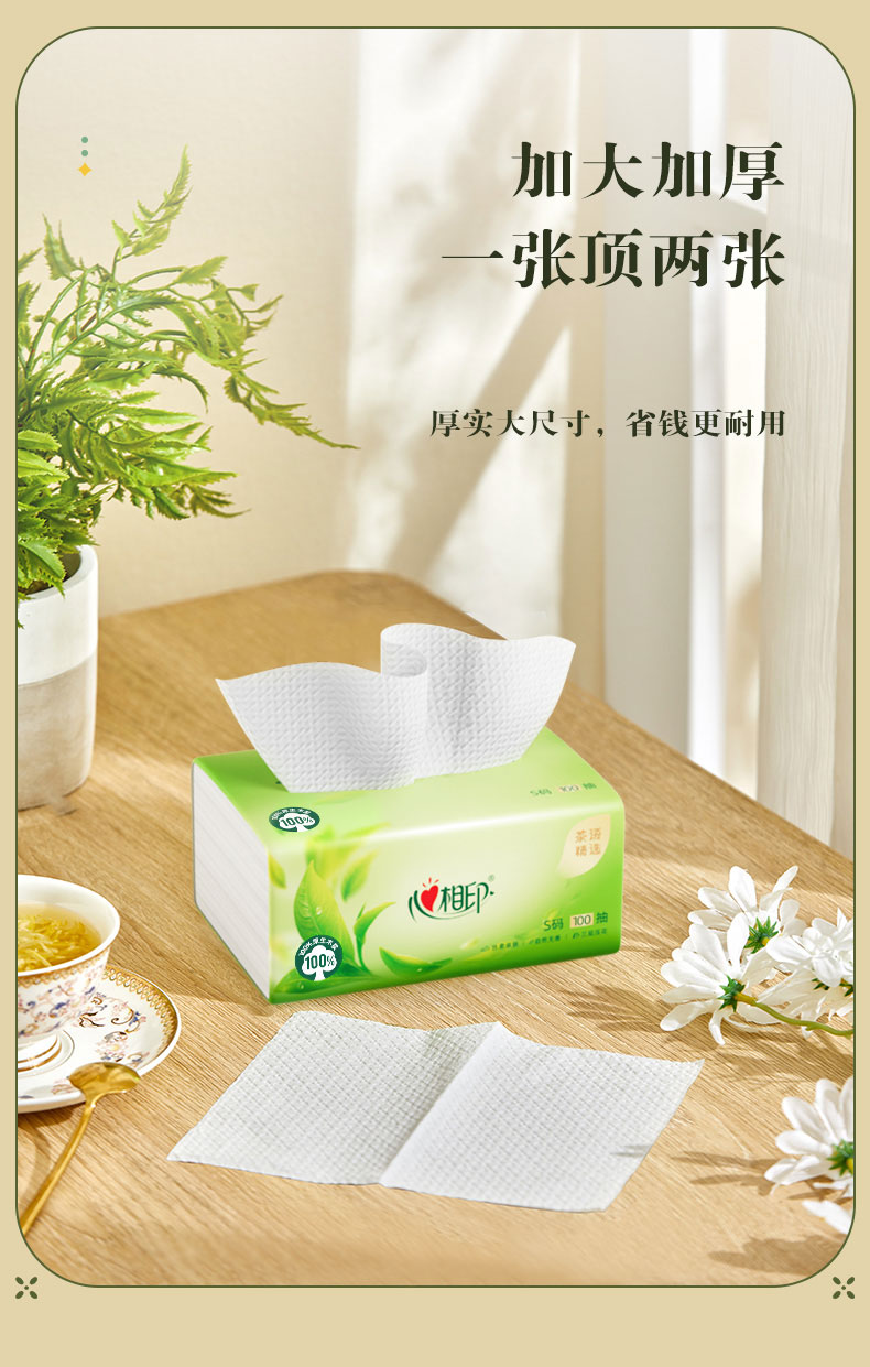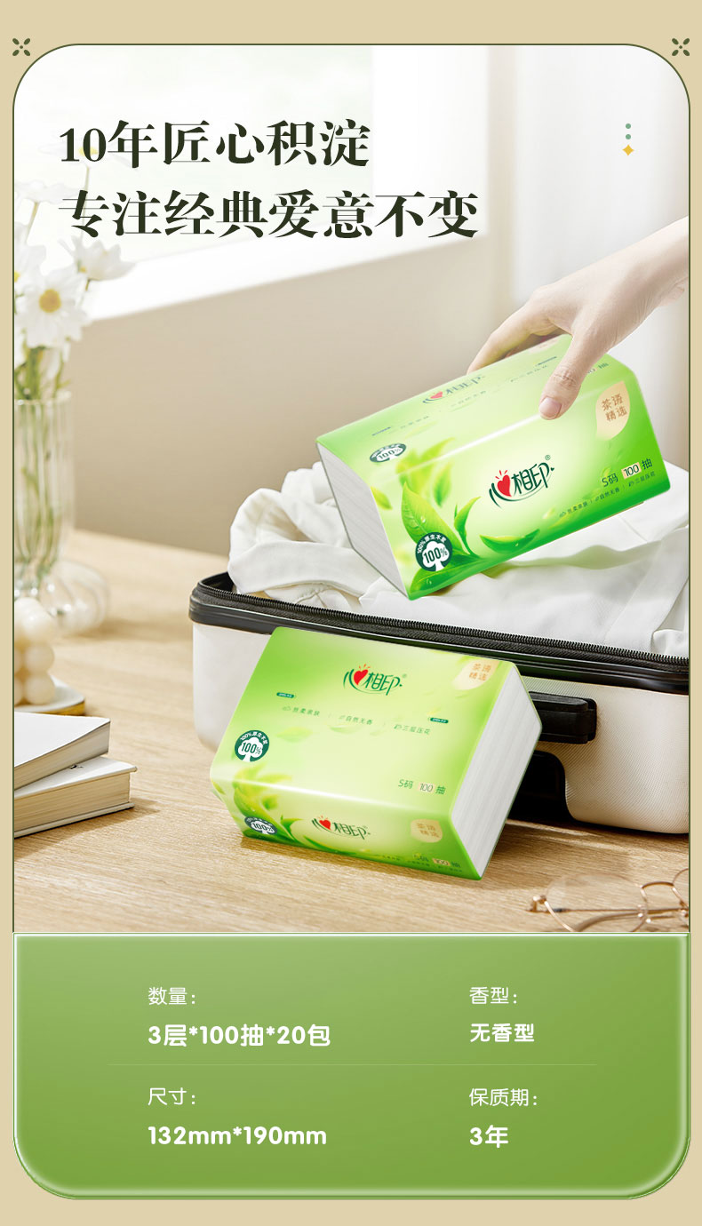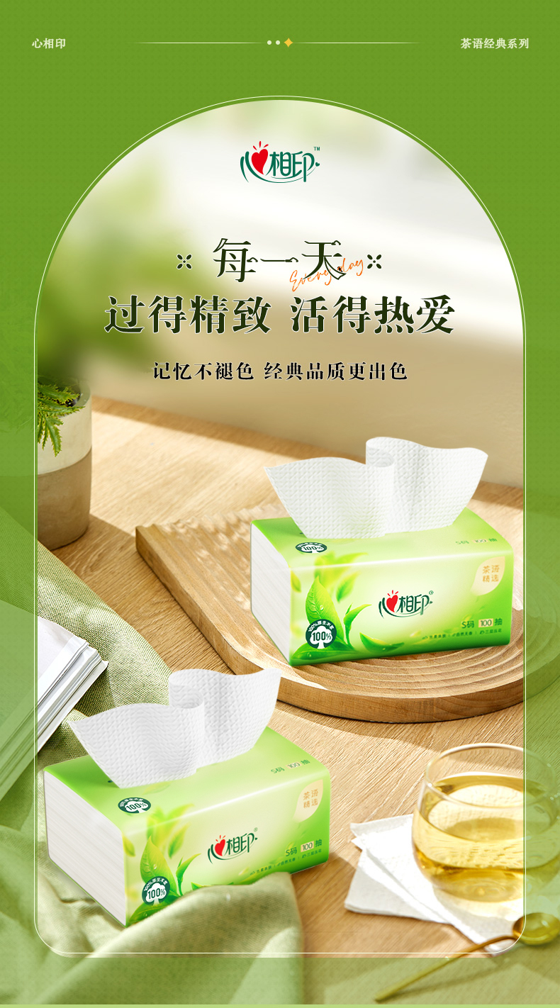 DT8100(电商箱装)心相印茶语精选100抽20包装三层塑装面巾纸