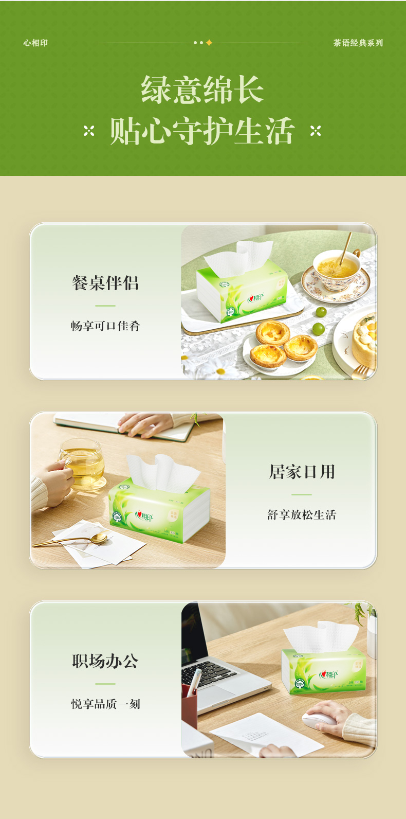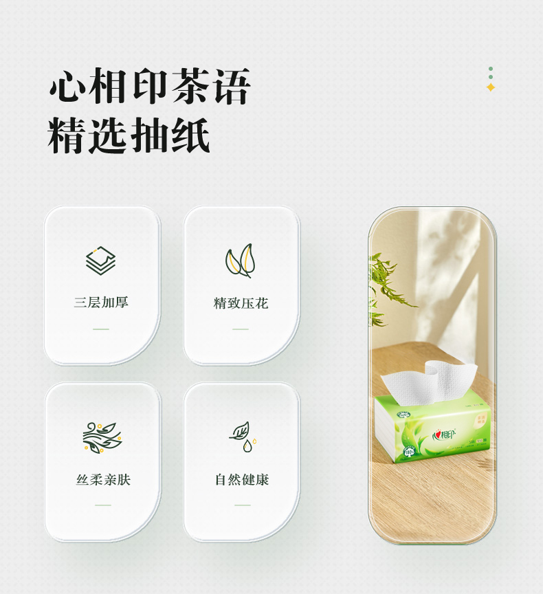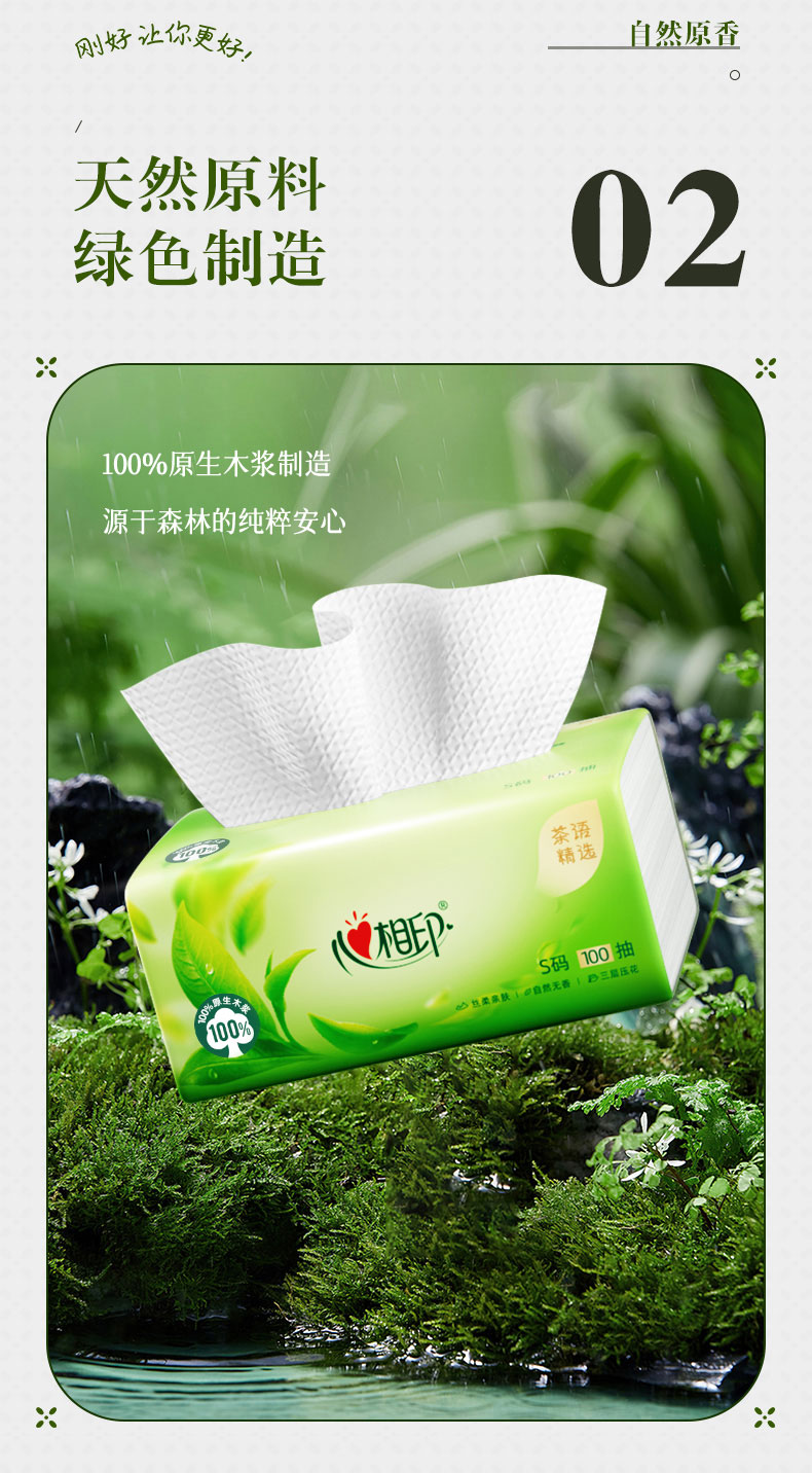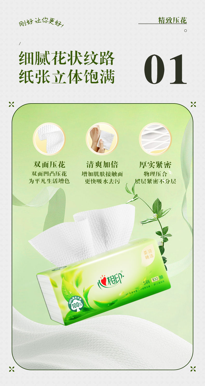 DT8100(电商箱装)心相印茶语精选100抽20包装三层塑装面巾纸