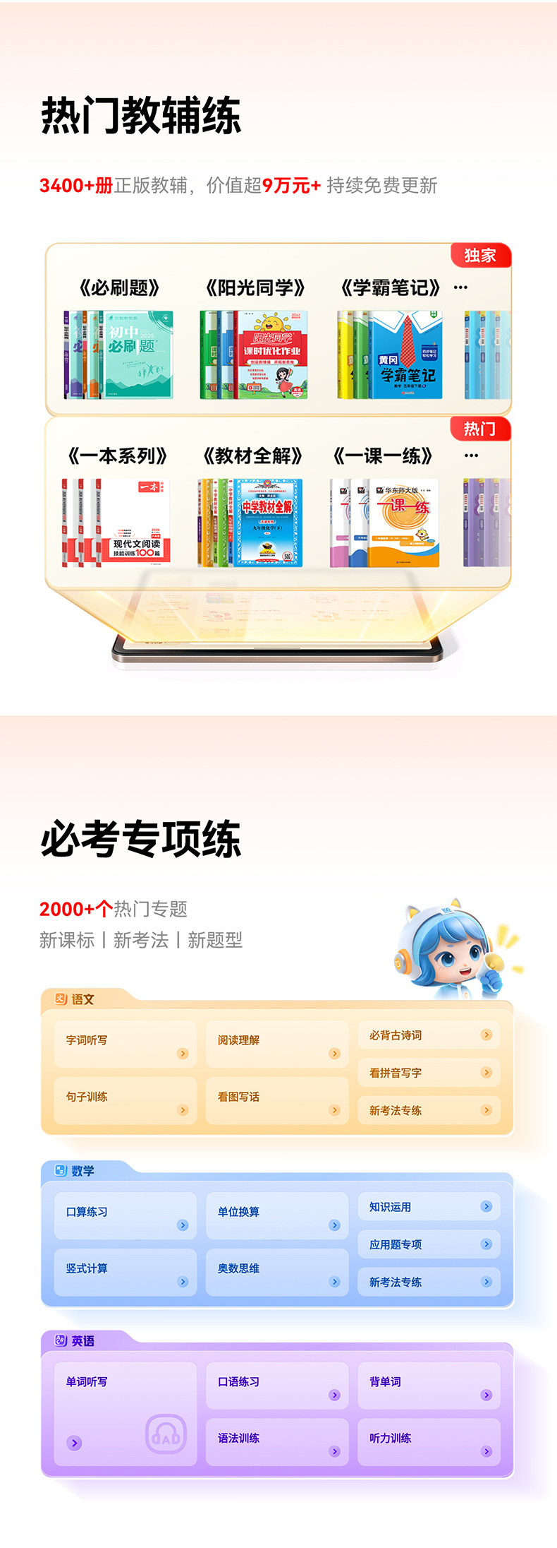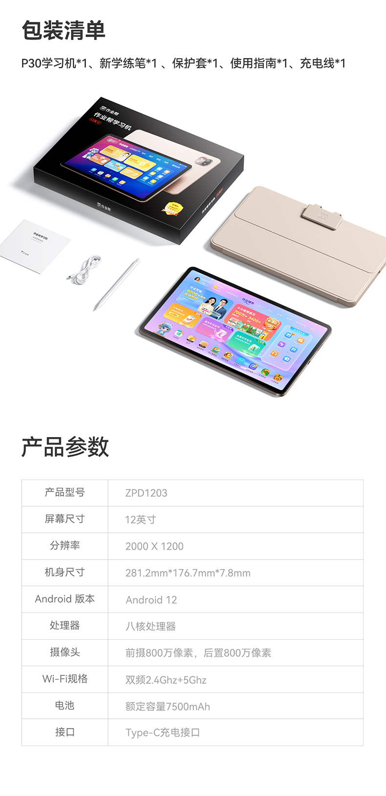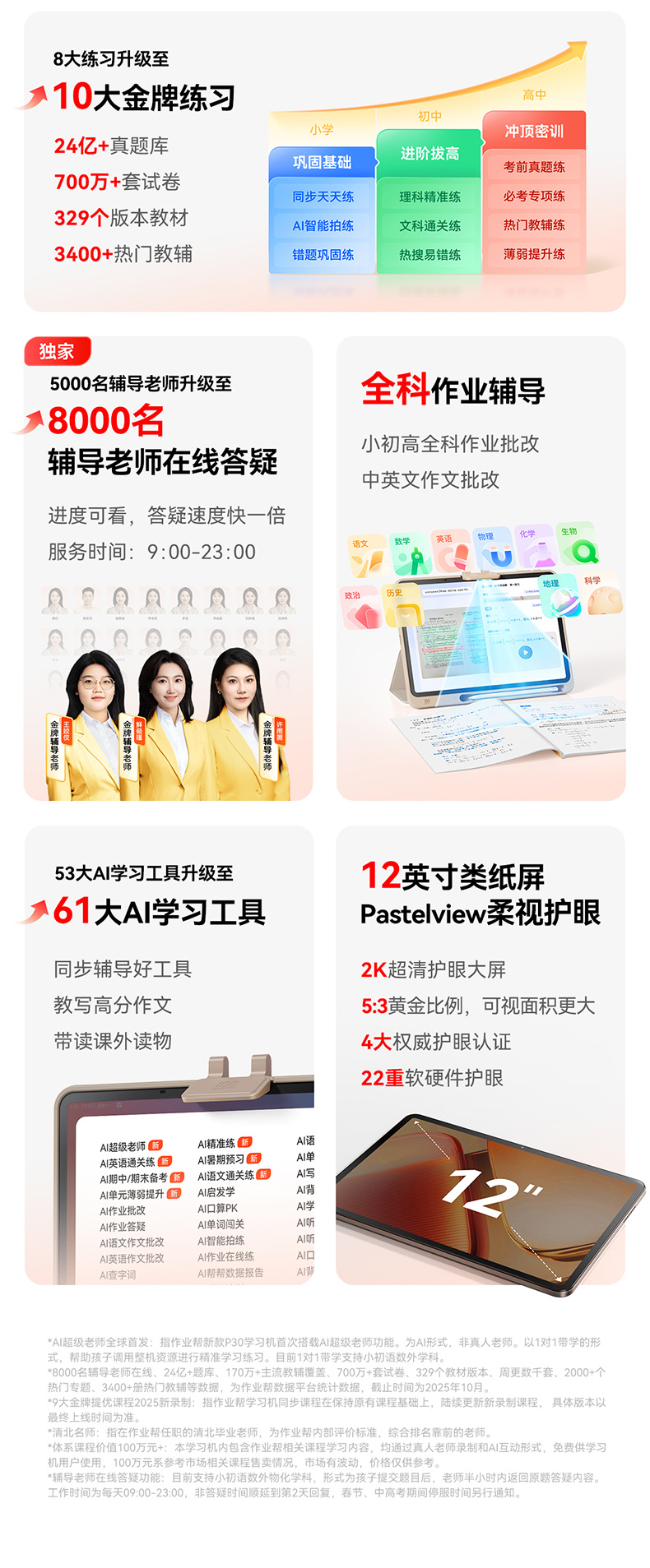 作业帮学习机P30 学练机教材同步练真题练专项练 幼小初高全科辅导 类纸学练屏更护眼 加赠喵喵机