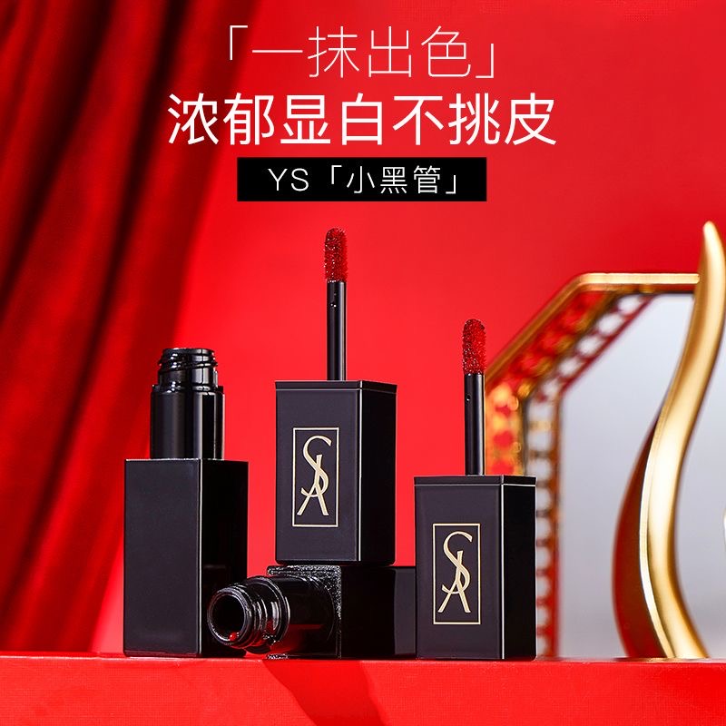 【送礼盒礼袋】YSL 圣罗兰 全新口红气垫套组( 新版皮革气垫 14g+圣罗兰全新黑管唇釉5.5ml #440)