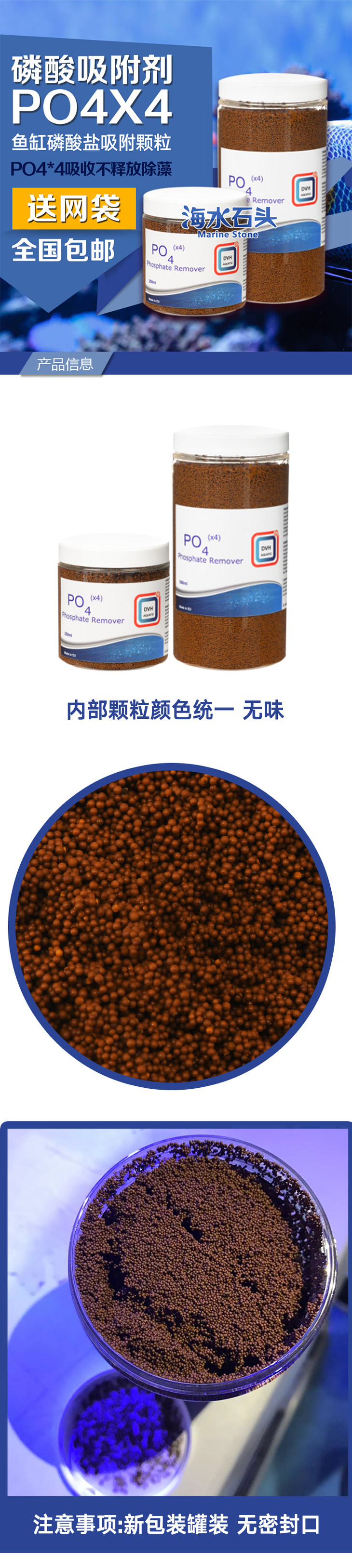 荷兰原装进口 DVH 磷酸吸附剂 PO4X4 鱼缸磷酸盐 颗粒 PO4*4吸收不释放 除红泥