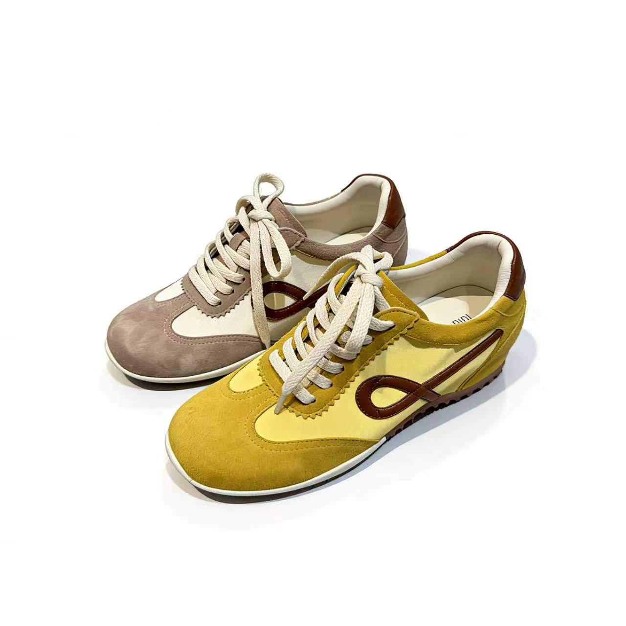 【羊皮革】西村名物2026年春季新款半羊皮里+布里/羊皮垫平底防滑舒适透气休闲鞋德训鞋U26AM17591