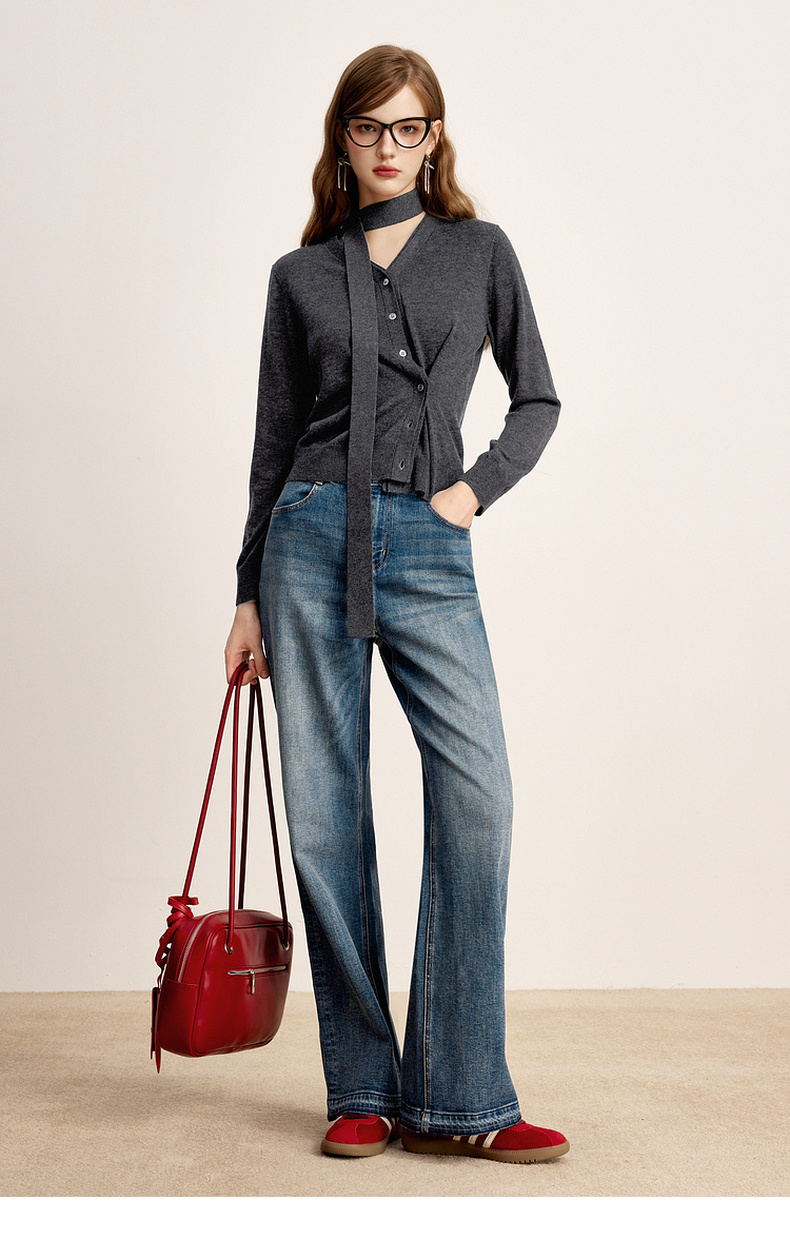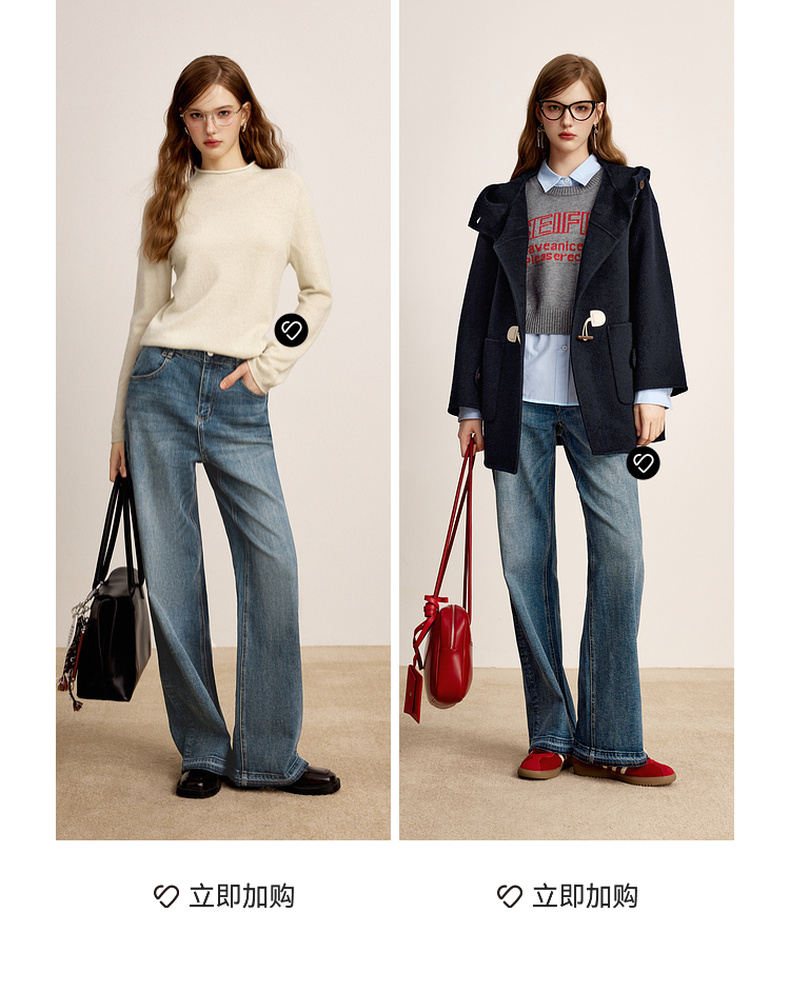 【商场同款】诗凡黎高腰显瘦直筒裤2024冬新款长裤女3FA152561