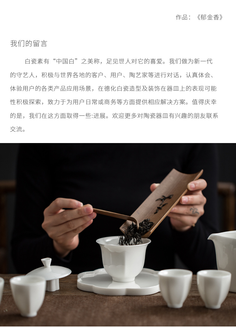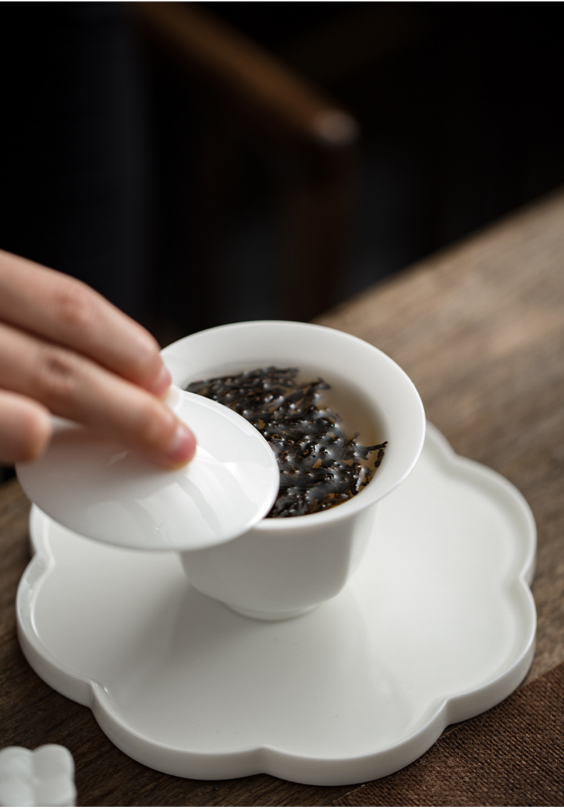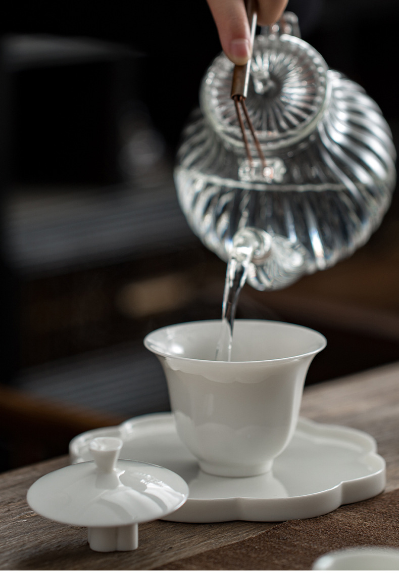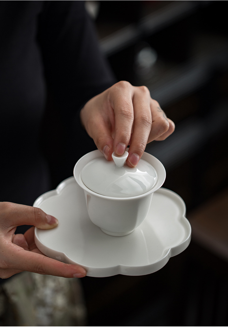 觅白郁金香 盖碗组 茶具套装之郁金香盖碗套组 德化羊脂玉白瓷手工功夫茶具家用套装