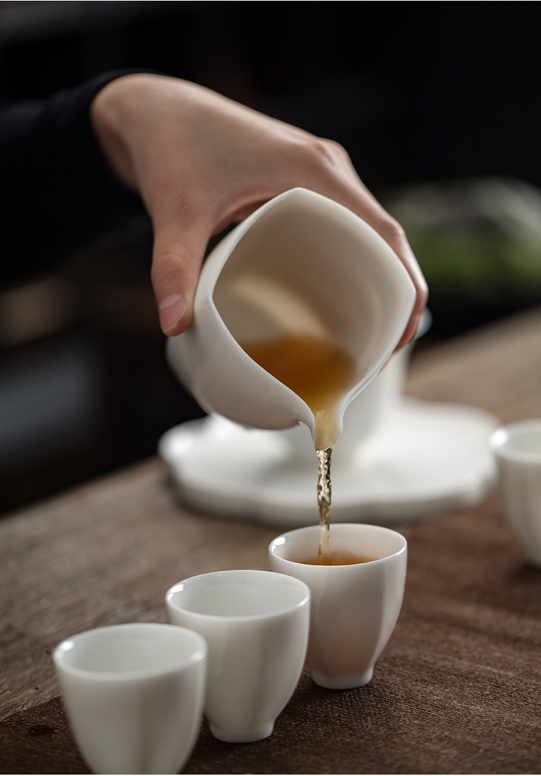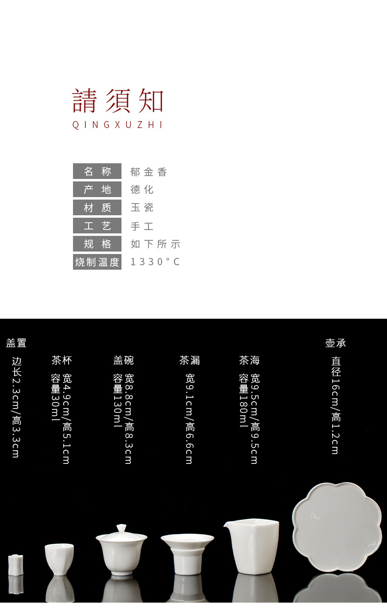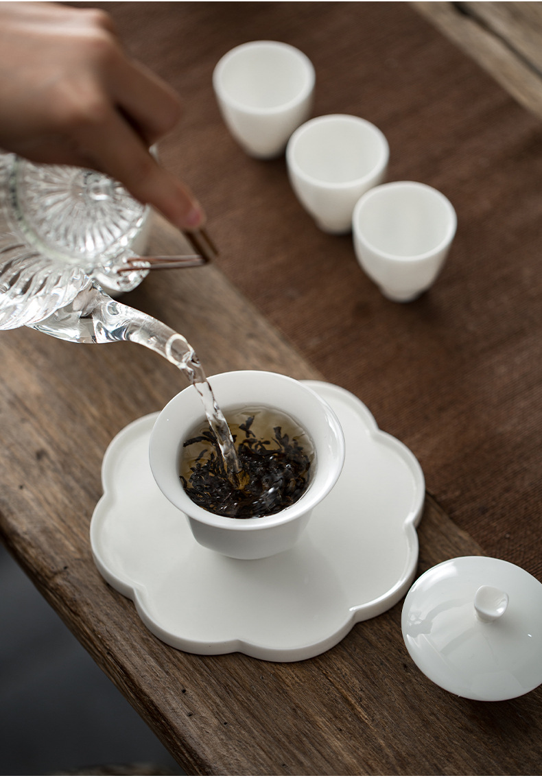觅白郁金香 盖碗组 茶具套装之郁金香盖碗套组 德化羊脂玉白瓷手工功夫茶具家用套装